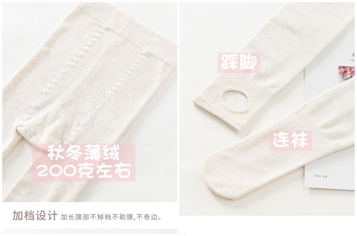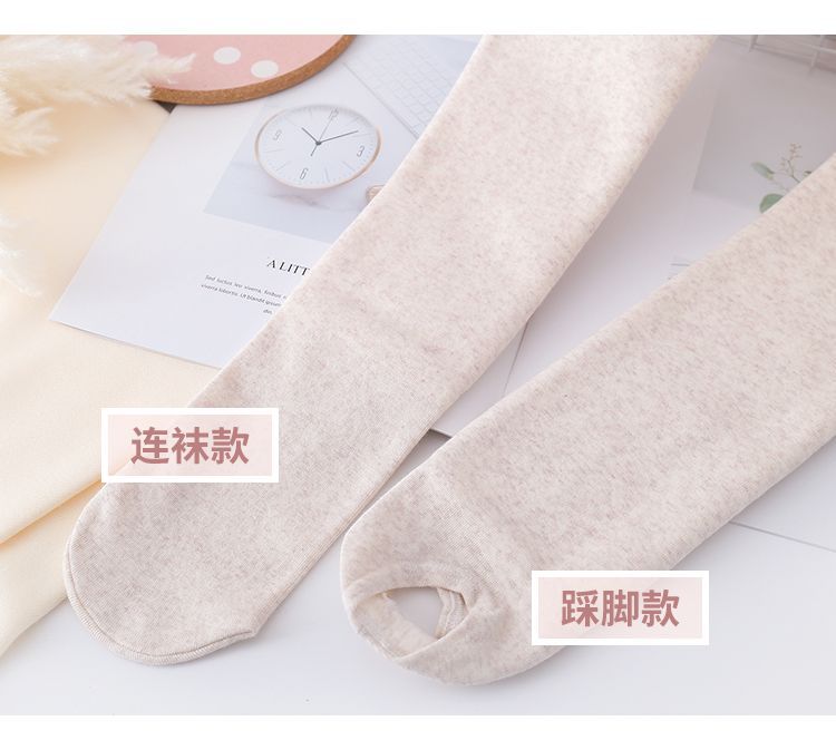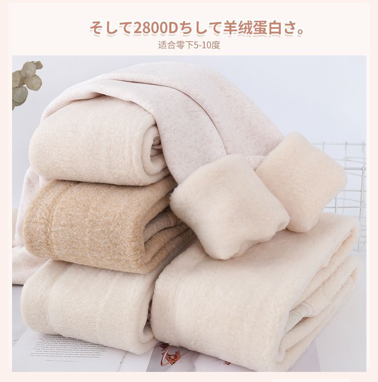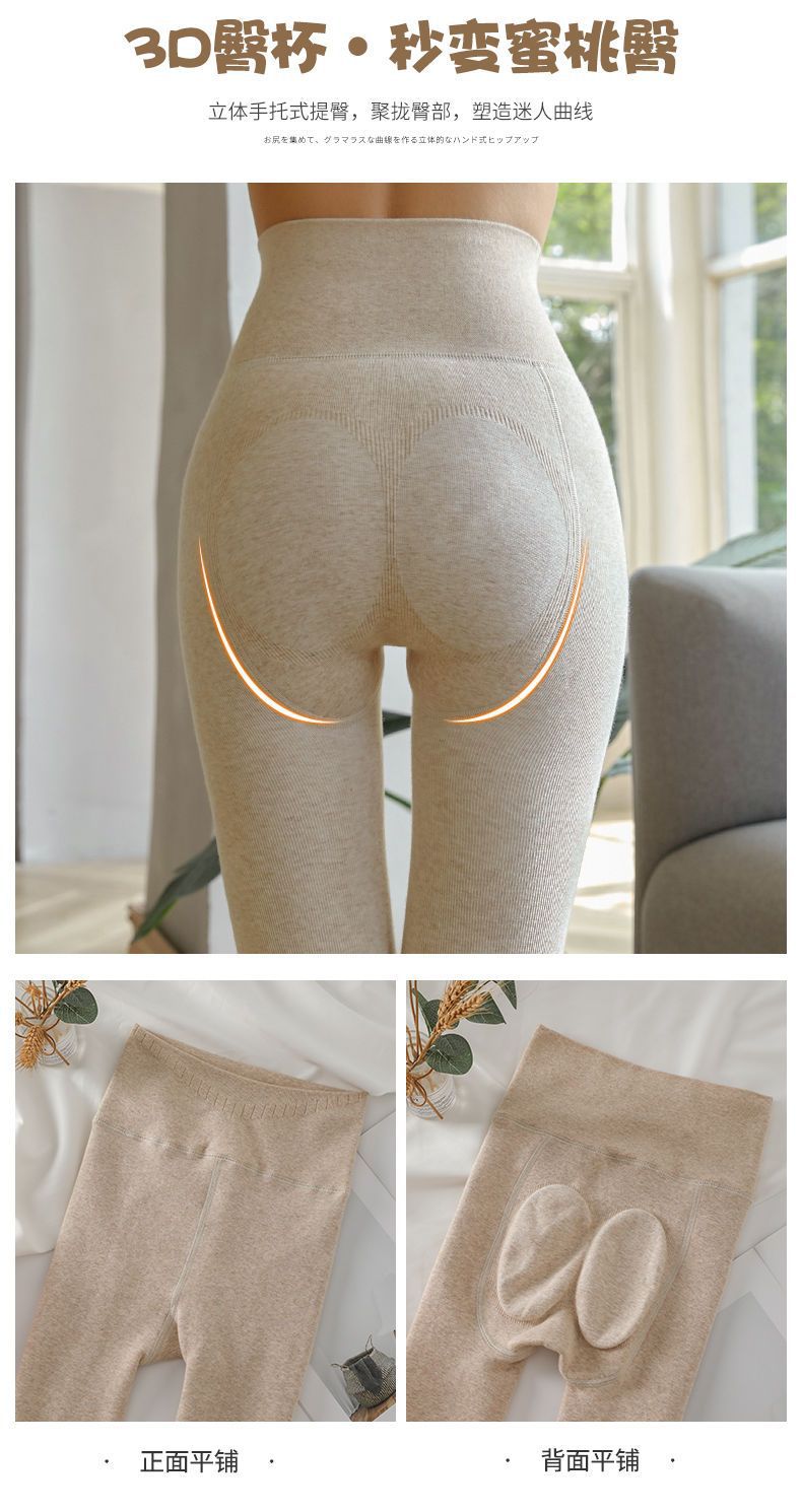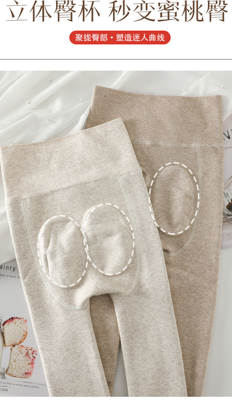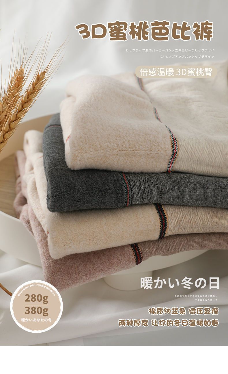 カシミヤの底のズボンの女性のベルベットの厚いズボンの靴下の春秋冬の系のオート麦の白い薄い色の縦の紋様の保温のズボンはやせています。