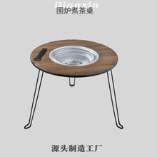 四角い囲炉裏でお茶を焚くキャンプ火鉢