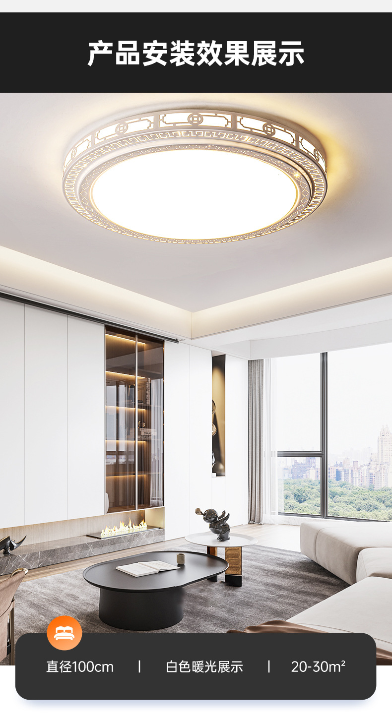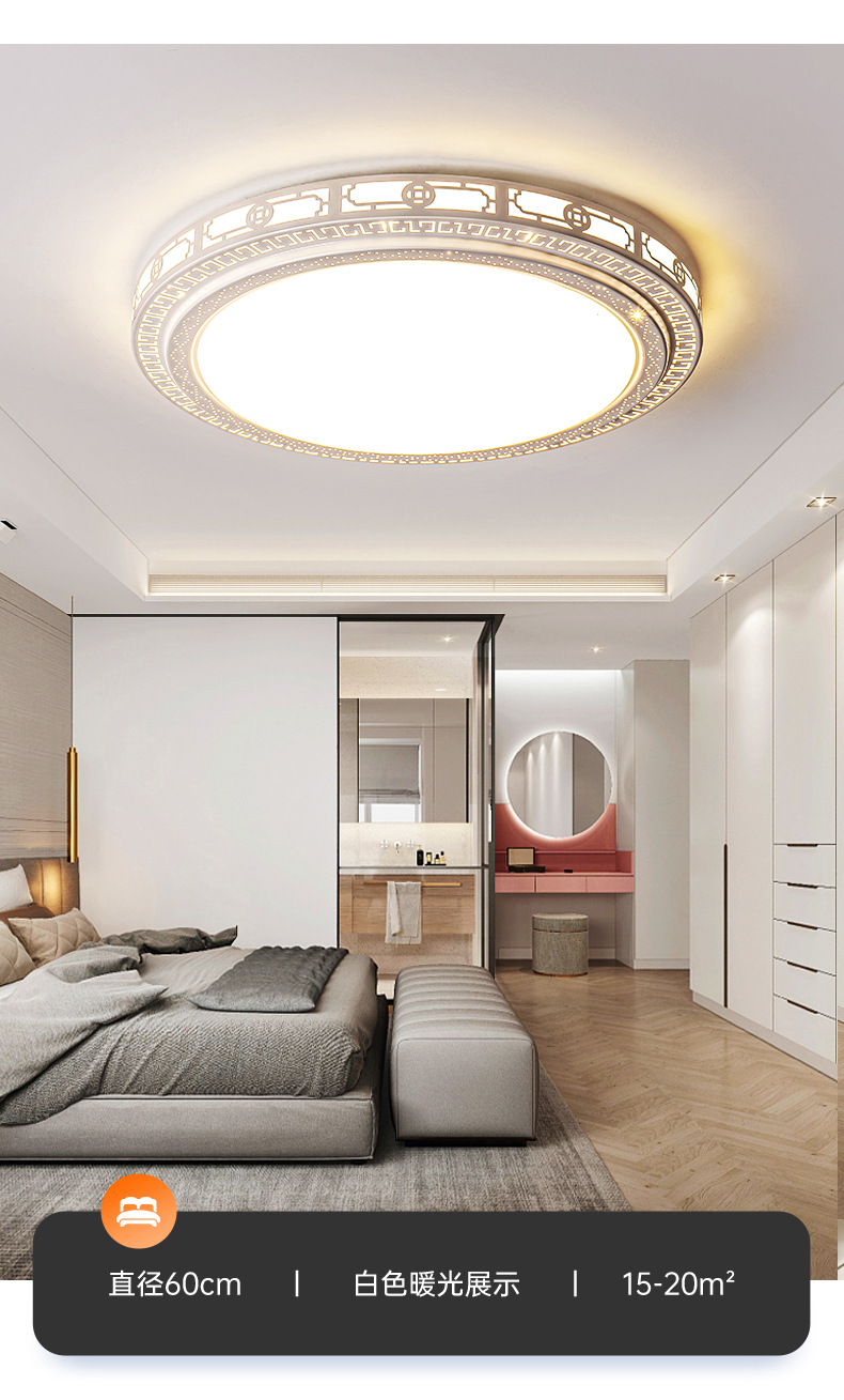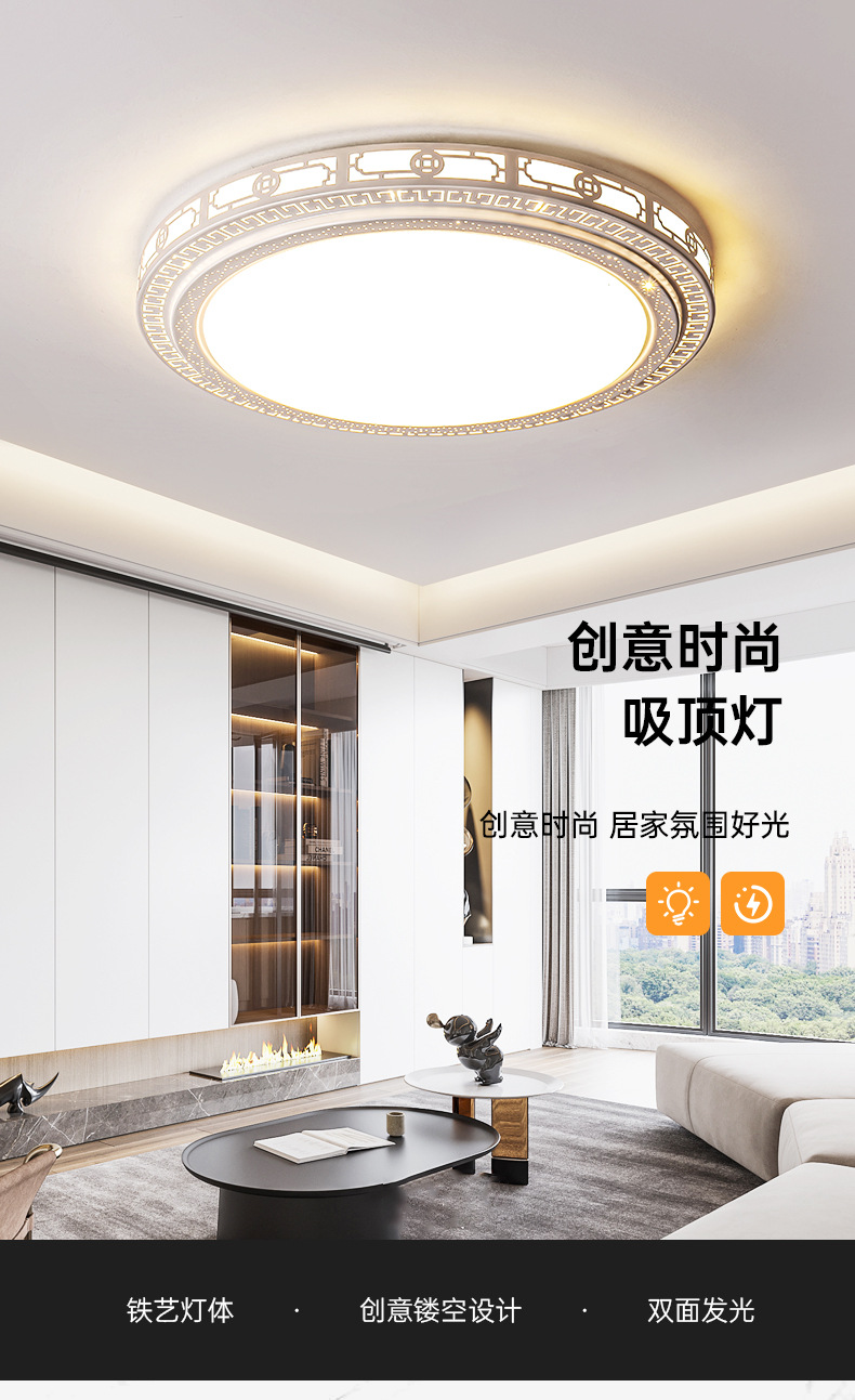 軽贅沢なリビングルームランプ、2026年新作、シンプルなホールメインランプ、寝室用シャンデリア、丸型LED中華風天井照明