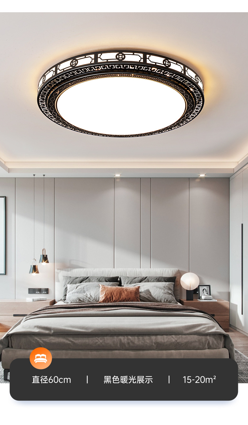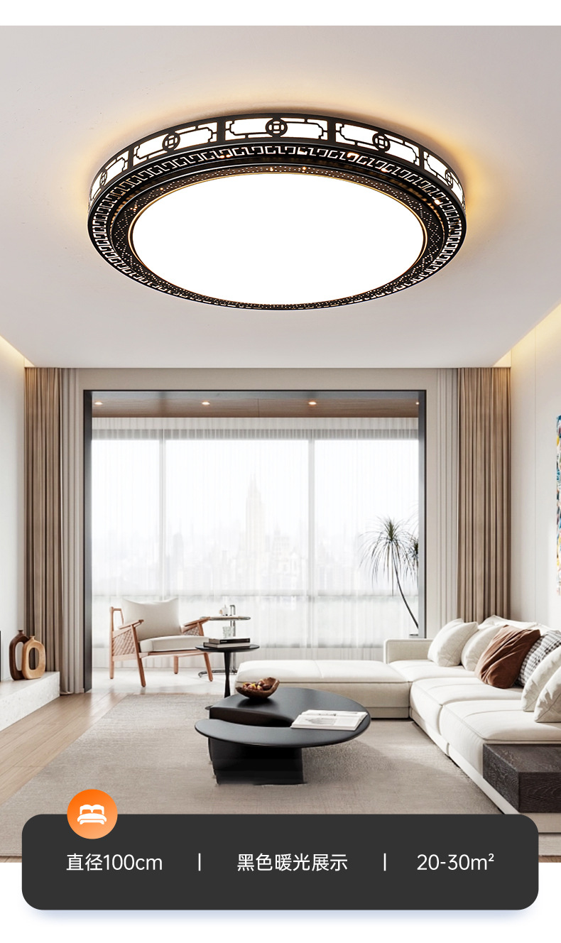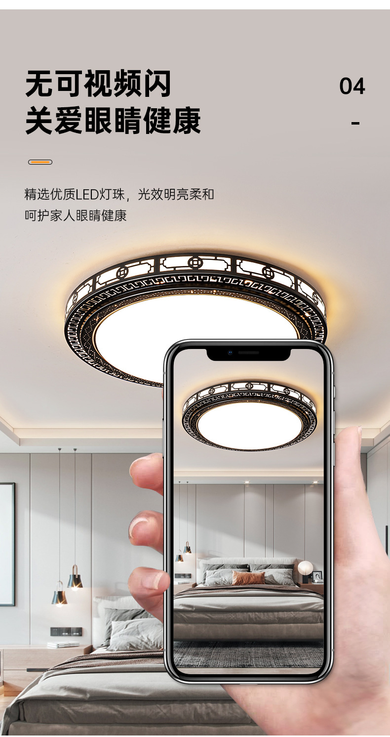 軽贅沢なリビングルームランプ、2026年新作、シンプルなホールメインランプ、寝室用シャンデリア、丸型LED中華風天井照明