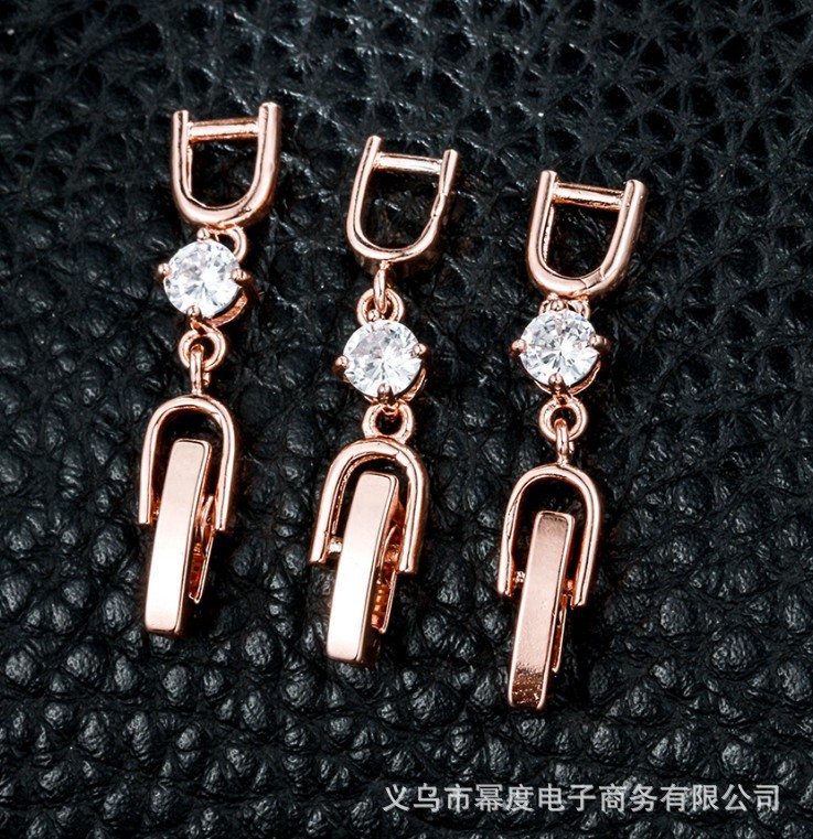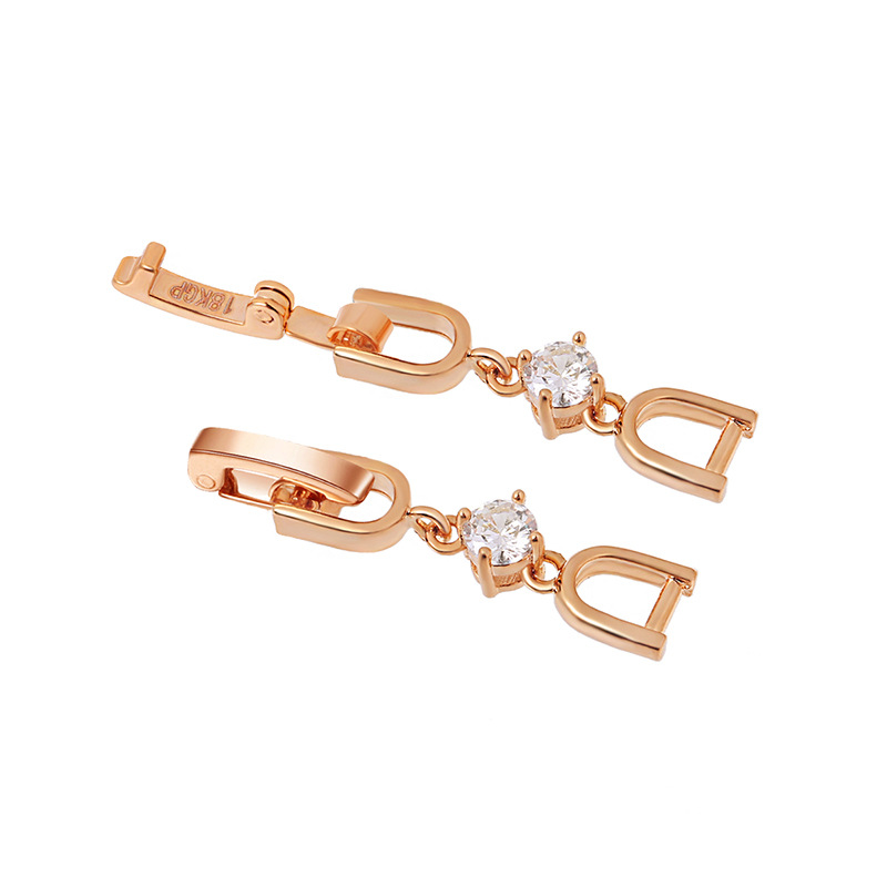 ローズゴールドとホワイトのジルコニウムのイヤーフック (ペア)