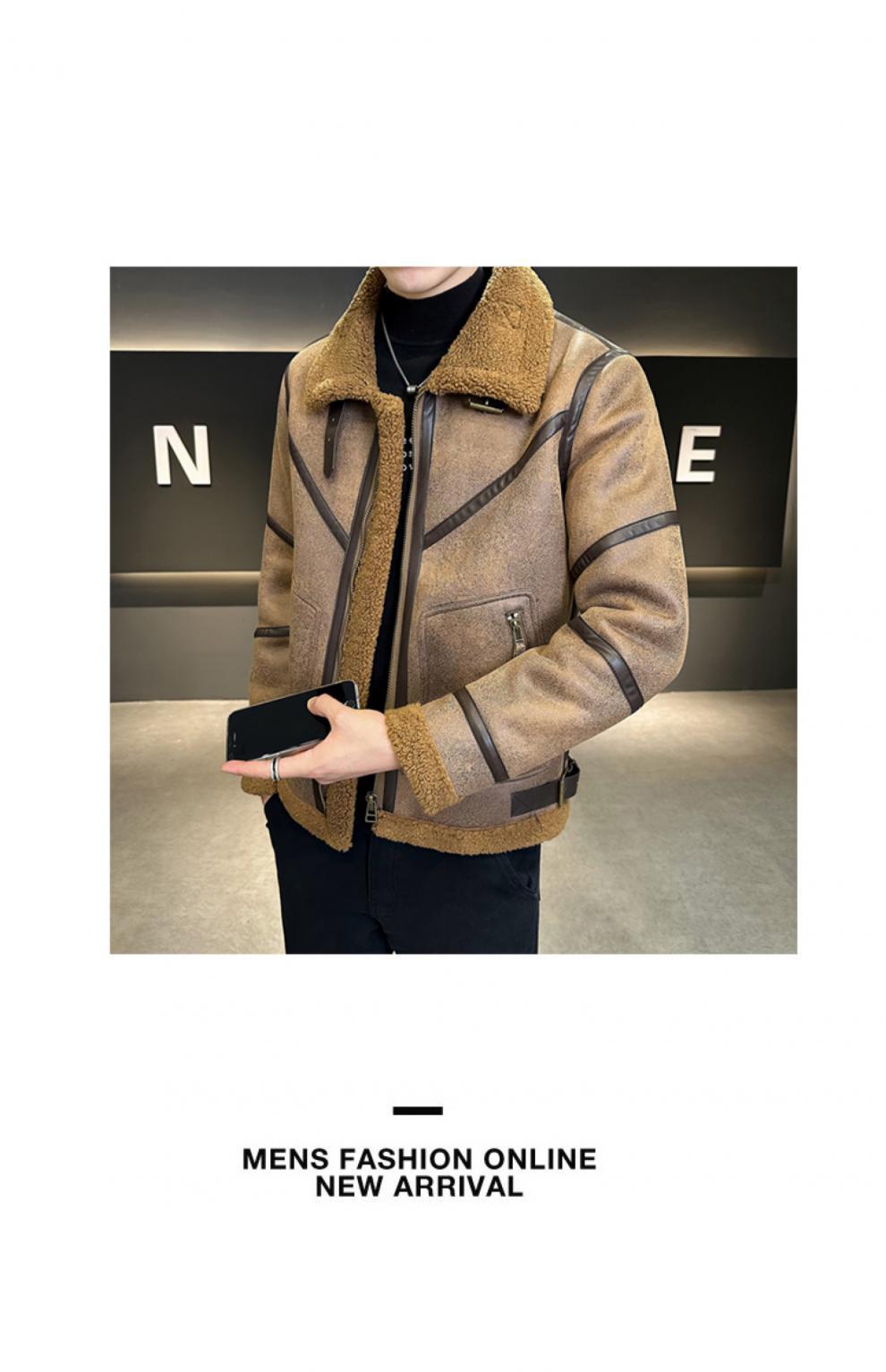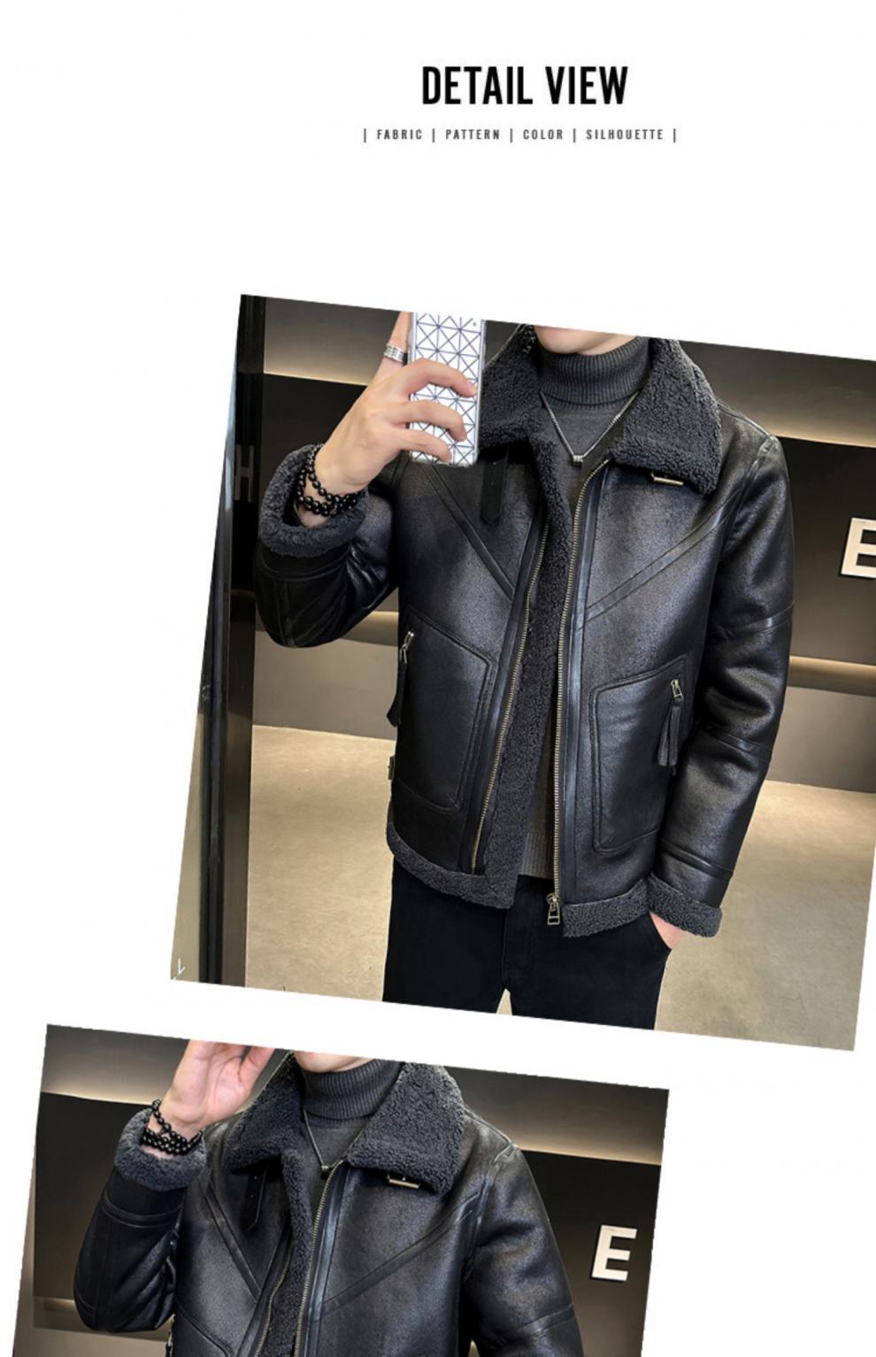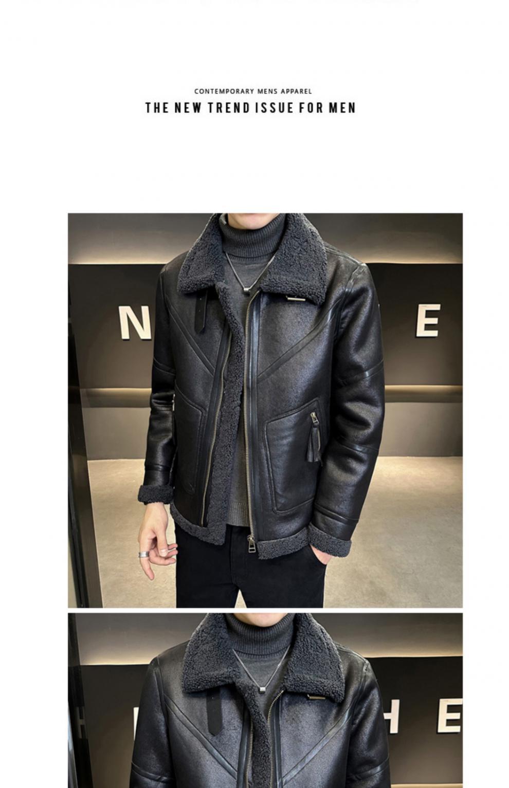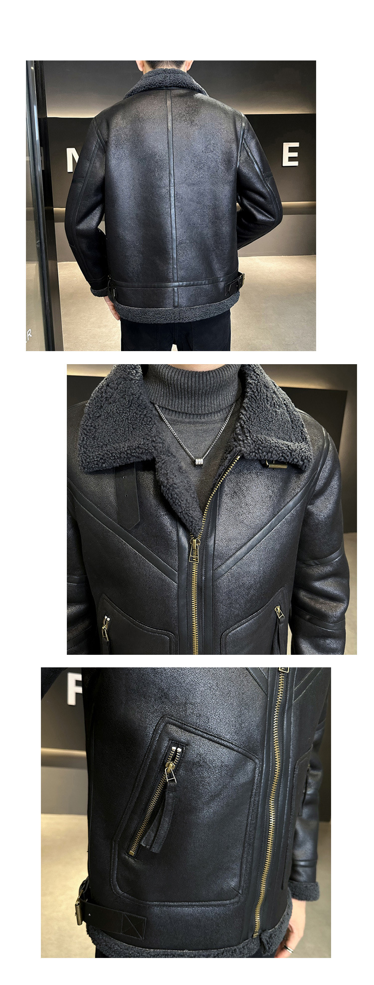 震え音が爆発した毛皮の一体コート男冬の新型子羊の毛が襟の毛皮の男の機関車がジャケットを厚くした