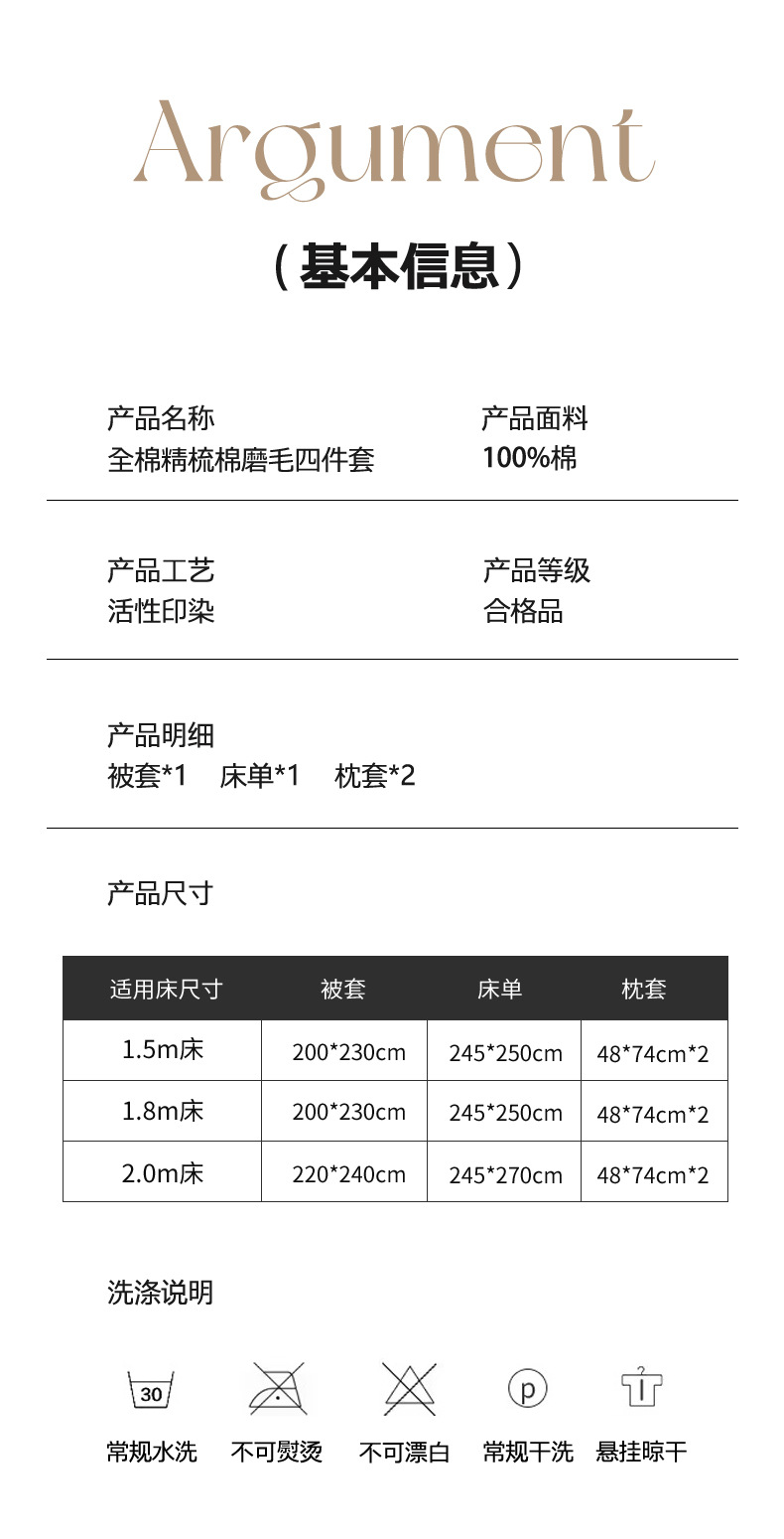 标准:被套200*230cm 床单245*250cm 枕套48*74cm*2