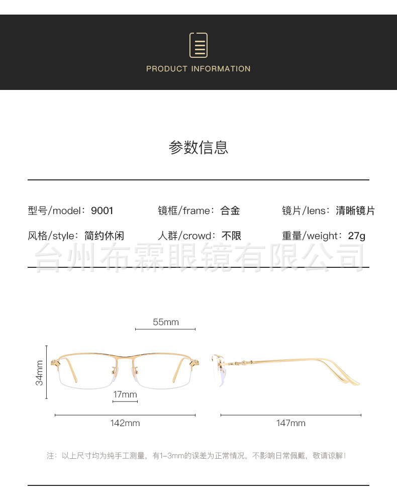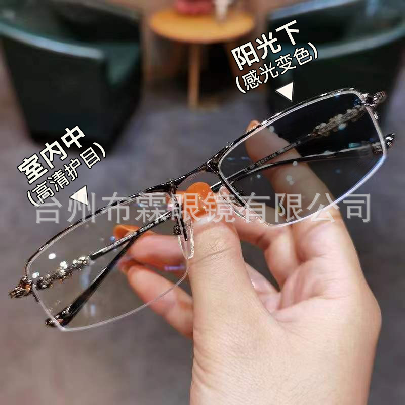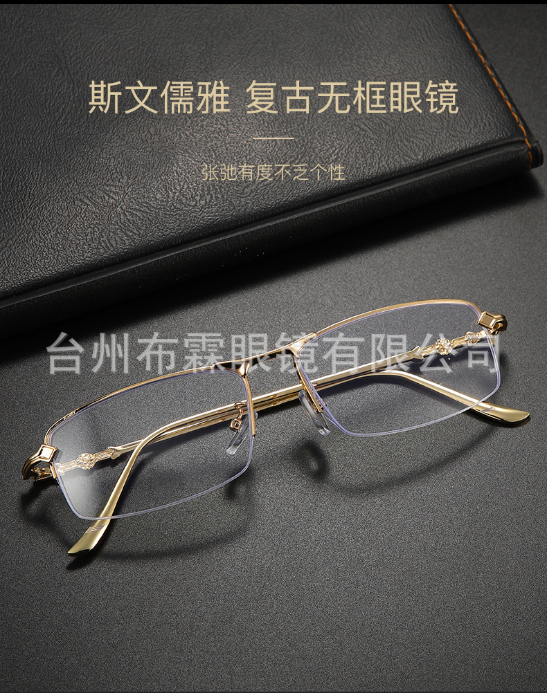 釣り糸フレーム半枠完成品近視眼鏡度数平光百合ビジネス金糸高精細ブルーレイ男女モデル