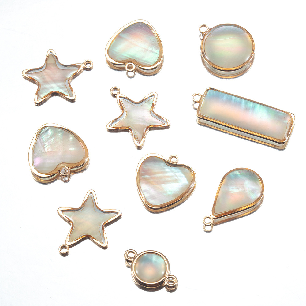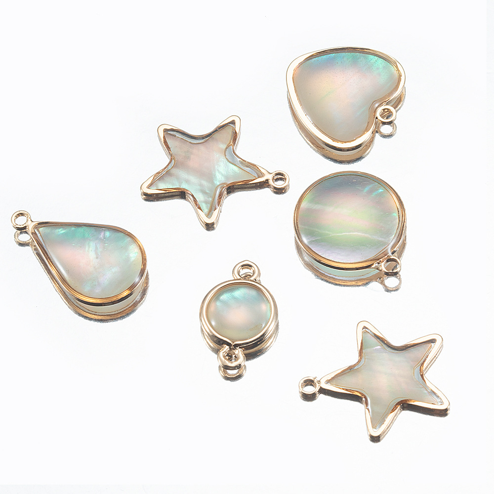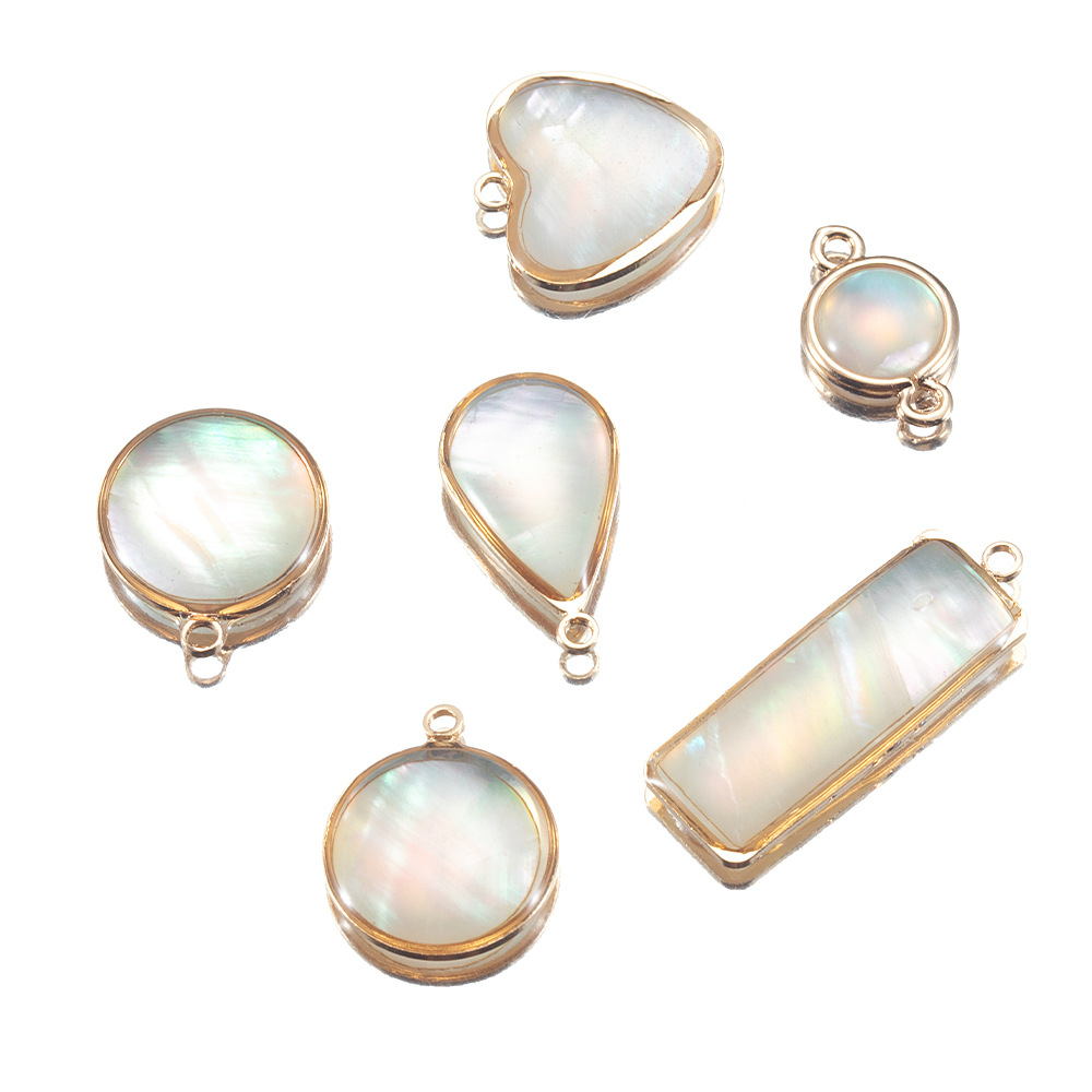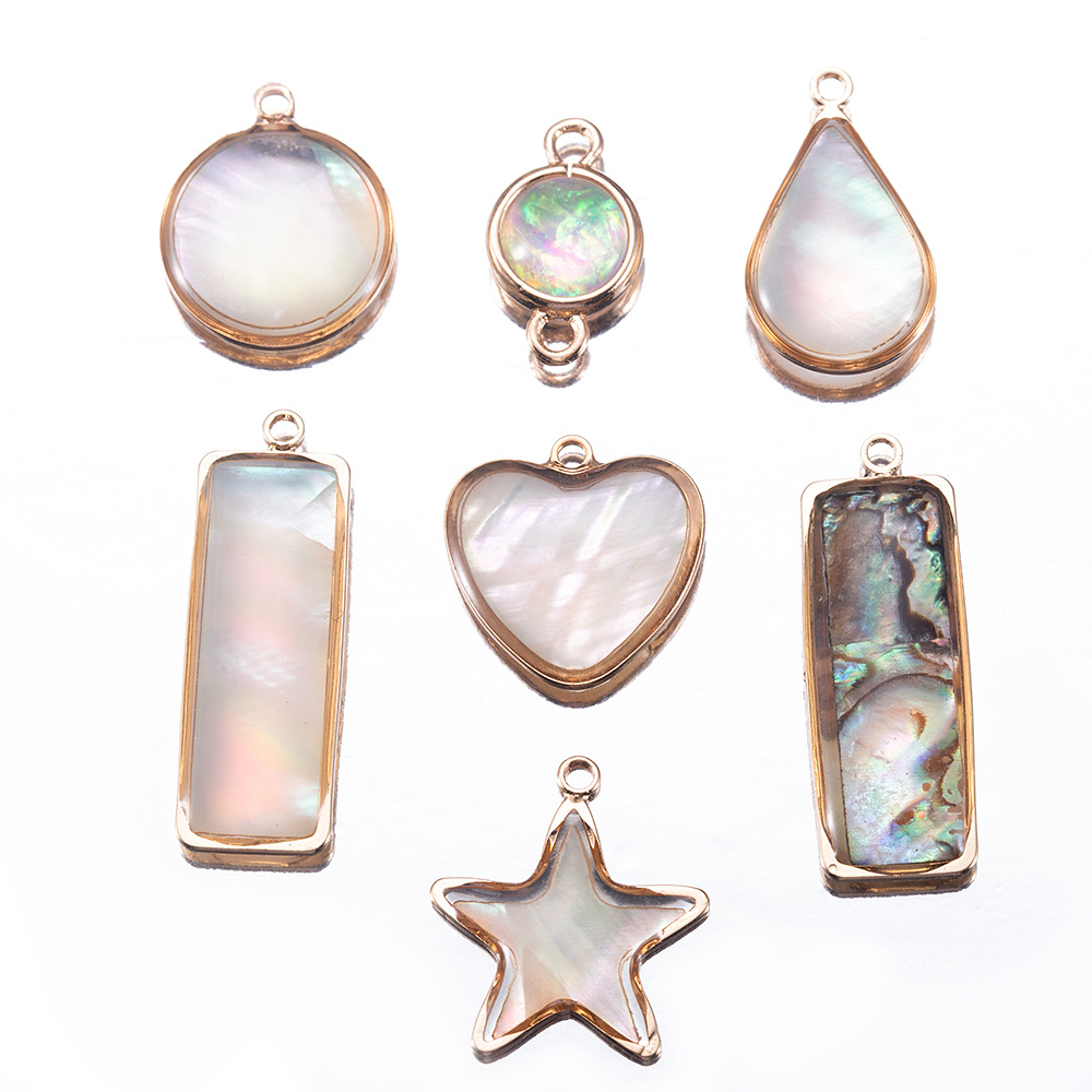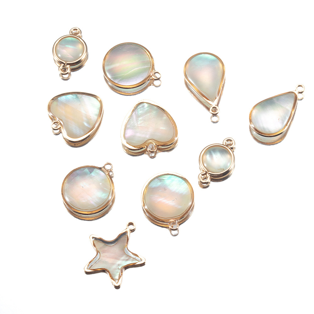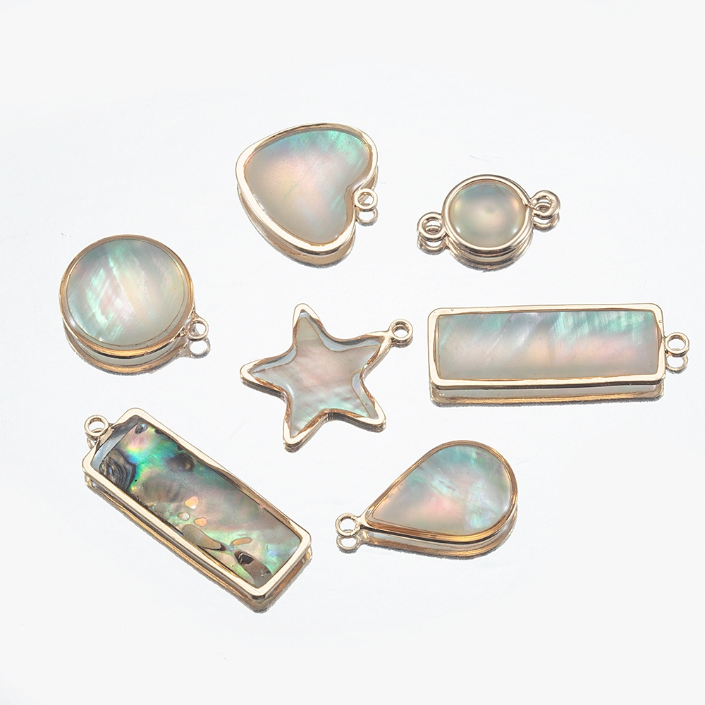 銅合金天然貝殻縁ペンダントアワビ貝円形シングルペンダントdiy手作り耳飾りネックレスアクセサリー