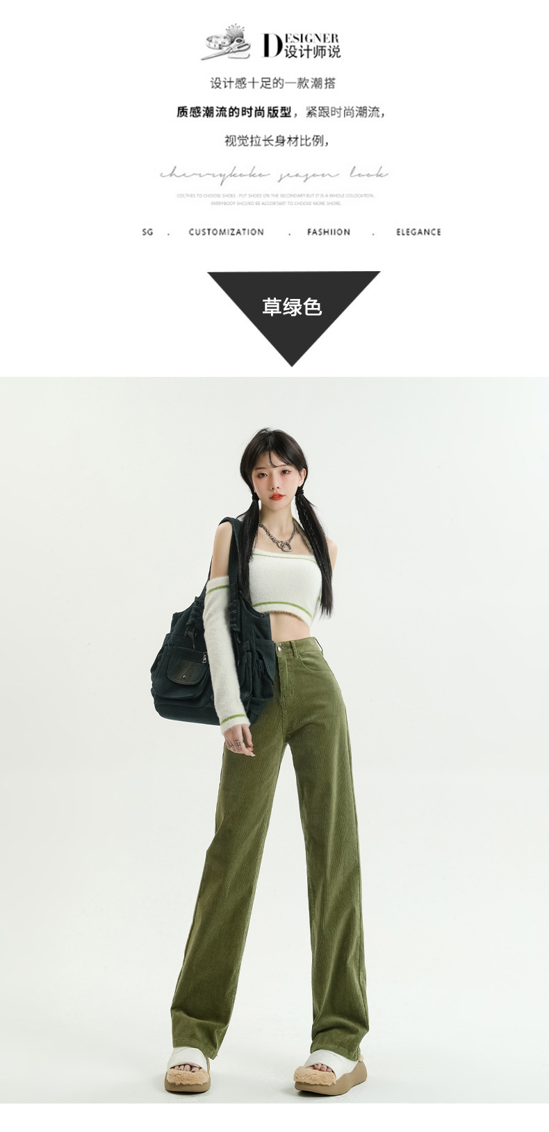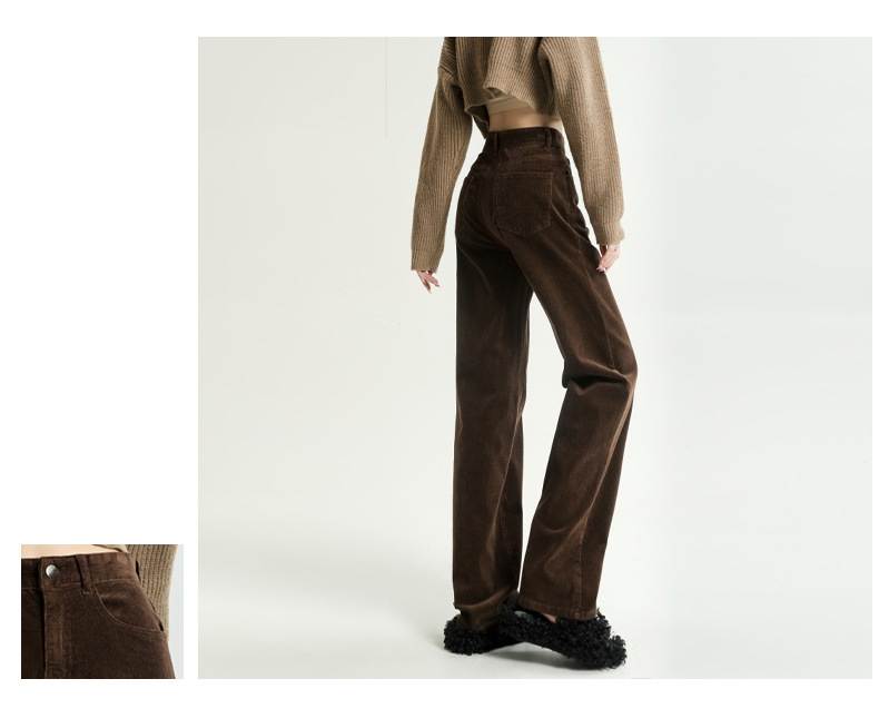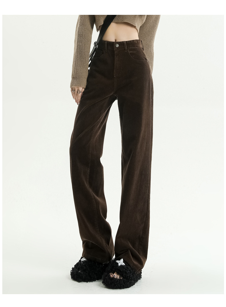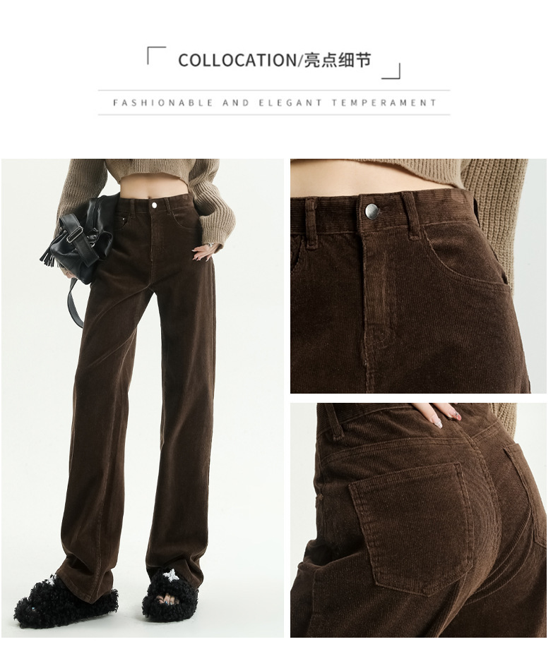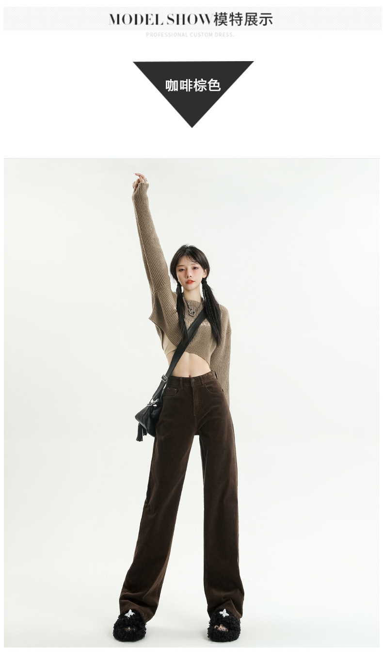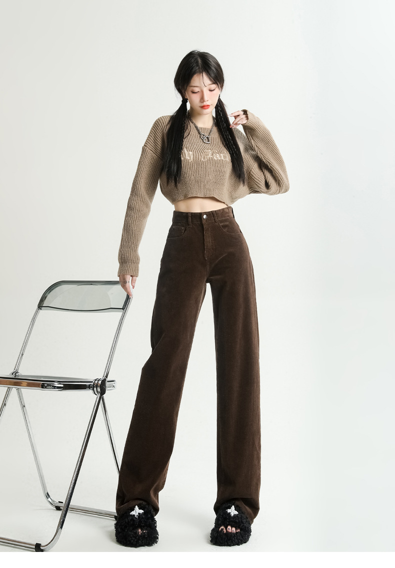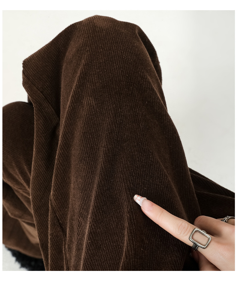 2024春秋人気商品 草緑色コーデュロイワイドパンツ レディース レトロハイウエストロングパンツ カジュアルロングストレートパンツ