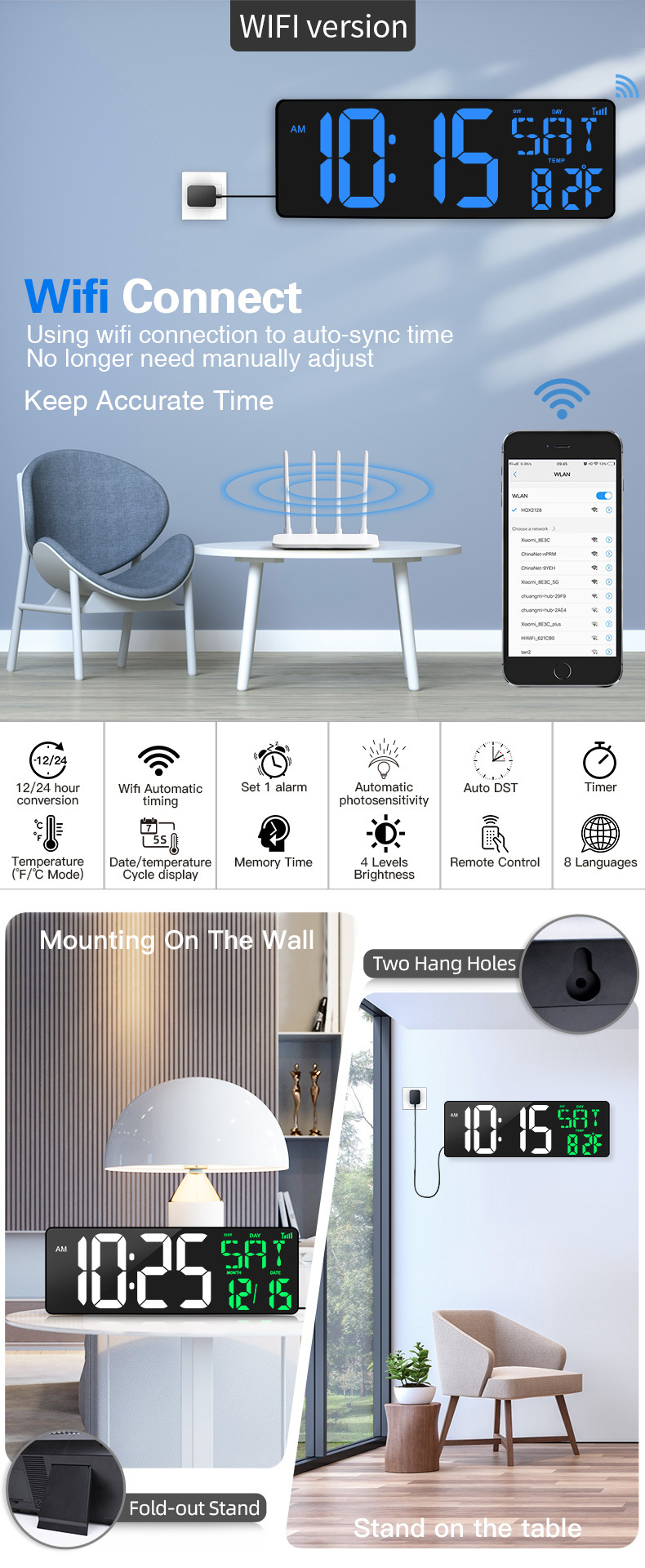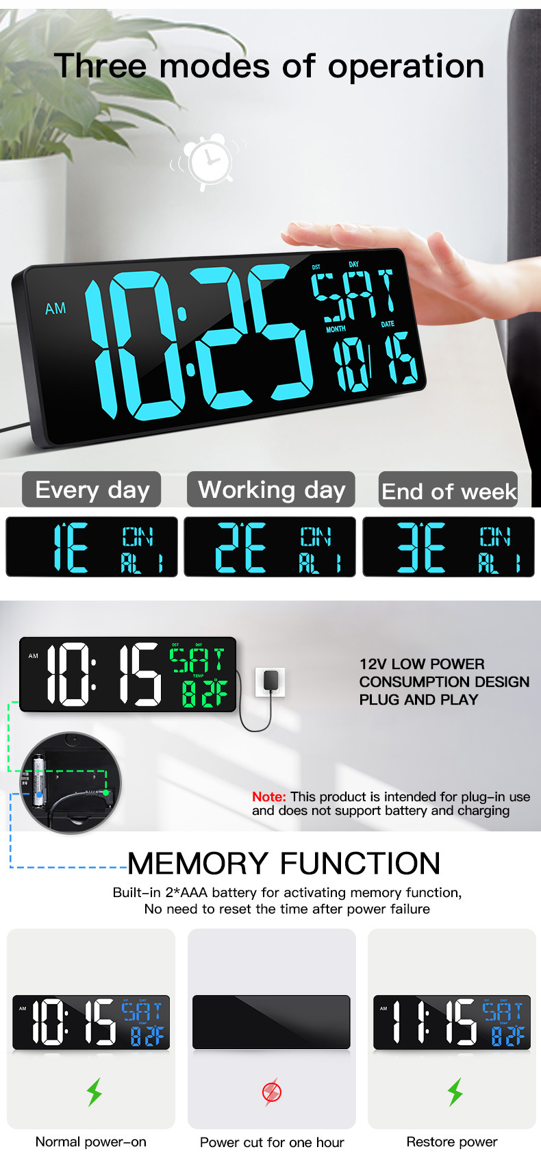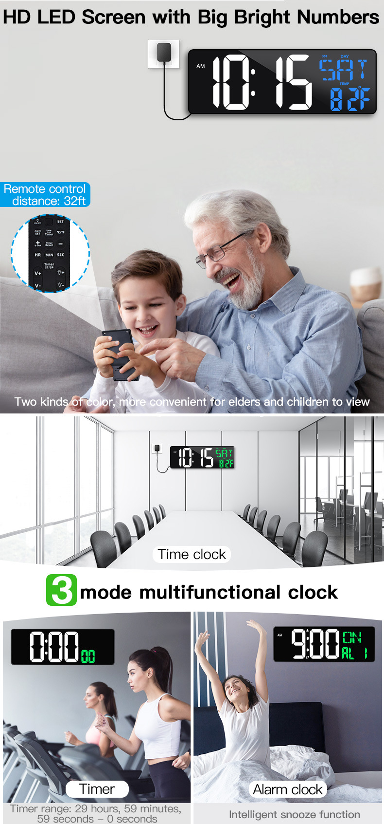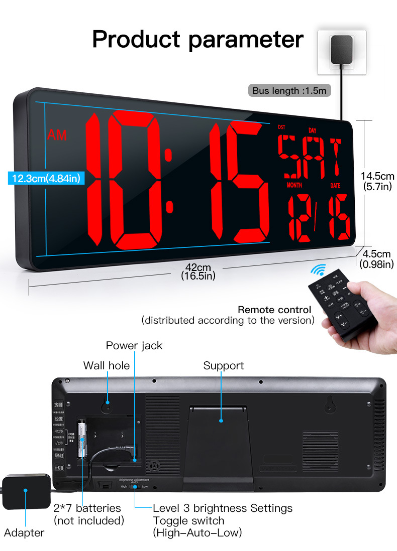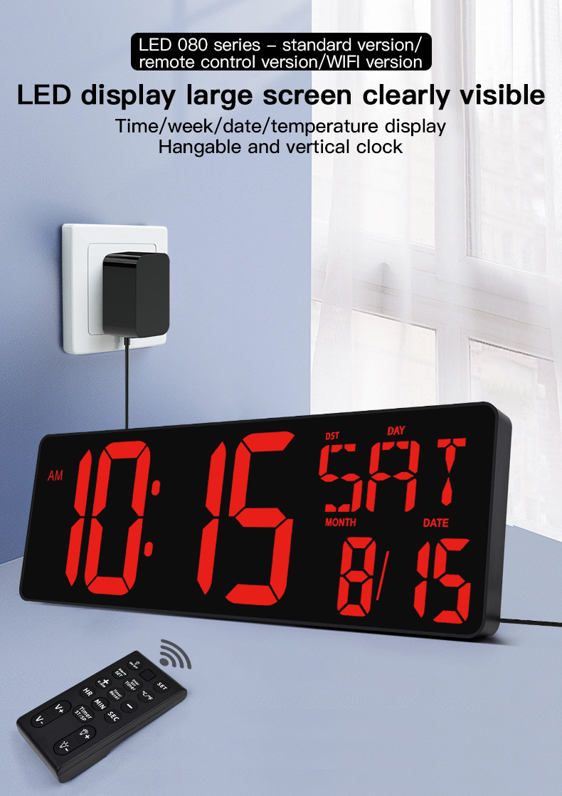 Amazon Hot 17.2 インチ LED 大画面デジタル壁時計、ポジティブカウントダウン電子目覚まし時計付き
