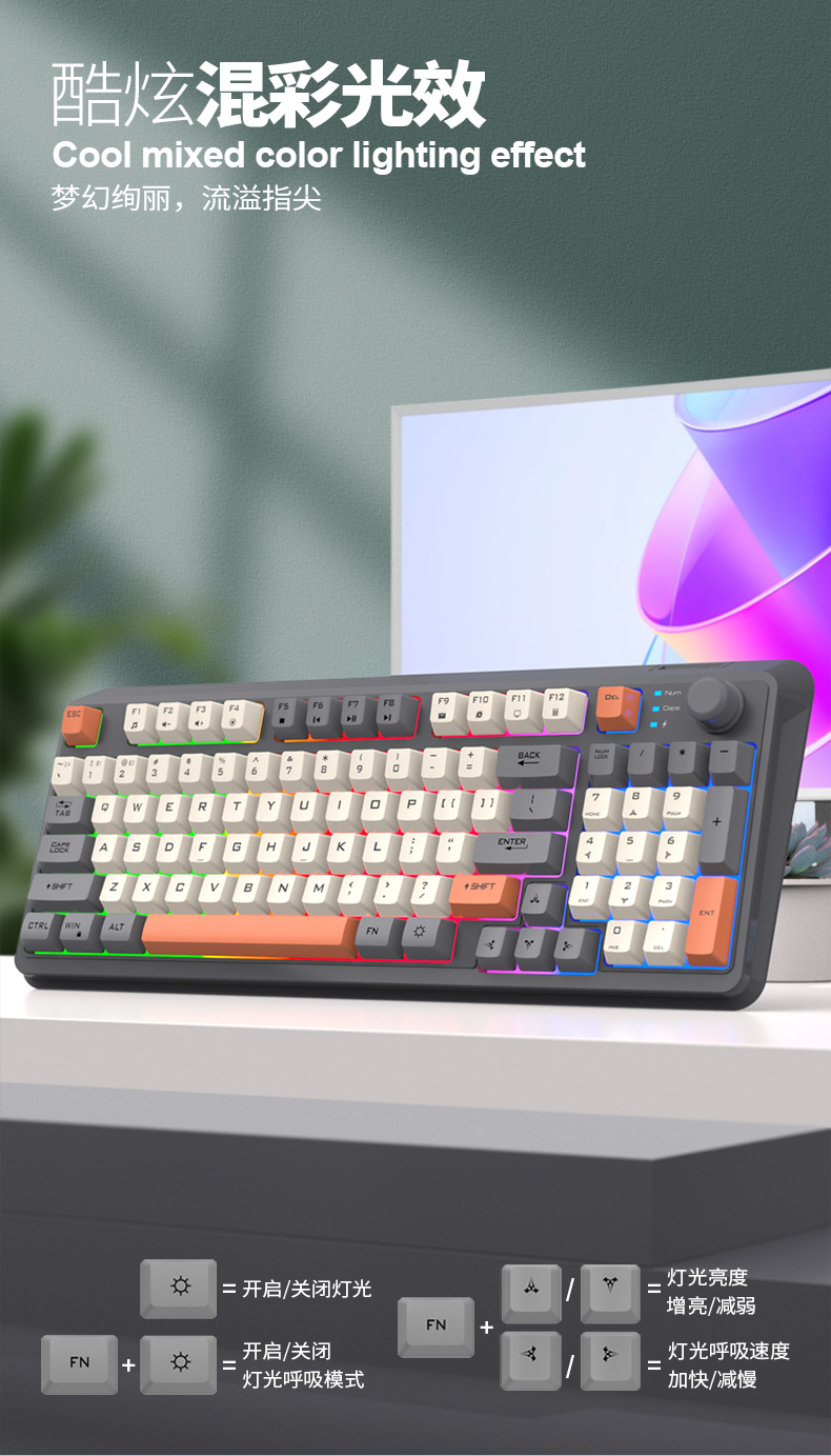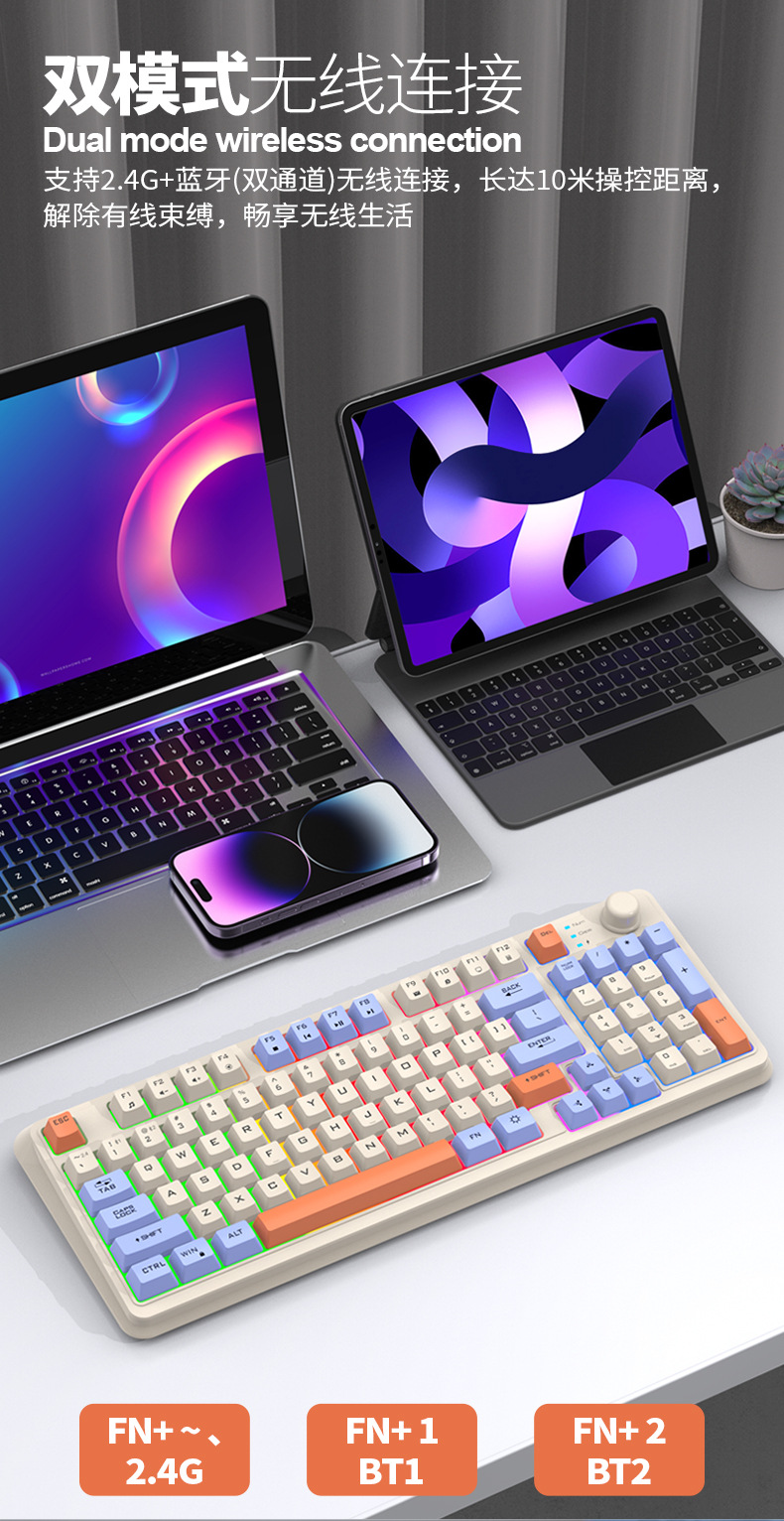 まぶしい銀狐k 94無線bluetoothダブルモード機械手触りキーボードゲーム電気競争事務キーボードパソコンノート