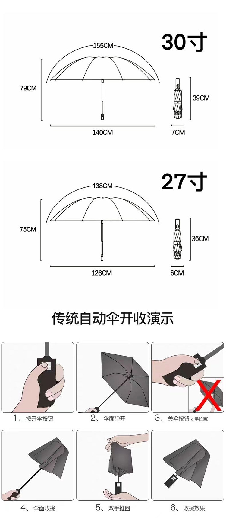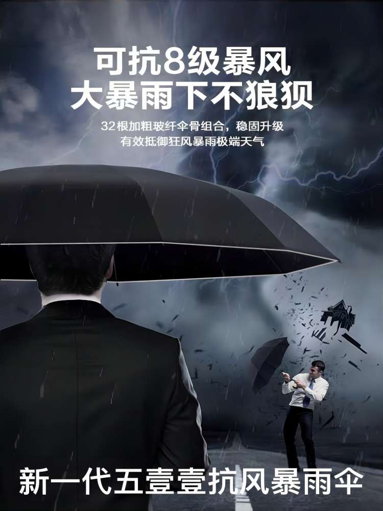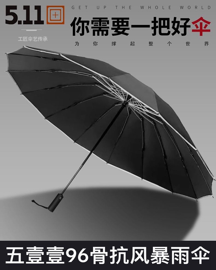 96骨511傘耐風豪雨専用増厚補強男性自動逆黒ゴム晴雨両用