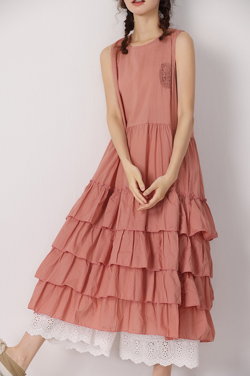 クロスボーダーの女性の甘い森の女性の減齢の純色の袖なしのケーキのスカートはゆったりしています。