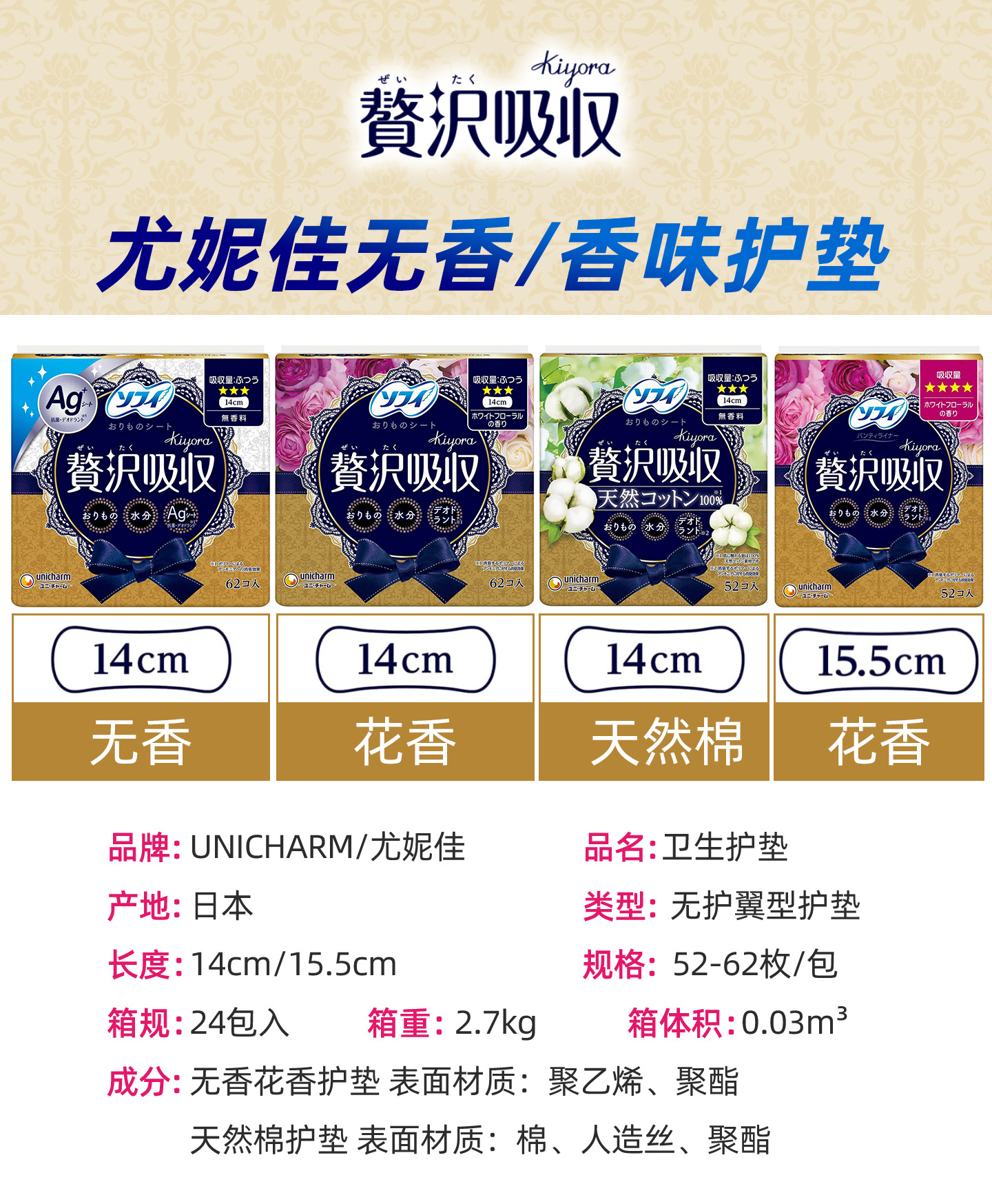 日本輸入元ユーニカ優しい敏感肌肌女性用生理用ナプキン衛生パッド62枚