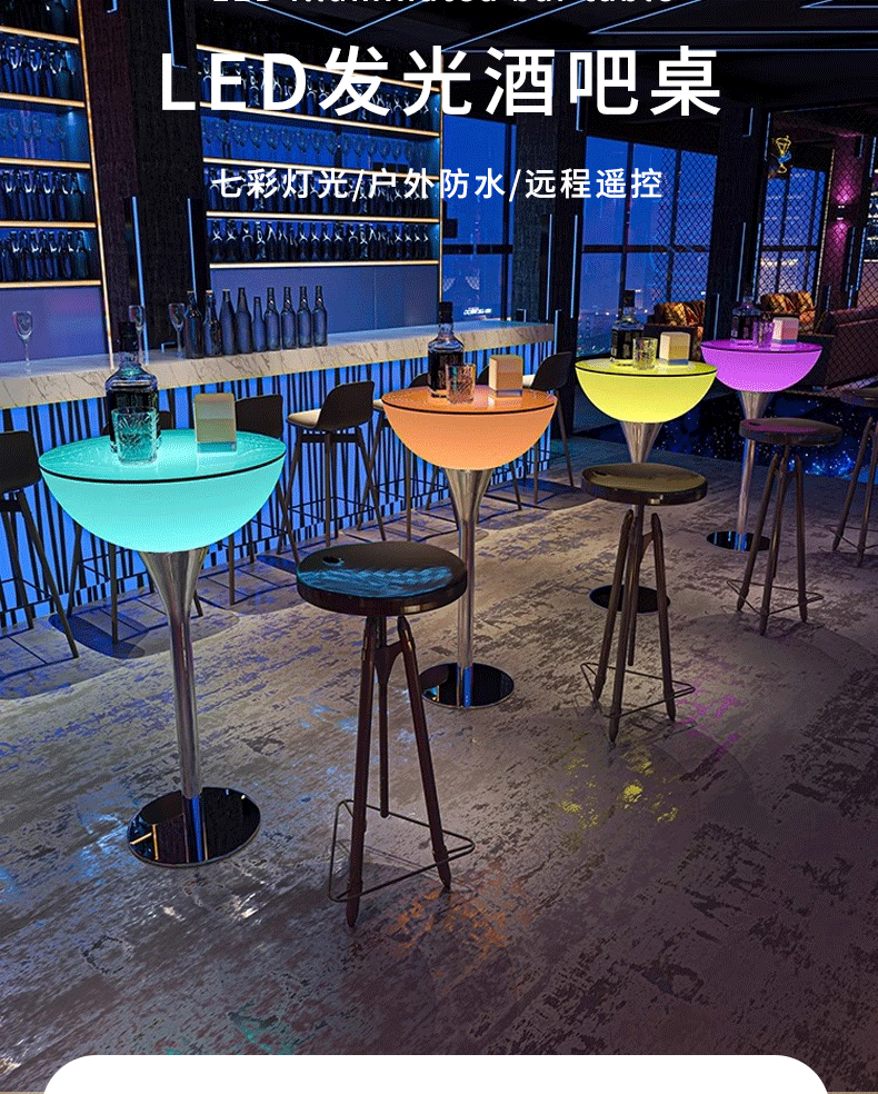 屋外バーテーブルと椅子、ナイトクラブの個室、KTV、ハイテーブル、カクテルテーブル、清酒バーのテーブル、家具、発光テーブル