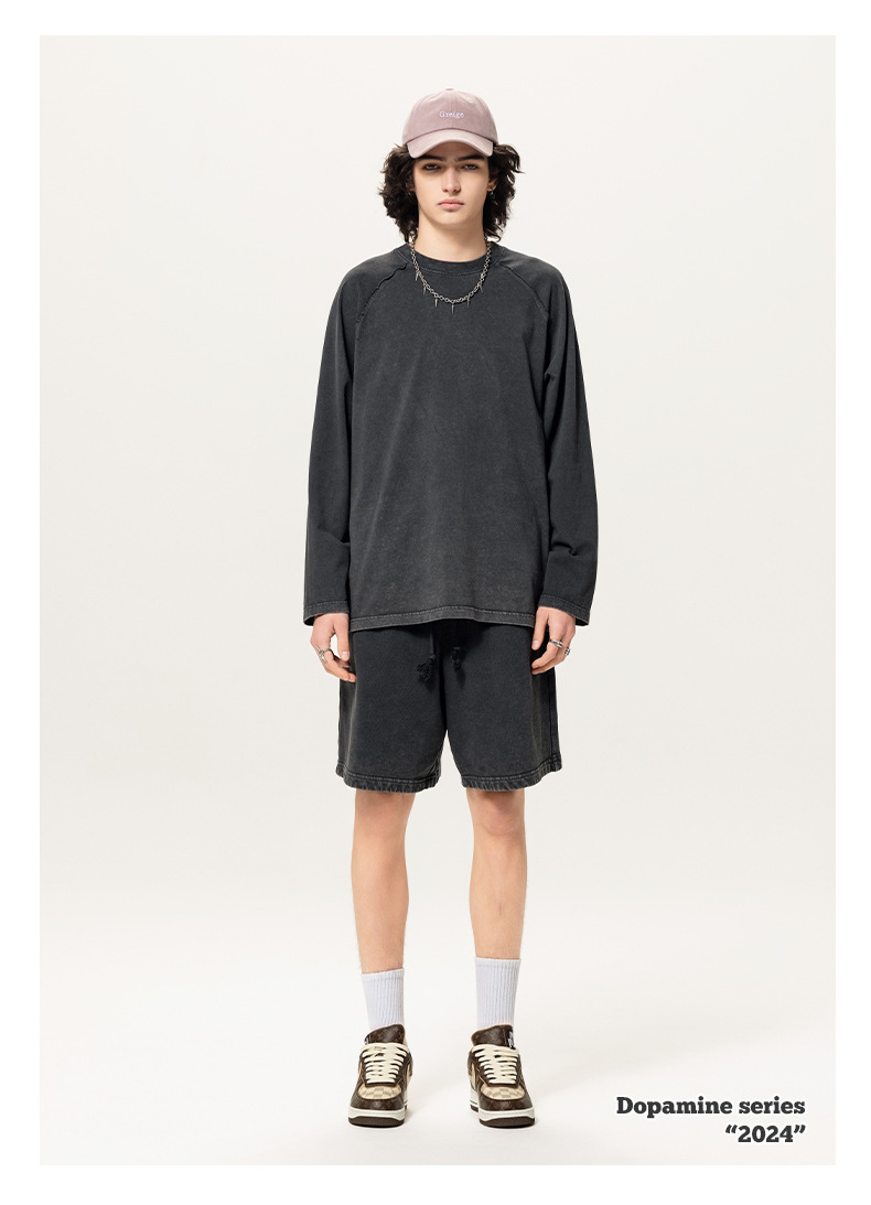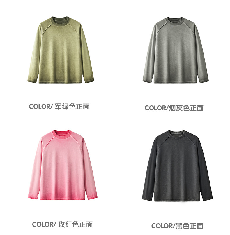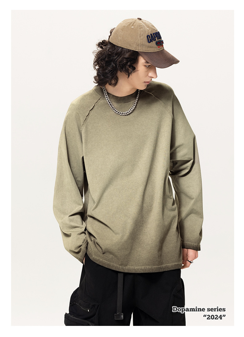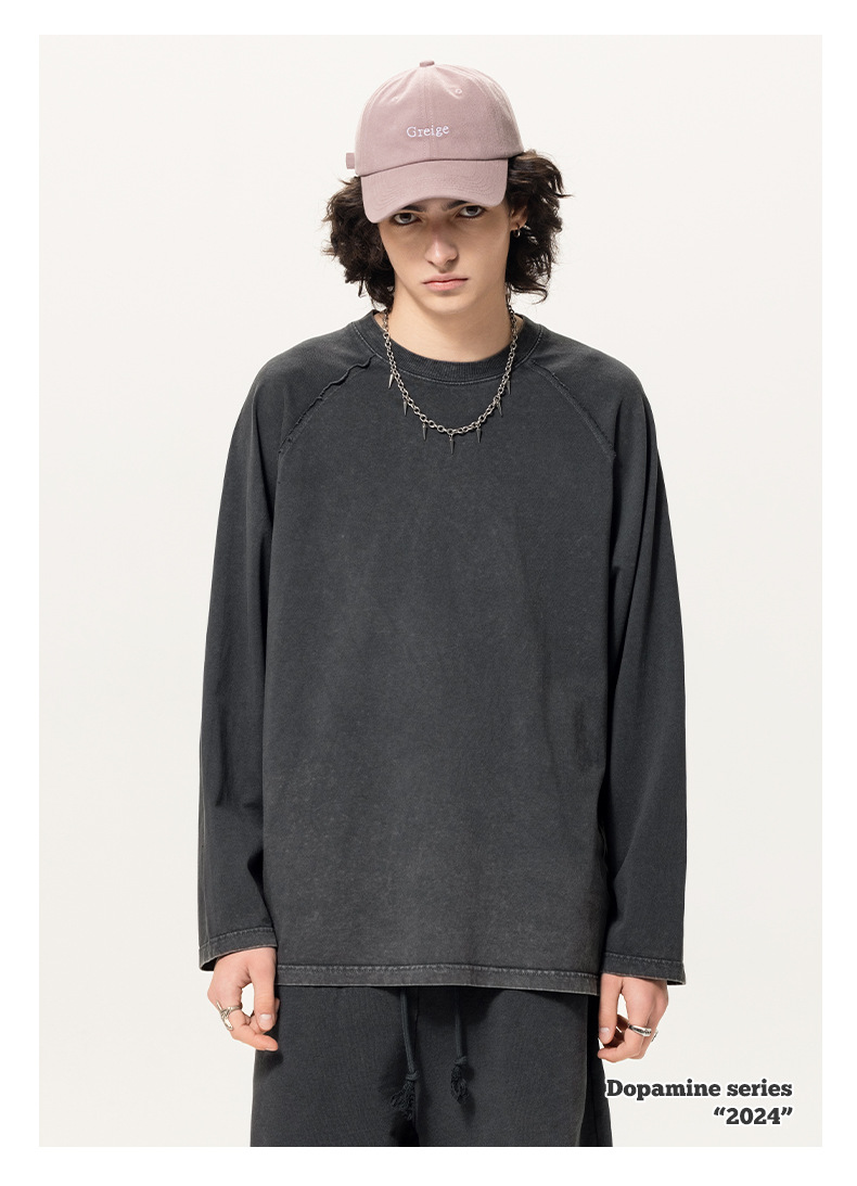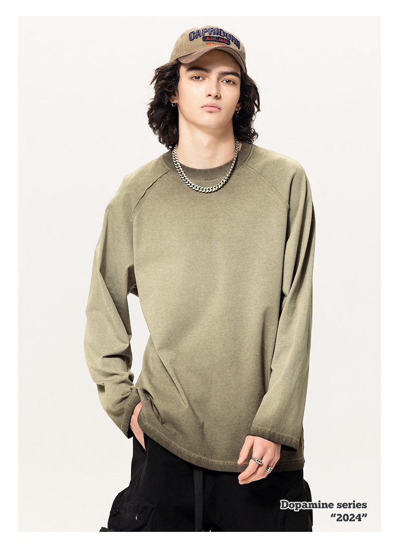 RSメンズ | ファッションブランドの新しい汚れ洗浄270G重ポンド長袖tシャツ男性欧米ins純色水洗い古い男性tシャツ
