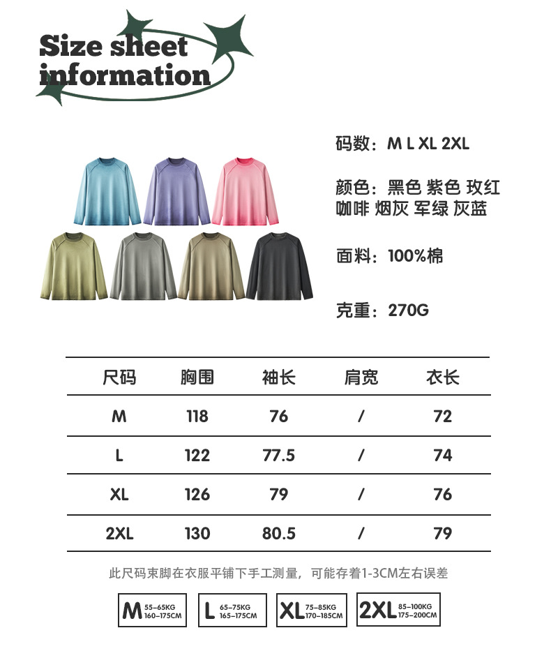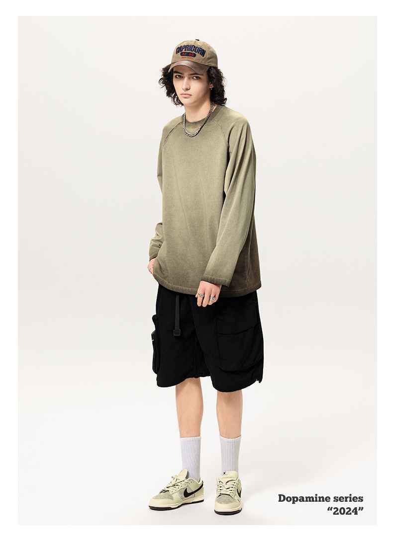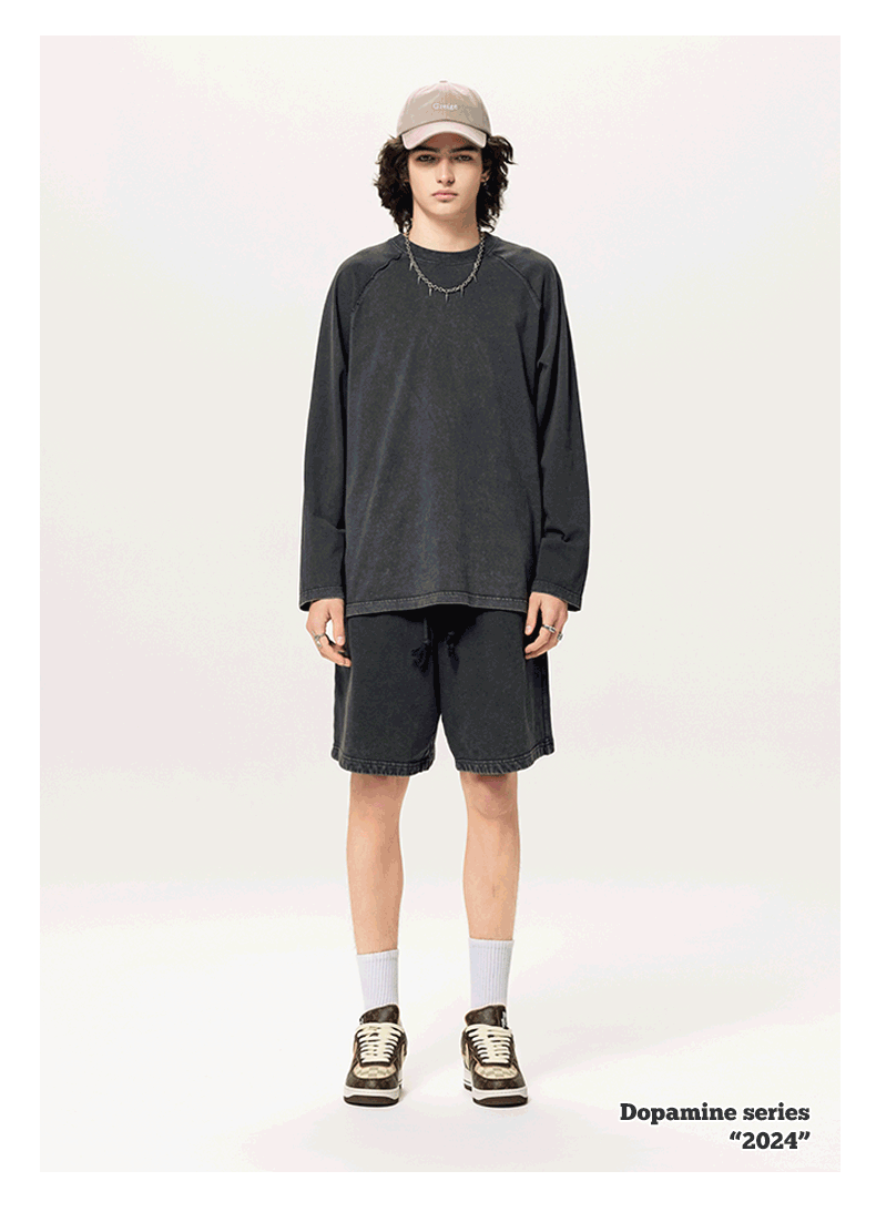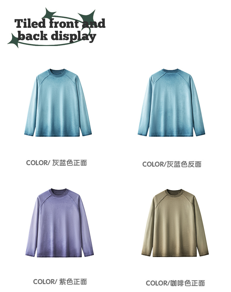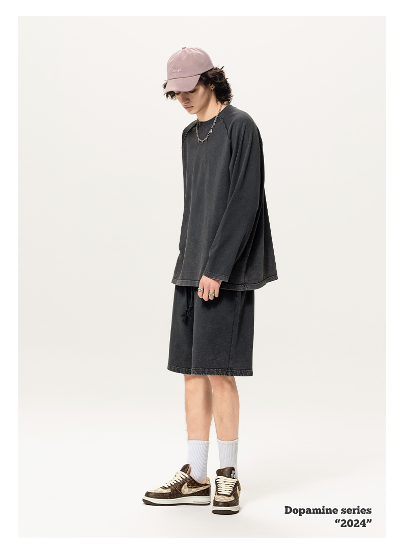 RSメンズ | ファッションブランドの新しい汚れ洗浄270G重ポンド長袖tシャツ男性欧米ins純色水洗い古い男性tシャツ