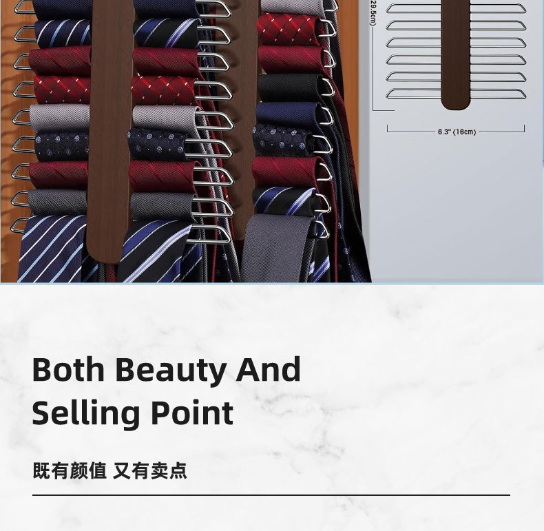 20掛け溝原木色丸フック金掛け,20連式ブラックネクタイハンガー,20スロットレトロカラーネクタイハンガー,ナチュラルカラー二層ムカデ吊り下げ