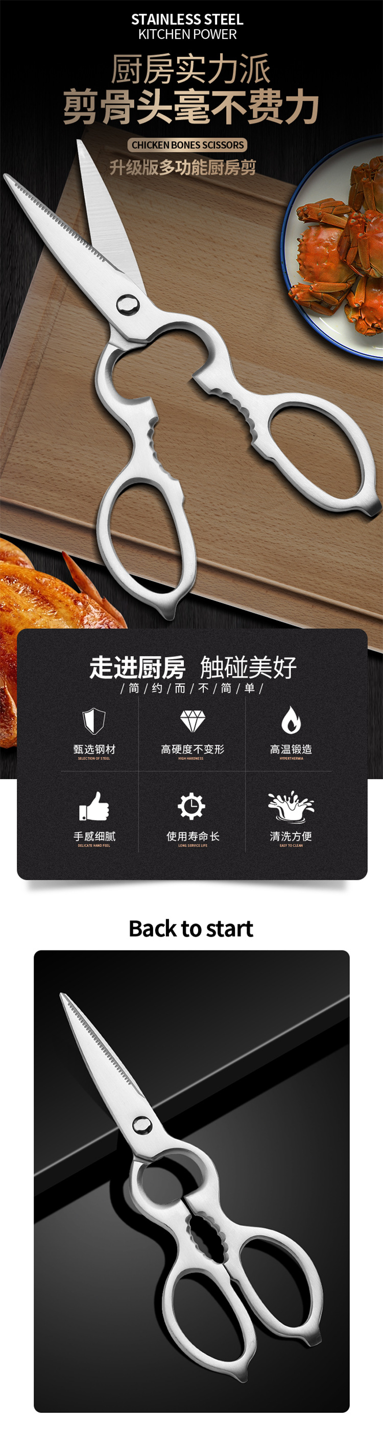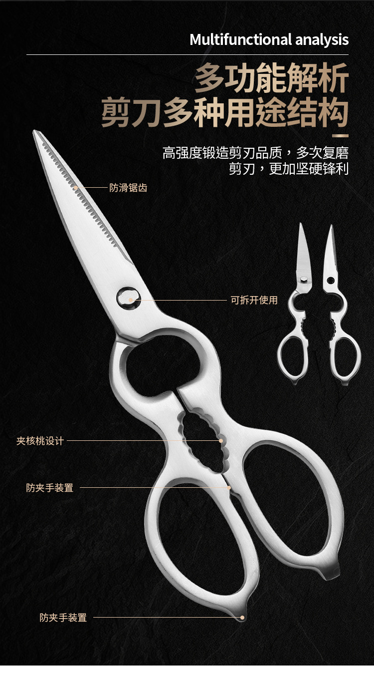 ステンレス製キッチンはさみ、全鋼製ひょうたん型多機能強力鶏骨切りはさみ、多用途キッチン用品、在庫あり、家庭用