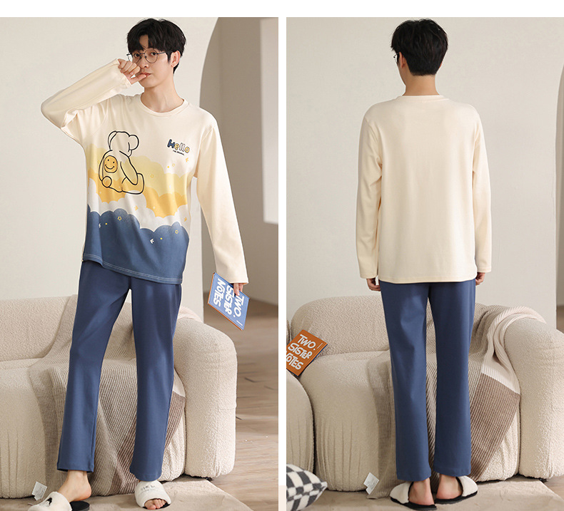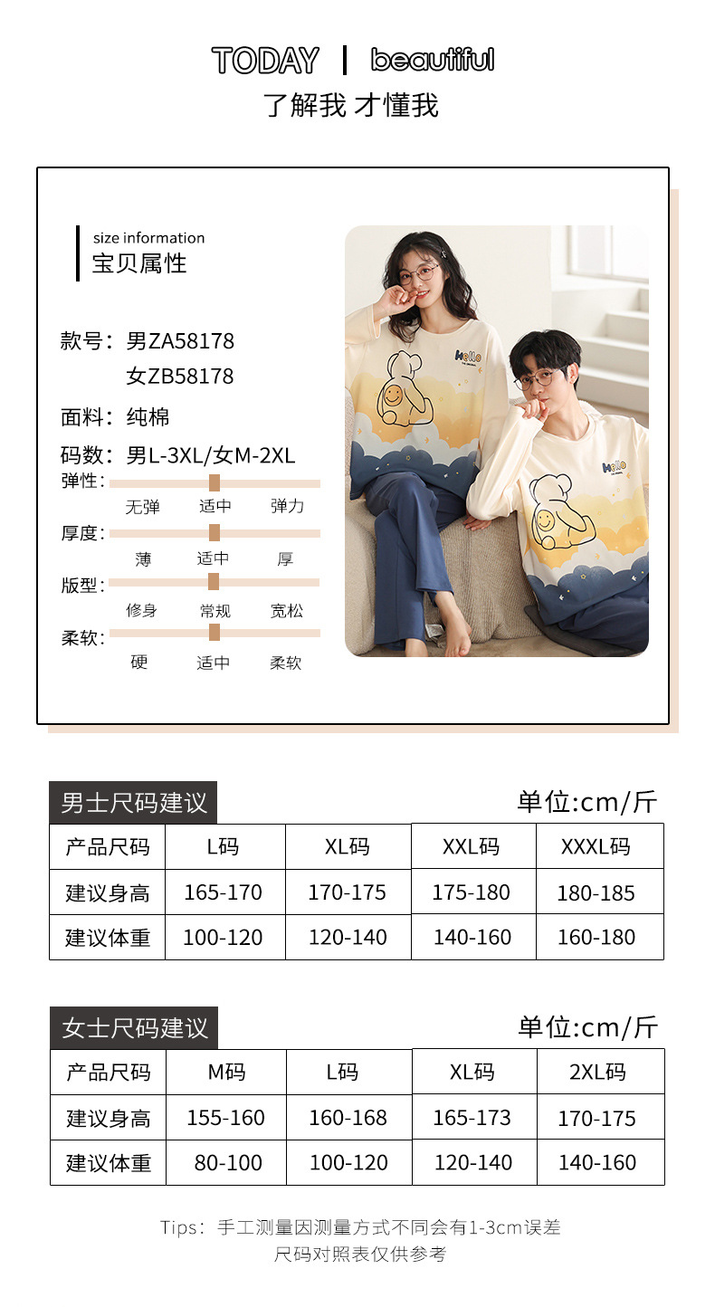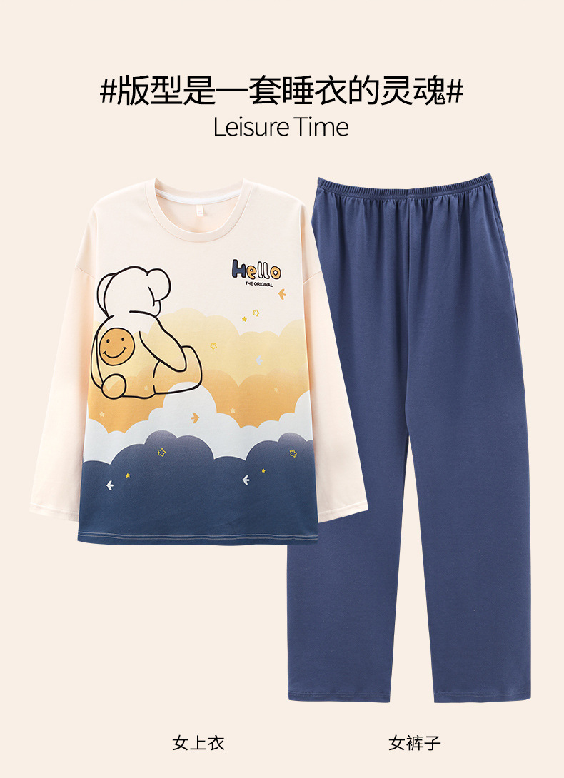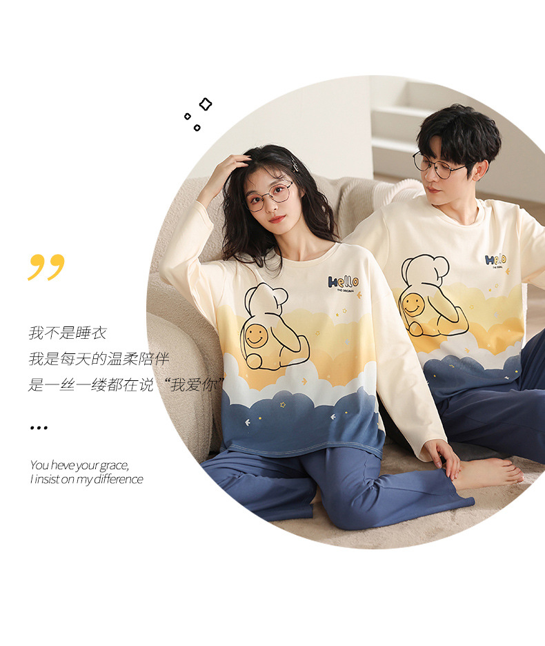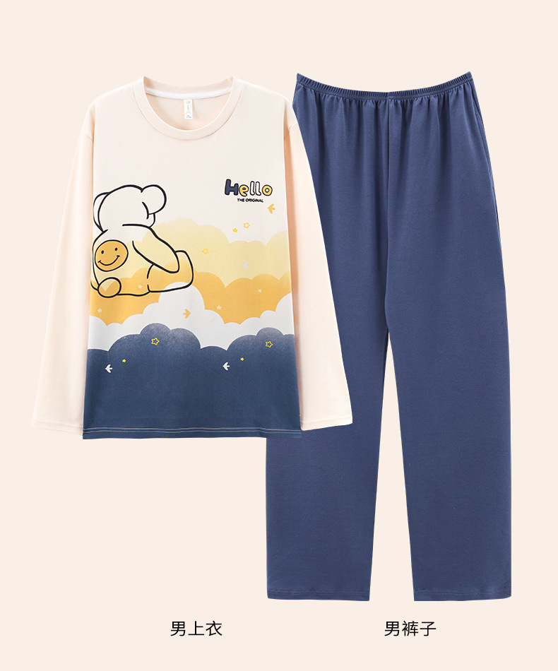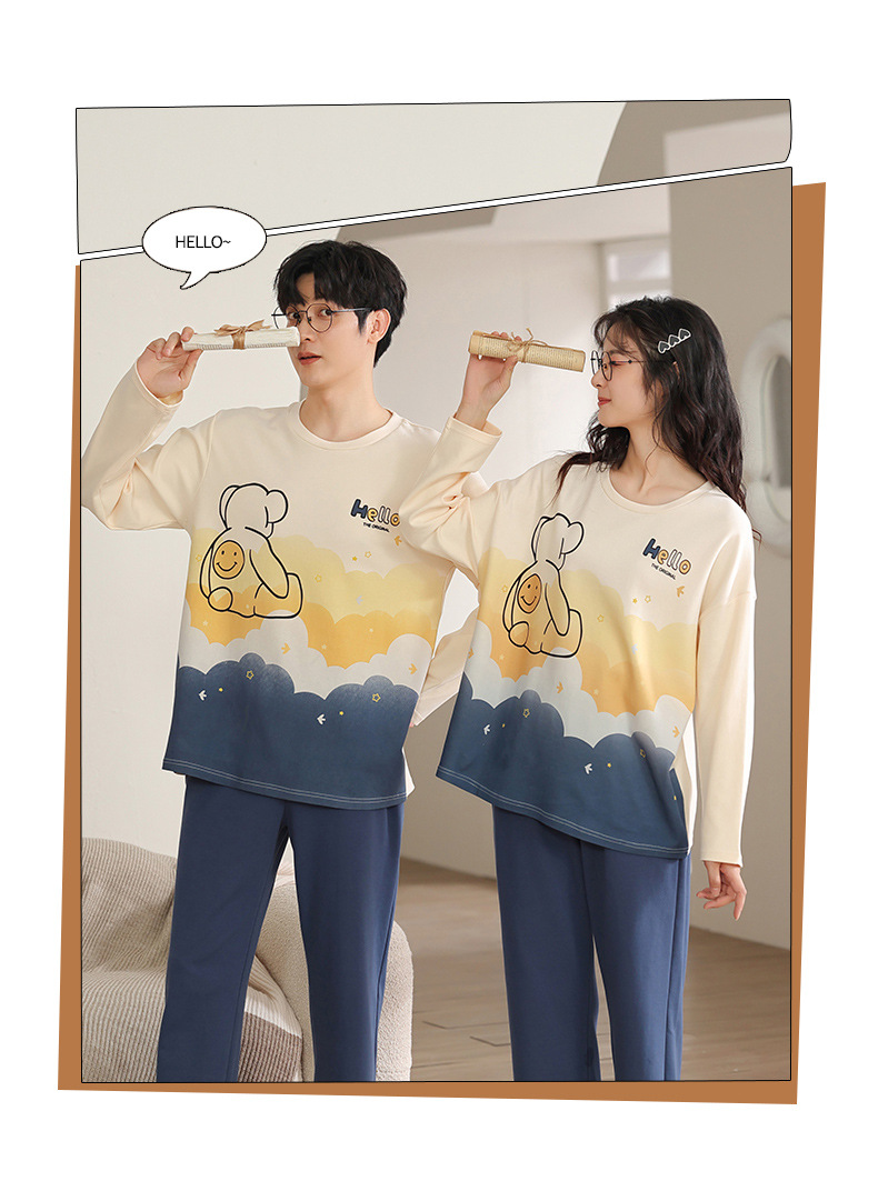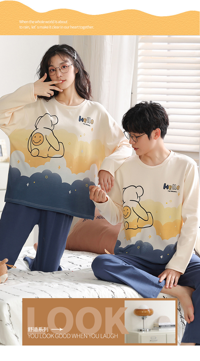 【100% 純綿】カップルパジャマ女性春と秋の綿100% 長袖セット男性ホームウェア可愛いアニメ