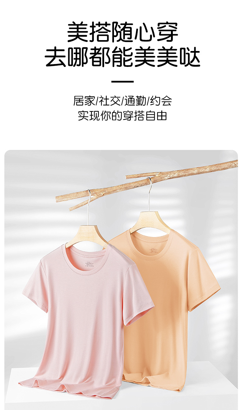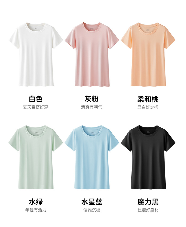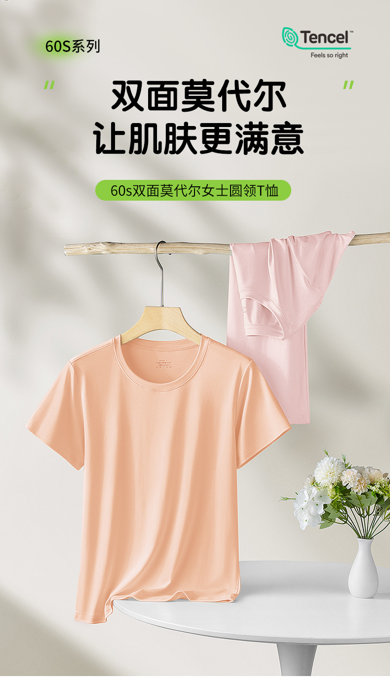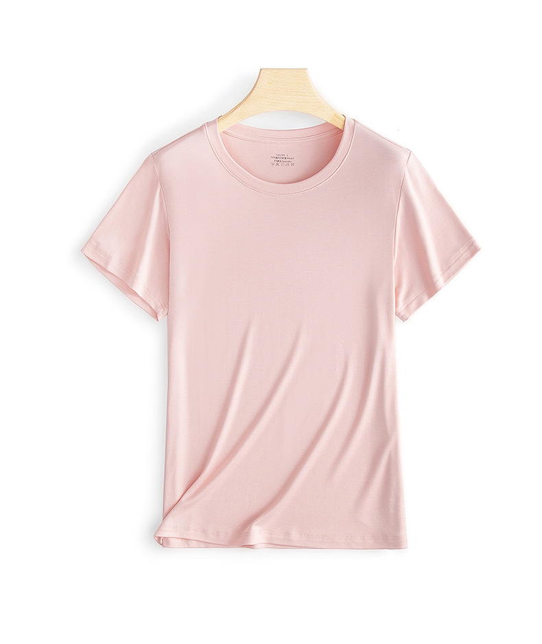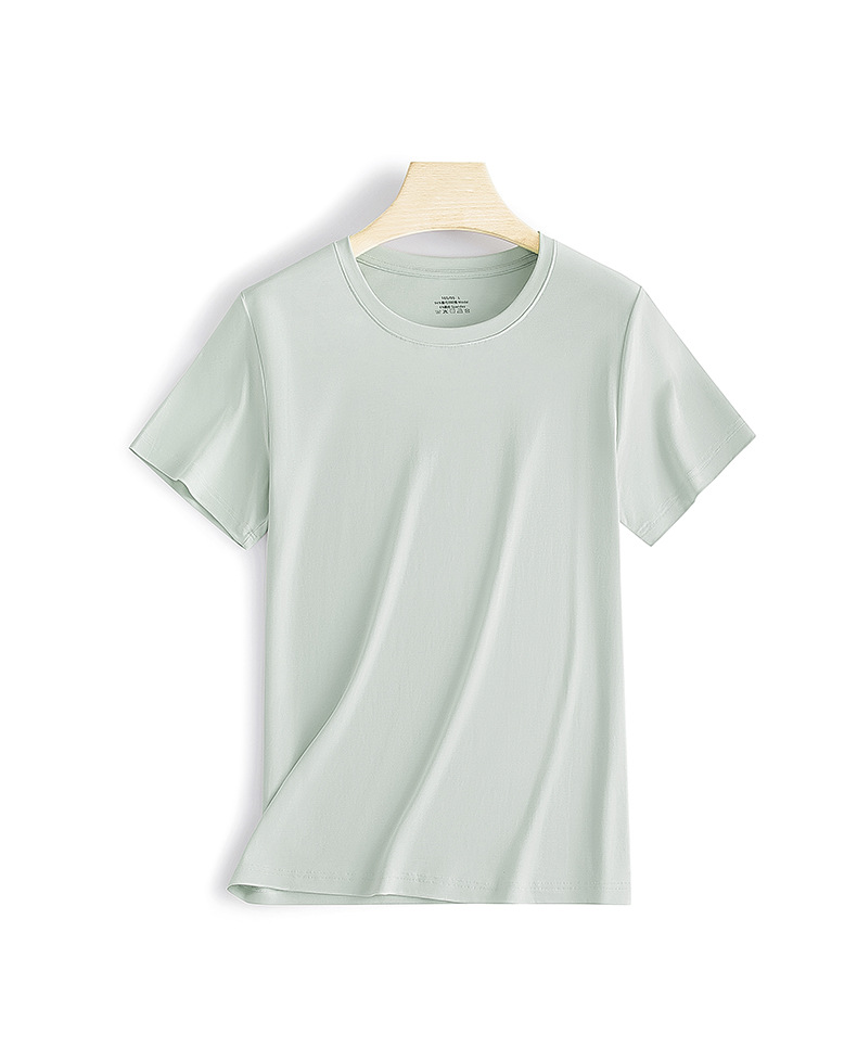 両面モダール素材 春夏 レディース ベーシックTシャツ 半袖 無地 丸首 お出かけにも使えるニットベースシャツ 薄手