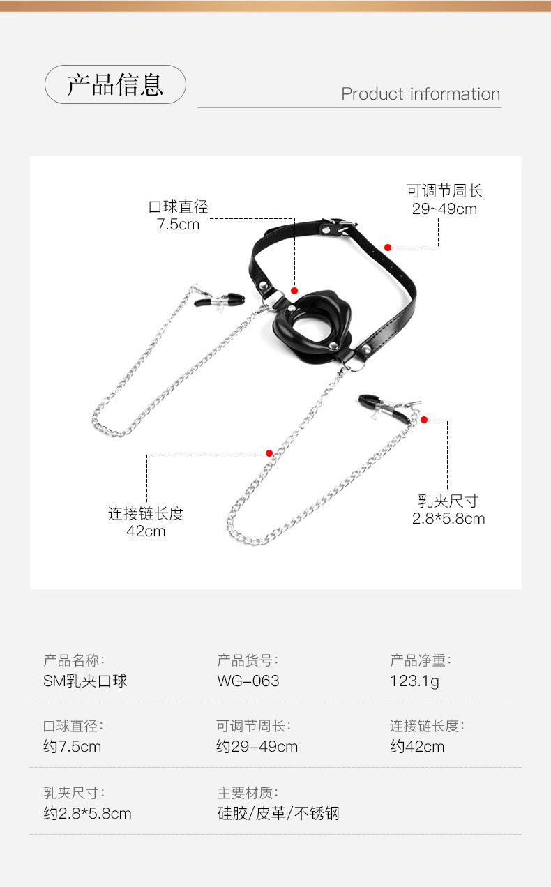 SM用シリコン製口球、口枷、乳首クリップ、女性用調教SM道具、女性用玩具、大人向け商品、一件代発