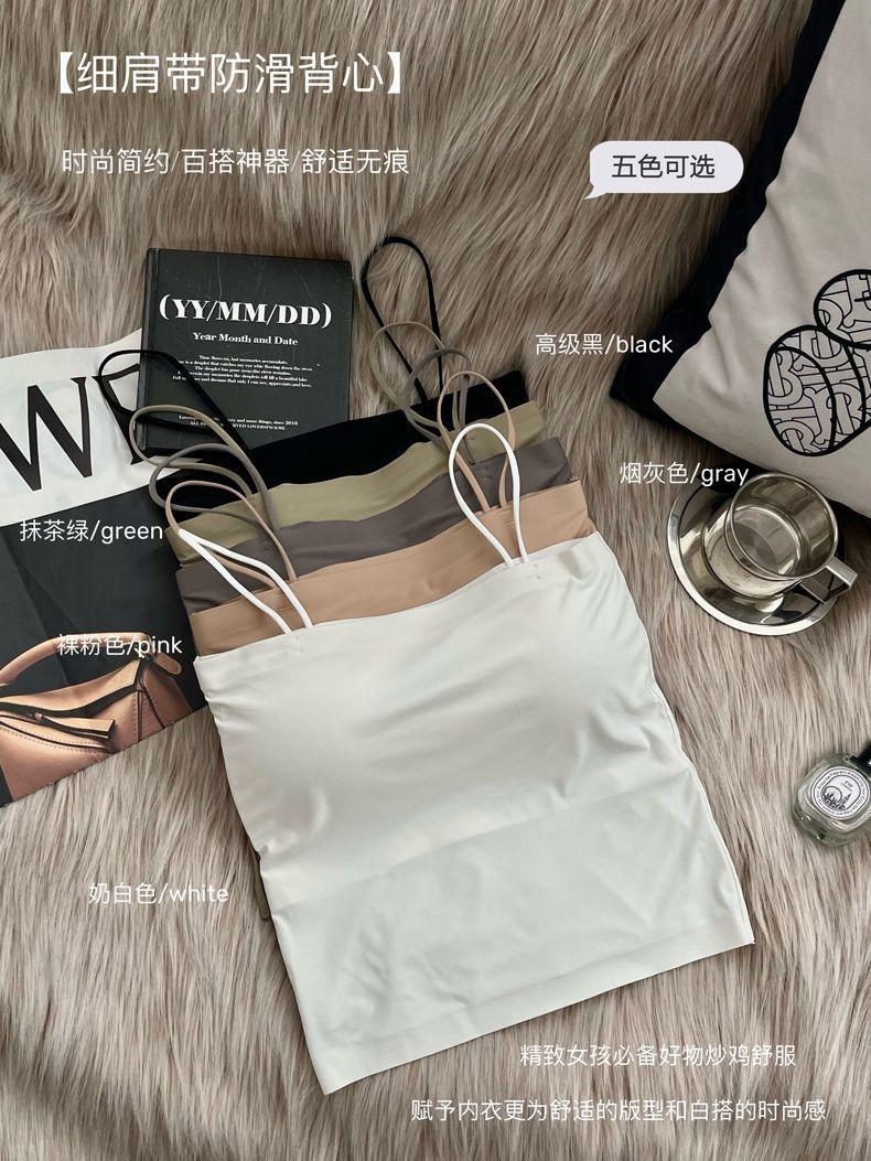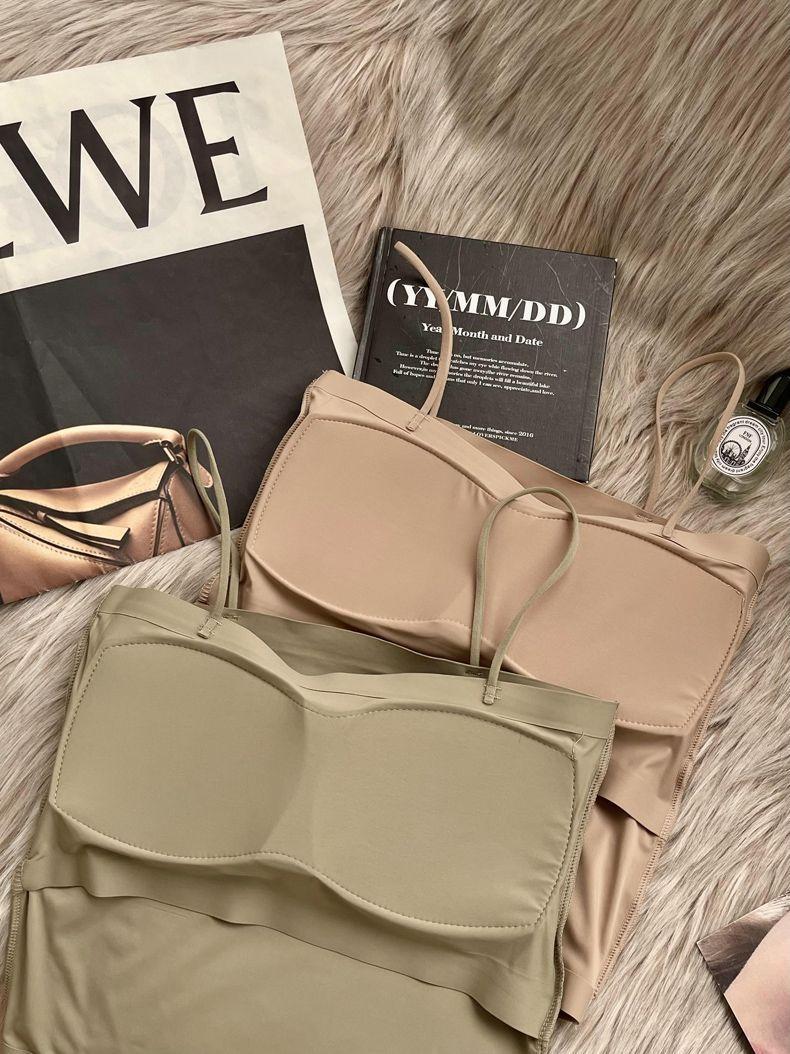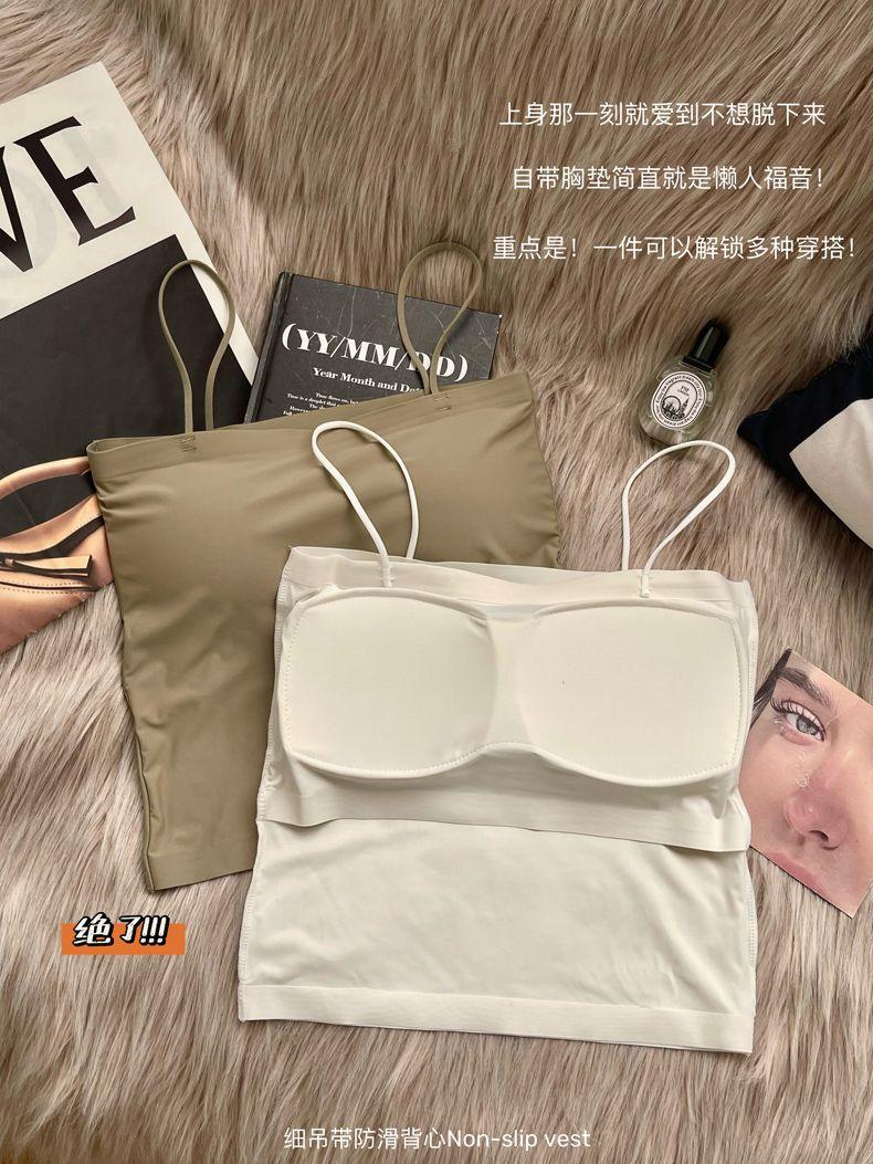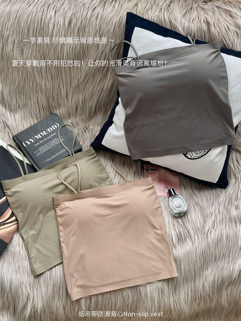 ストラップのアイスベストの固定カップの中に、跡のない上に胸パッド付きの下着を着ています。
