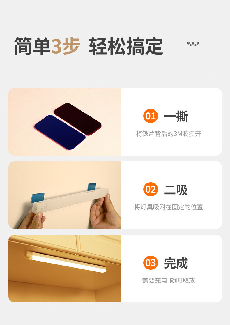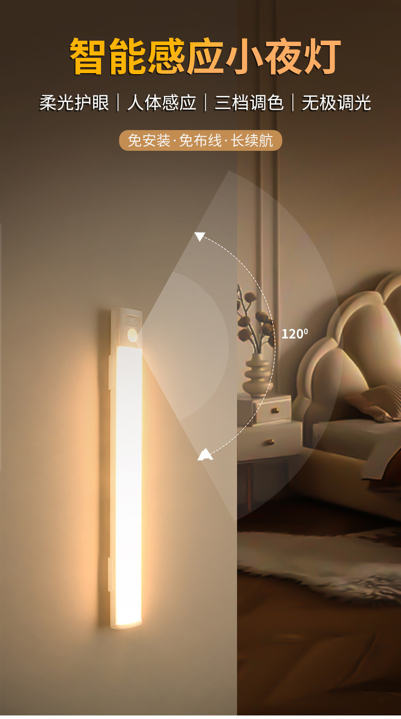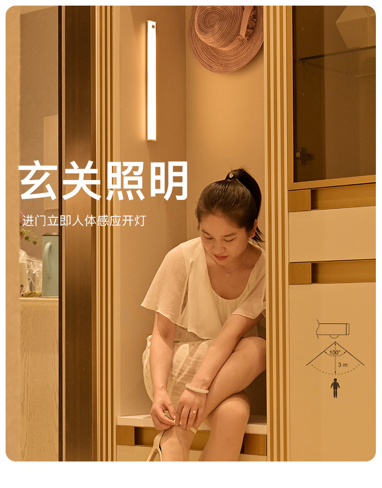 LED人体感応灯通路階段酒戸棚たんす灯充電長条知能無線磁気吸引小夜灯
