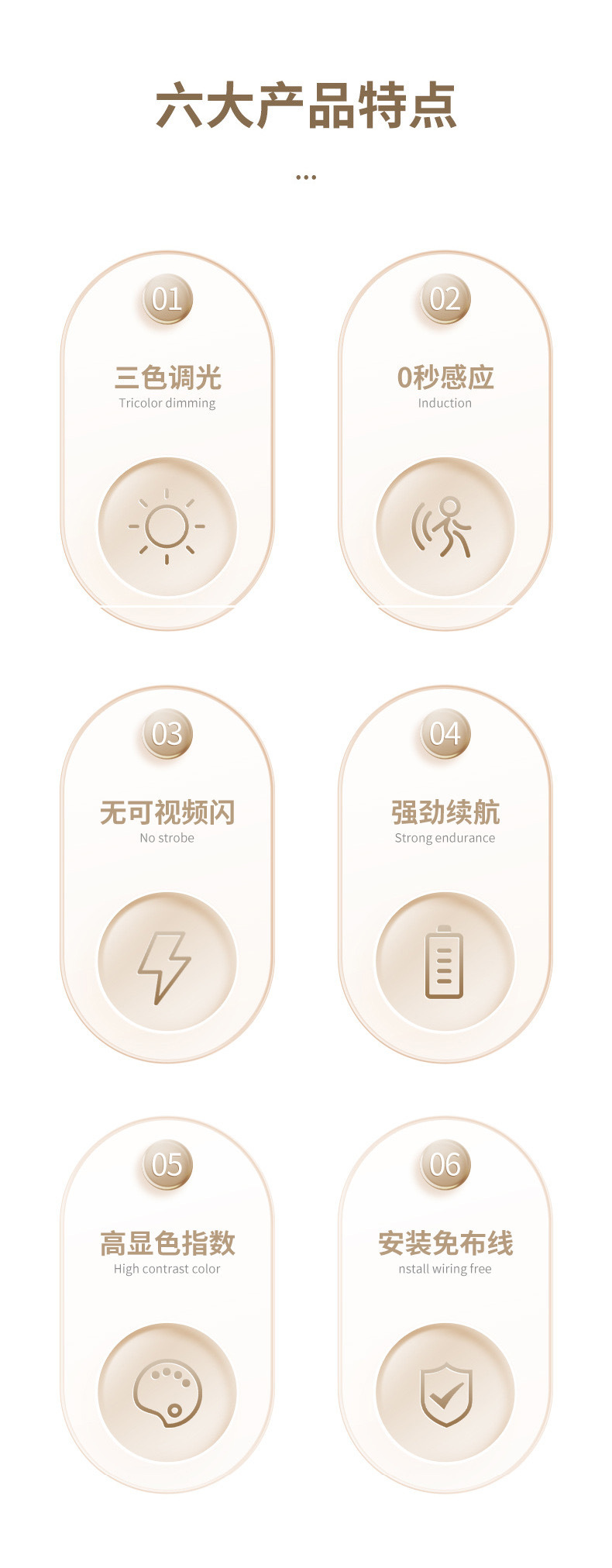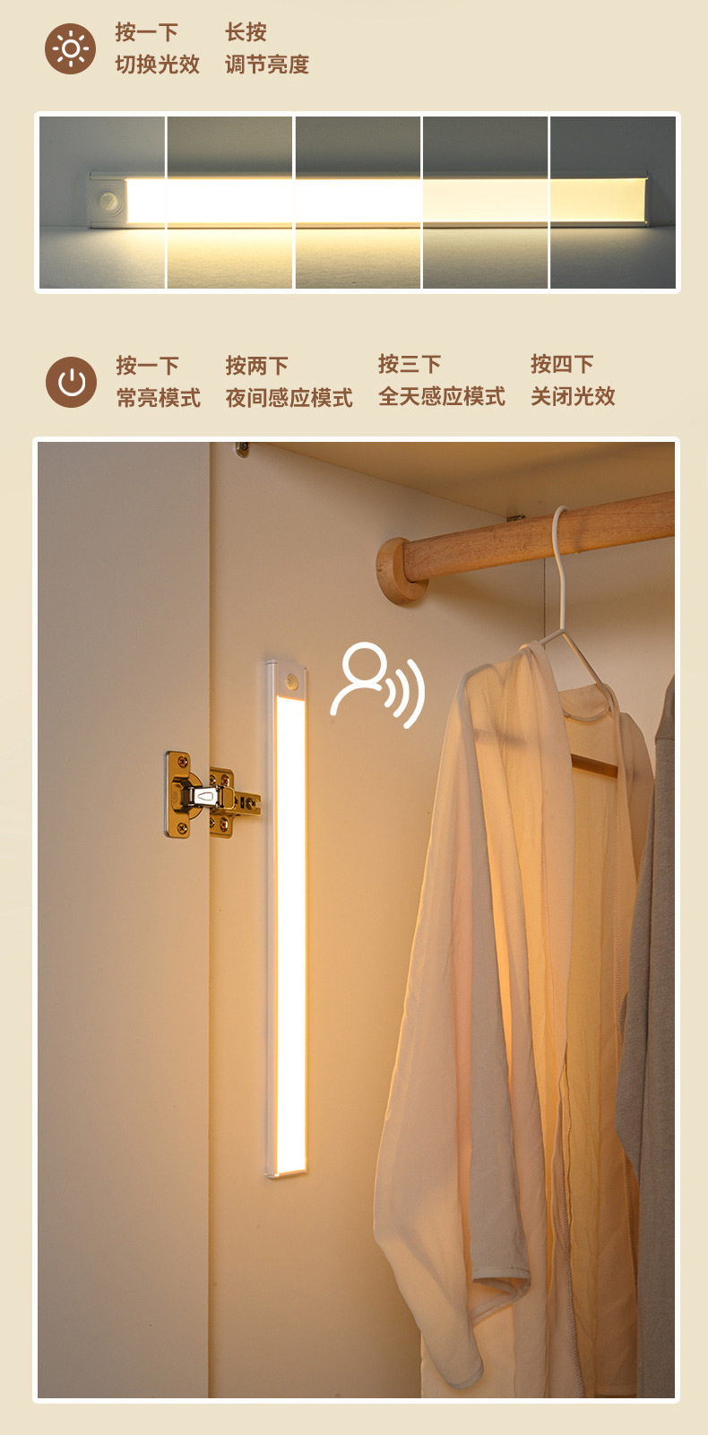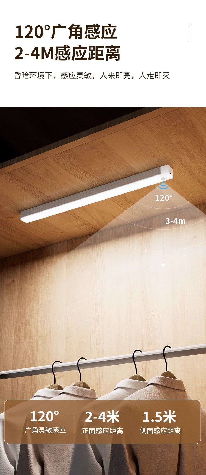 LED人体感応灯通路階段酒戸棚たんす灯充電長条知能無線磁気吸引小夜灯