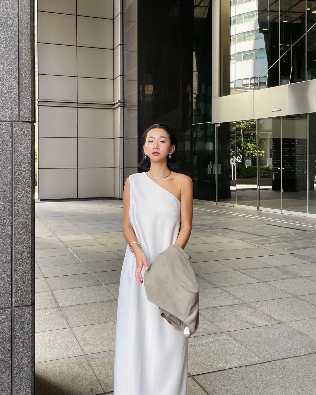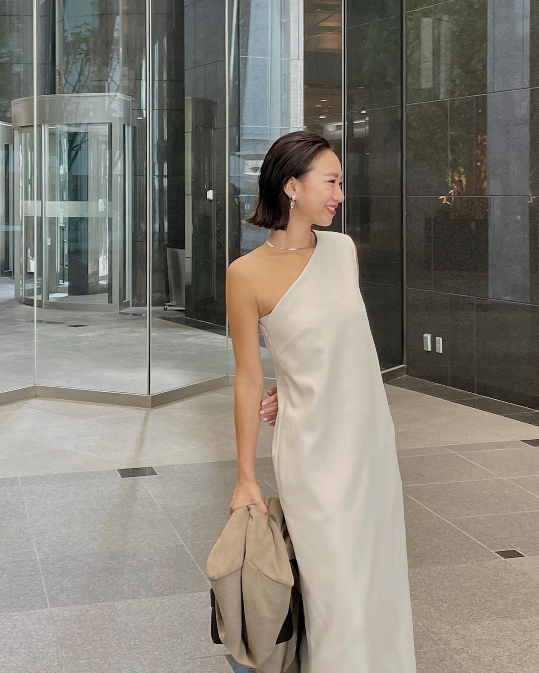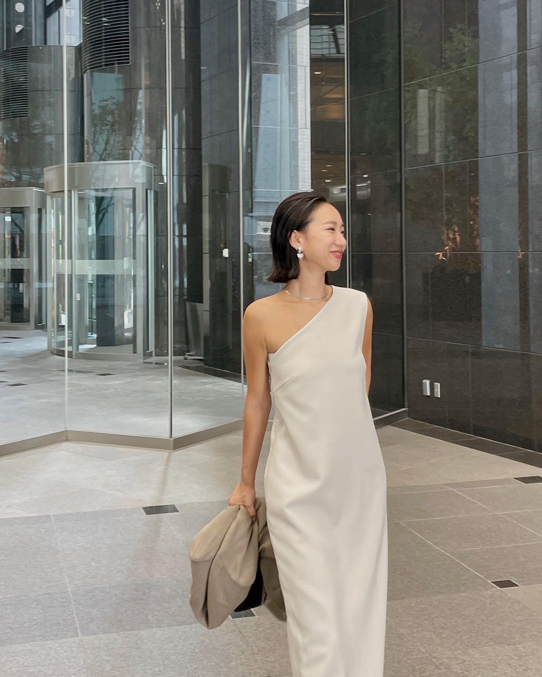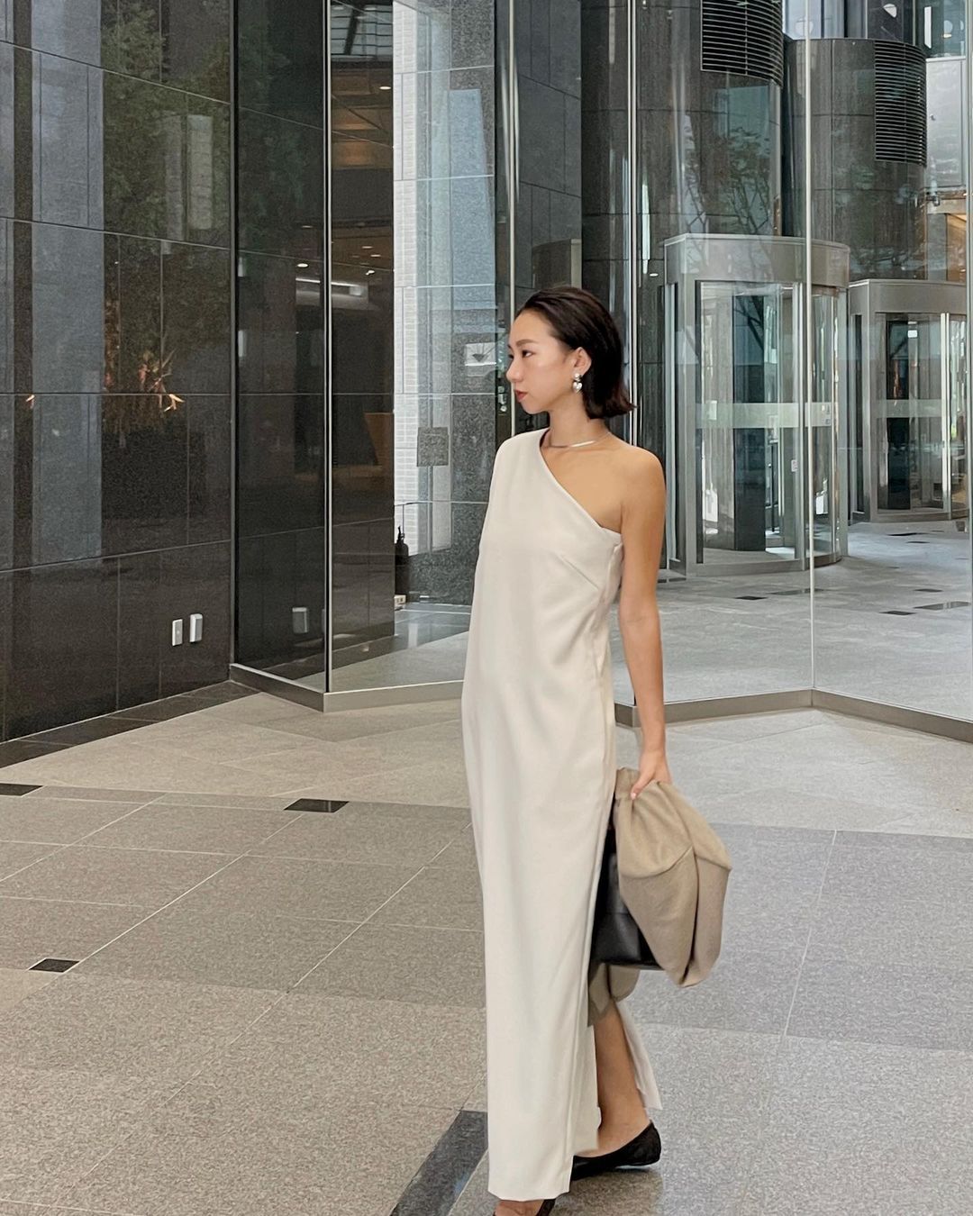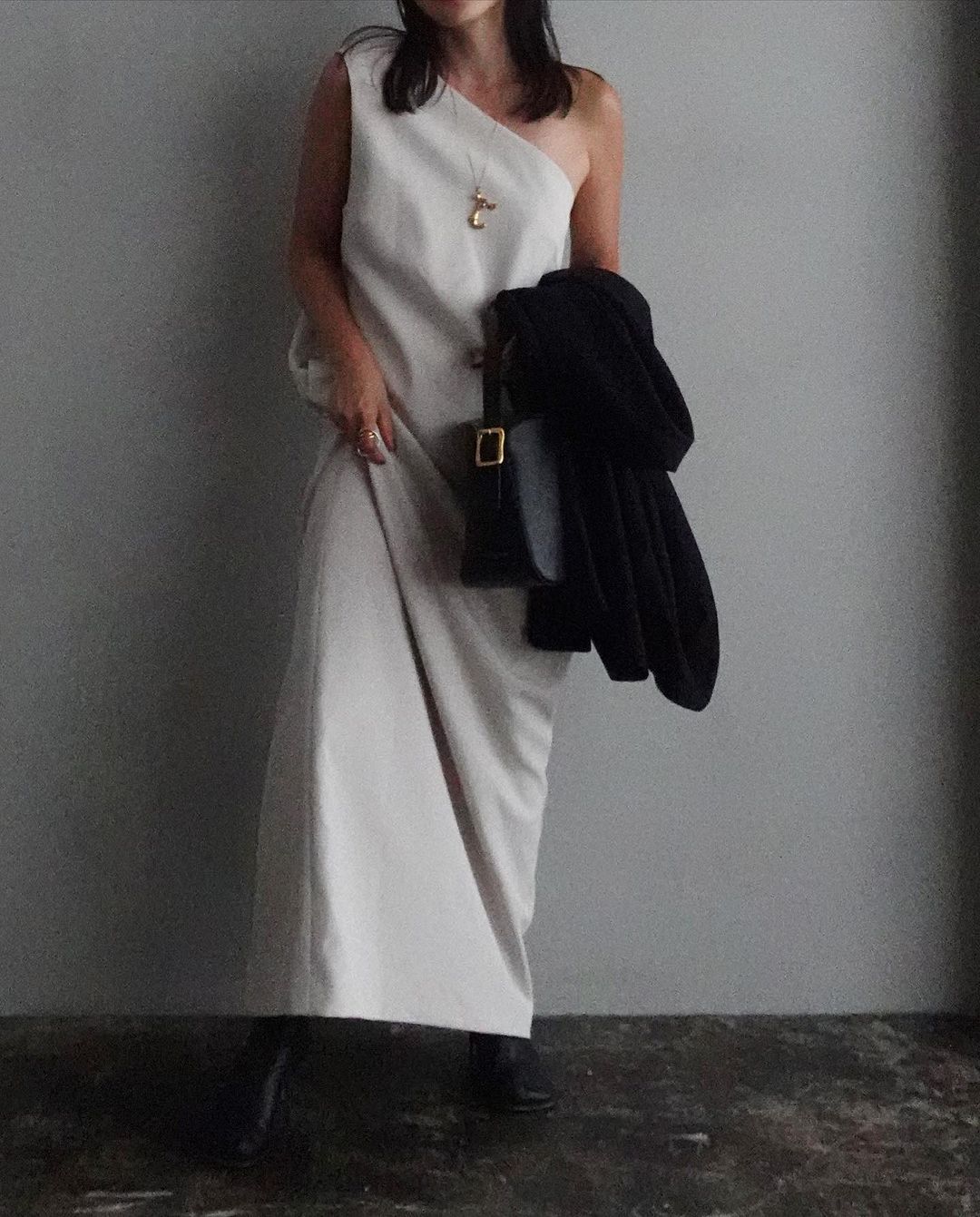 乾鶴春夏新作日系insブロガーのおしゃれなシングル肩のレトロなワンピースが痩せています。