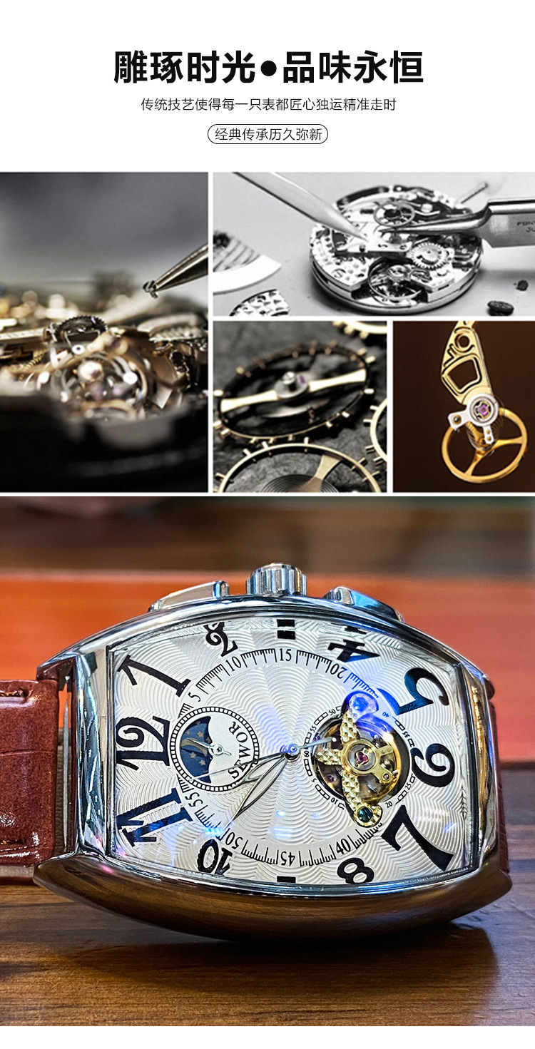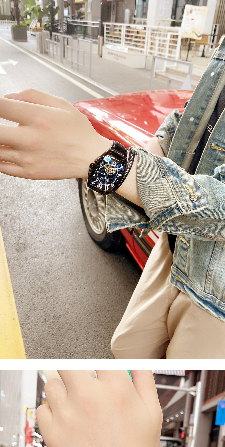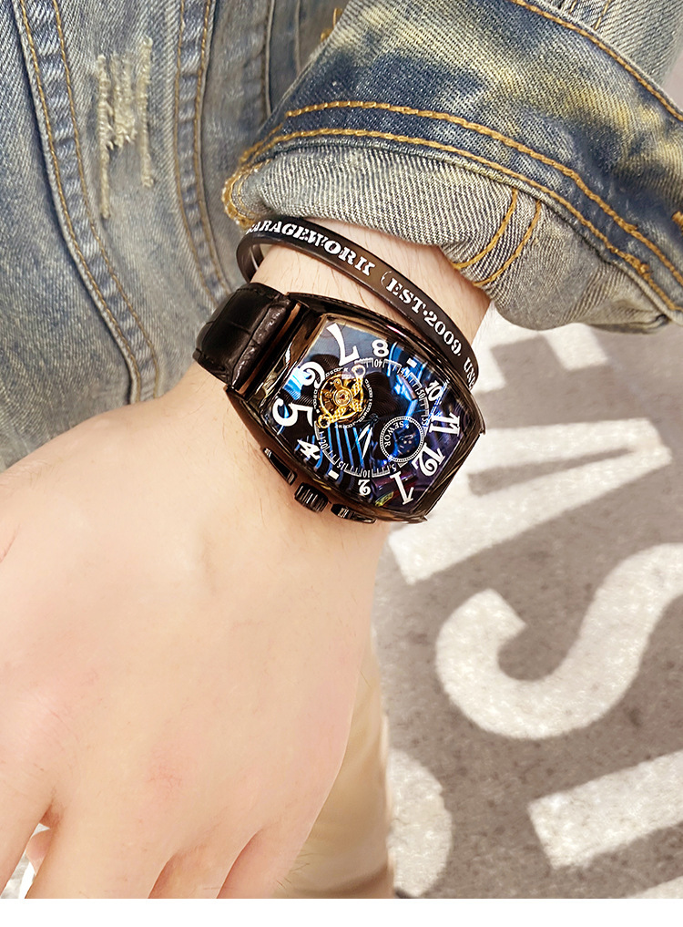 ワイン樽型全自動ホイール中空機械式時計メンズビジネスシンプルファッション多機能時計卸売