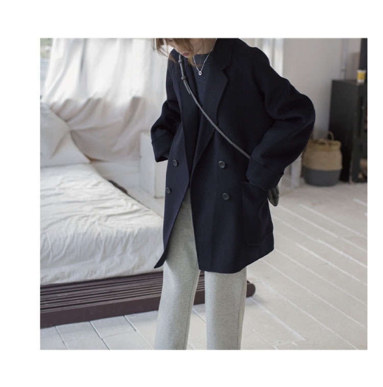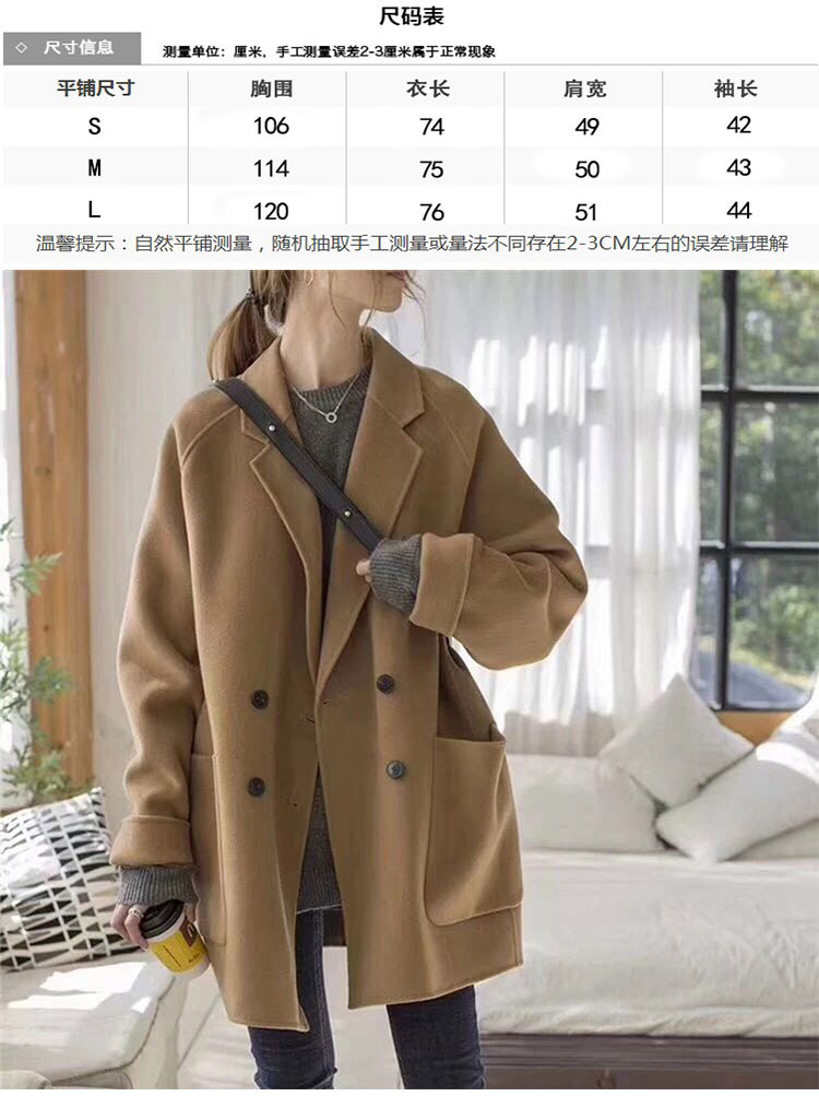 小柄な女性向け両面カシミヤコート、ミドル丈、2025年冬新作、上品で高級感のあるゆったりとしたウールコート