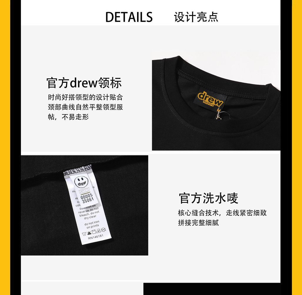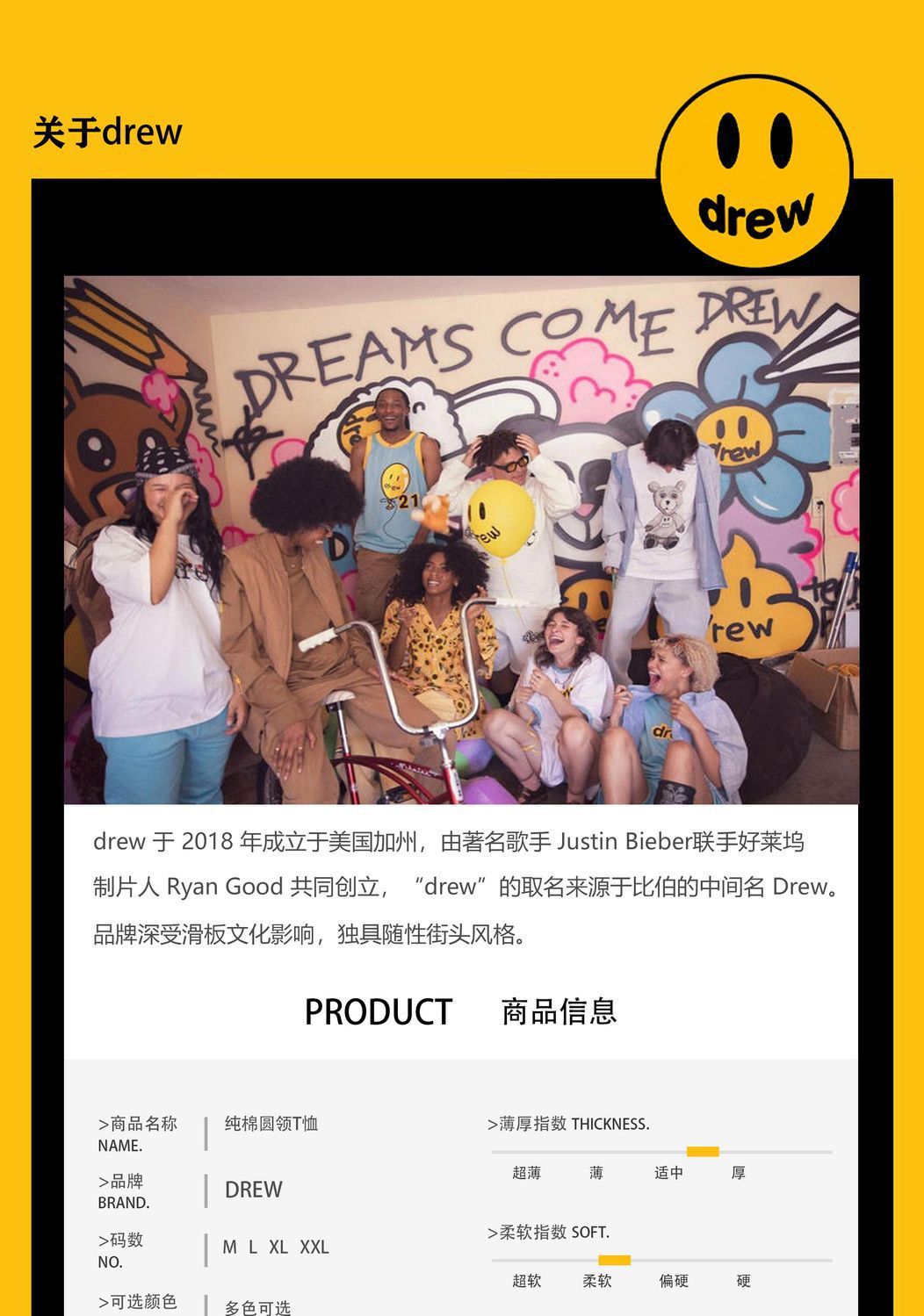 DREW重ポンド純綿半袖tシャツ女性アルファベット笑顔tシャツinsアメリカファッション男性高街カップル上着