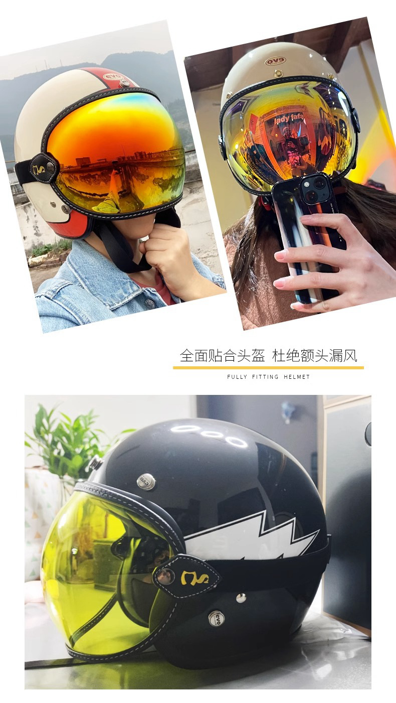 ヘルメット泡鏡日焼け止めヘルメット汎用レンズ全ヘルメット3/4レトロ耐衝撃防風砂ストラップゴーグル