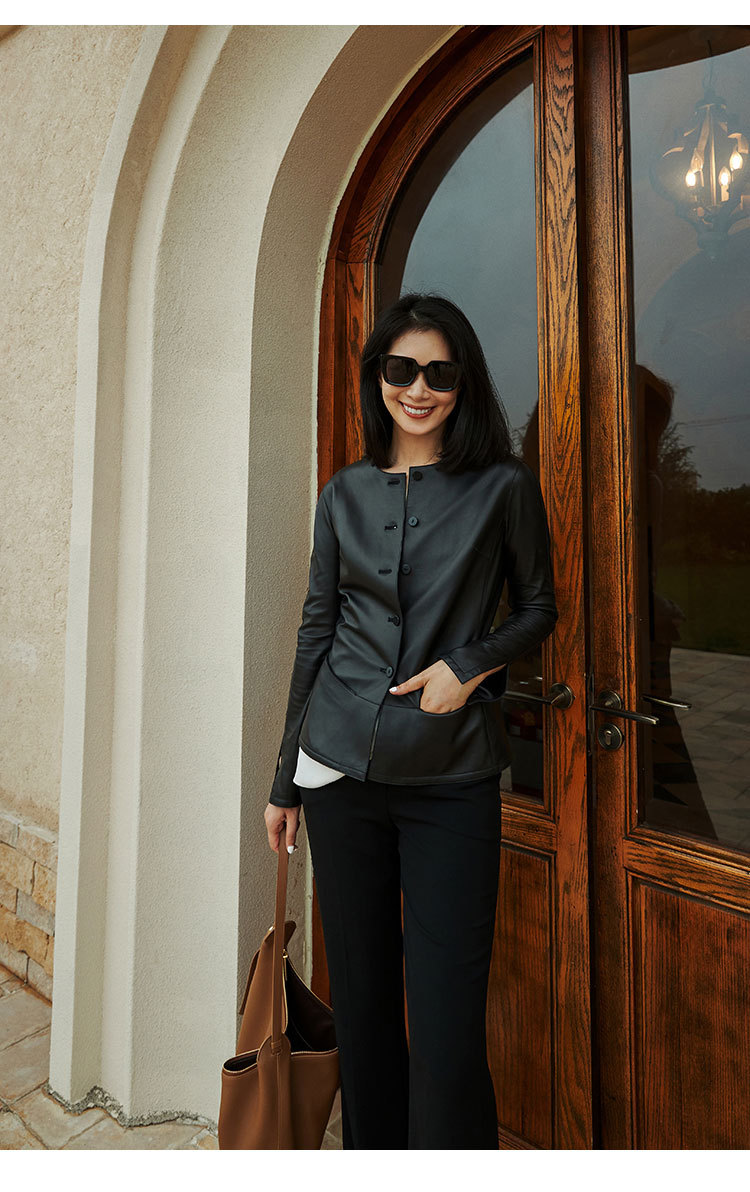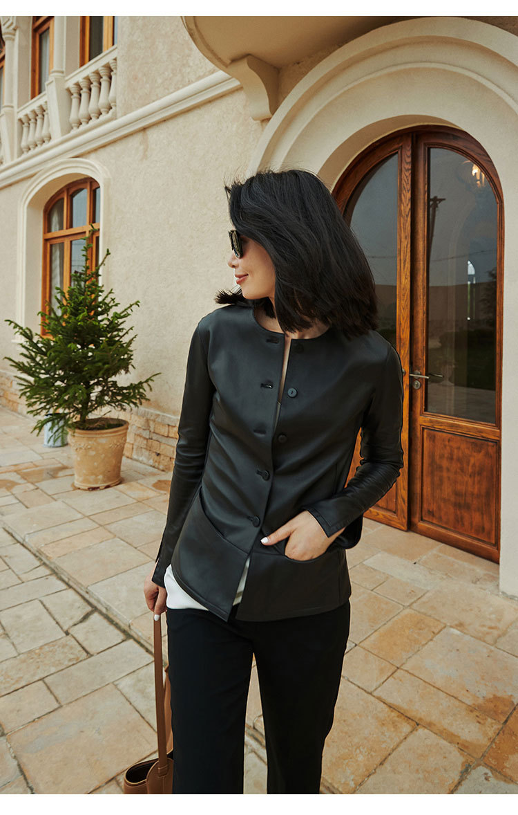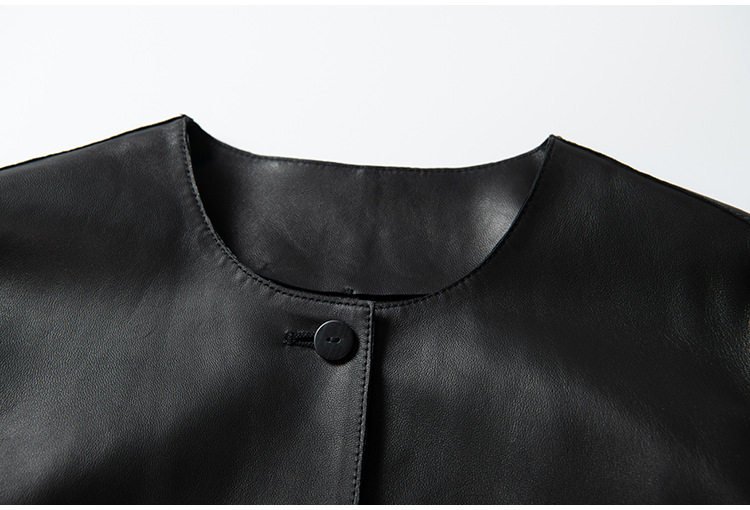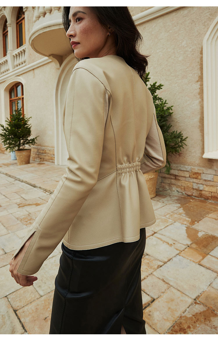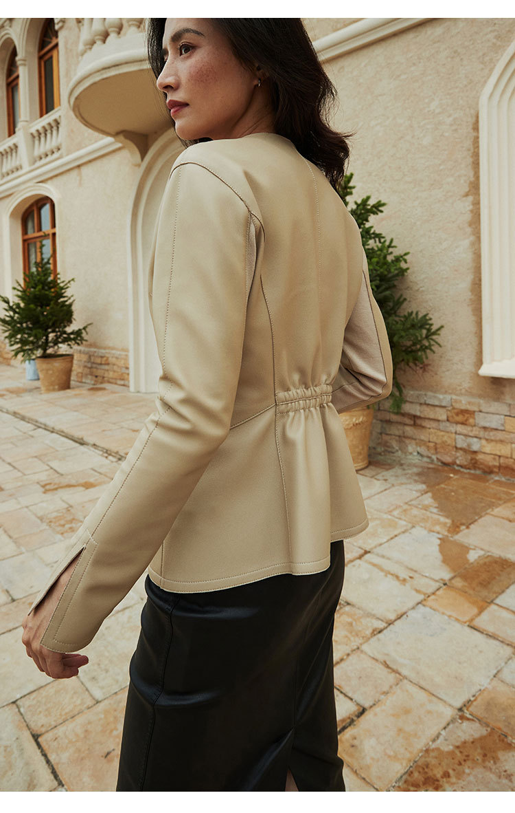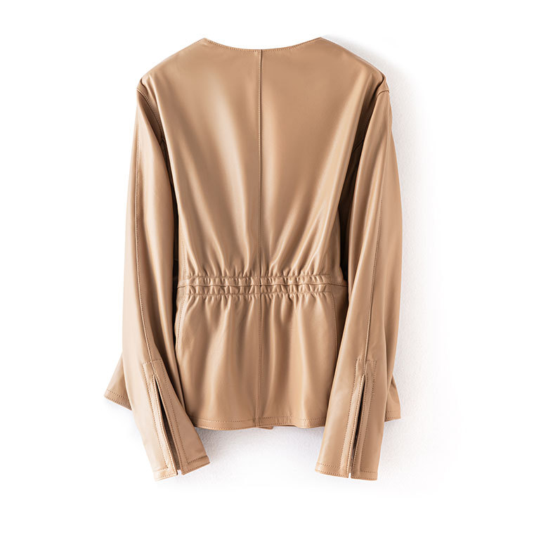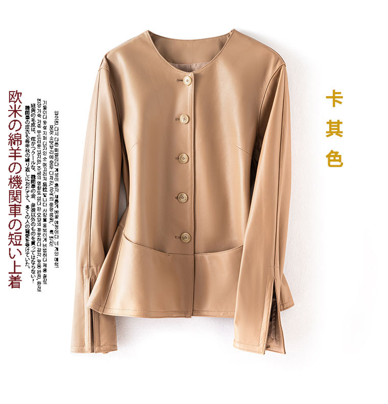 「多面優雅」シリーズの輸入綿羊皮洋気丸襟ウエストジャケットの本革皮服女性ショートタイプ