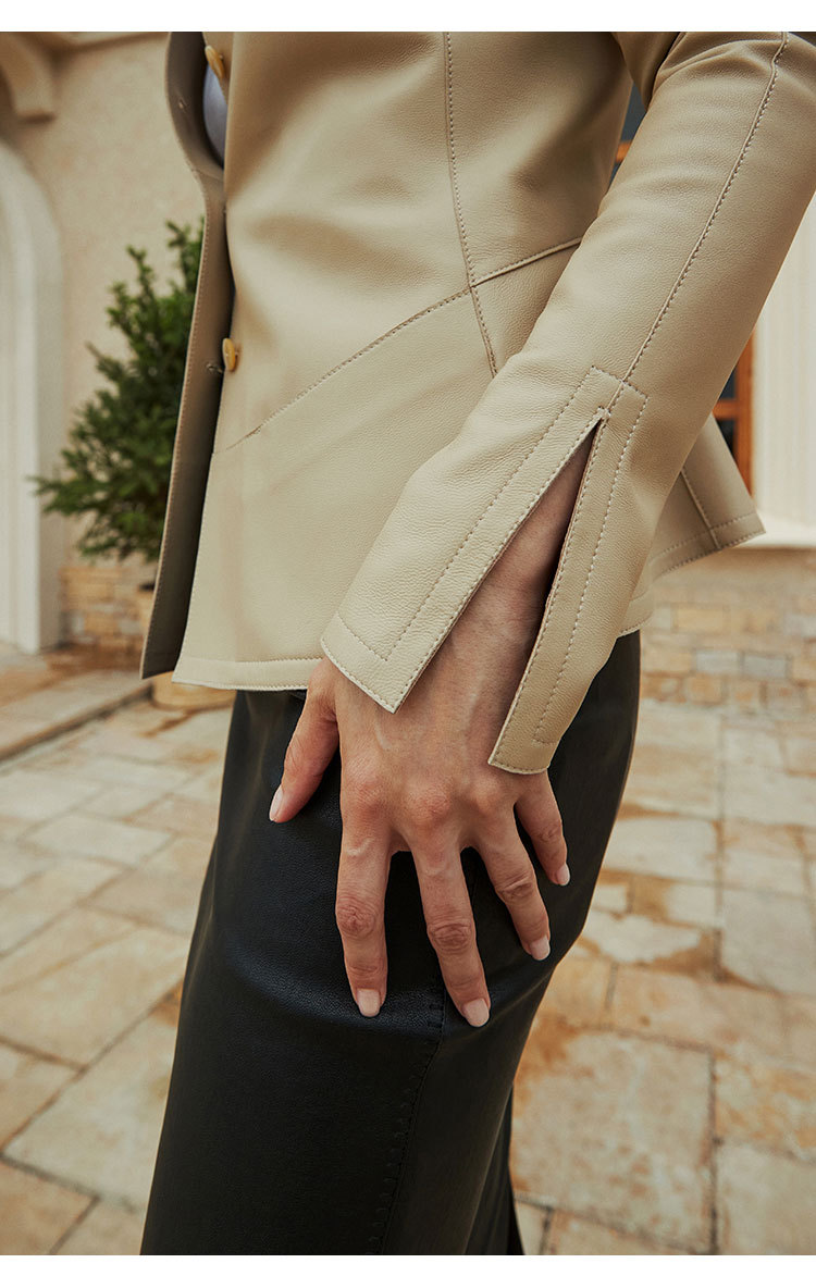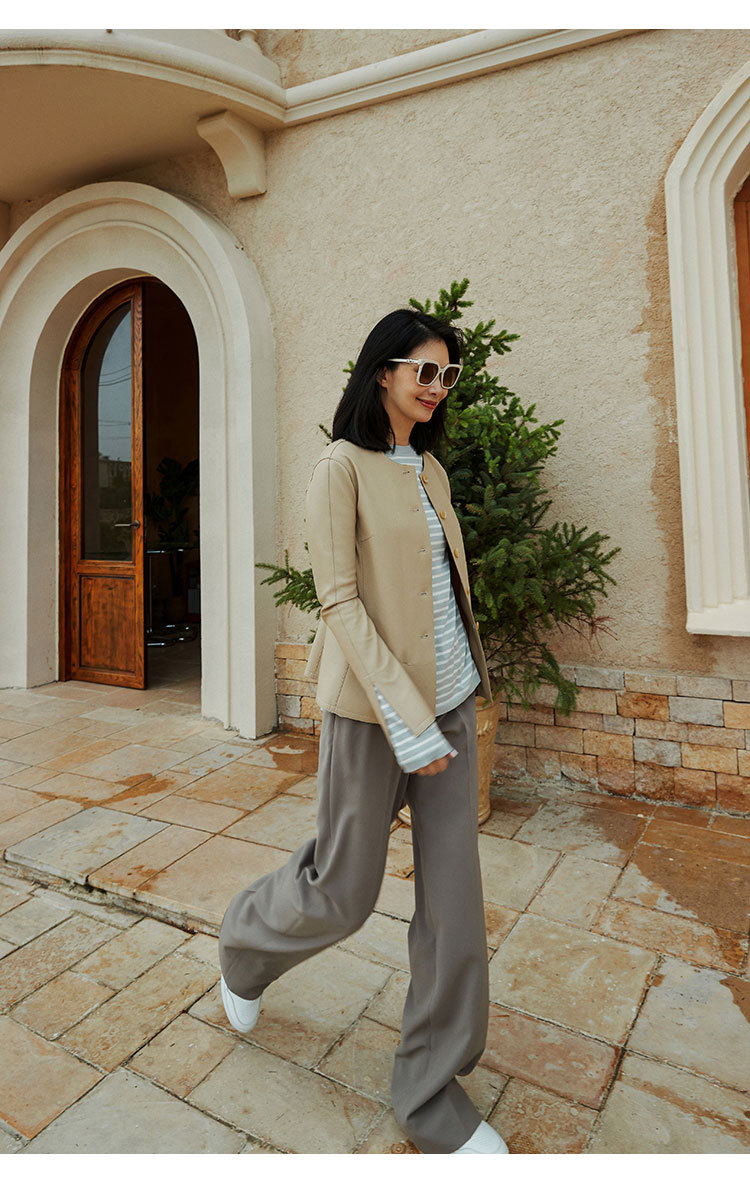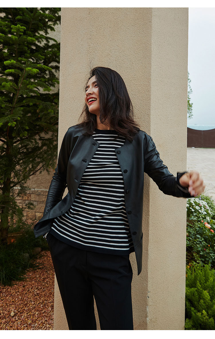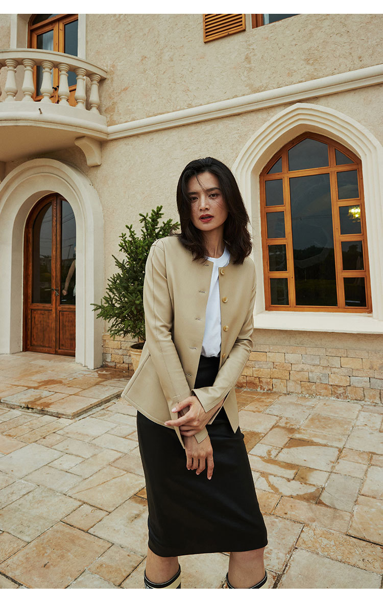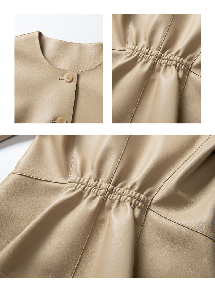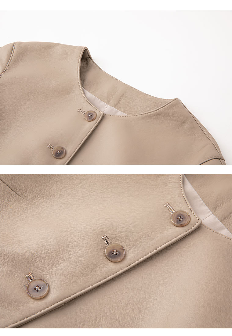 「多面優雅」シリーズの輸入綿羊皮洋気丸襟ウエストジャケットの本革皮服女性ショートタイプ