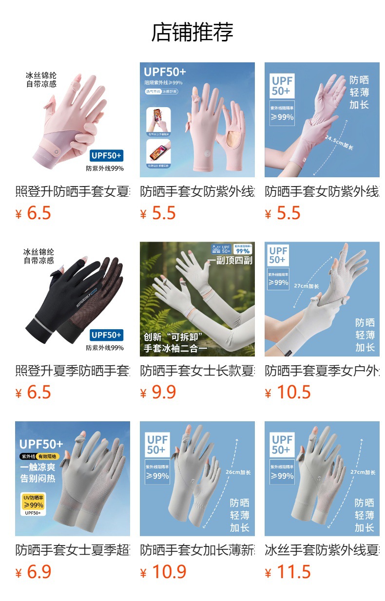 夏の日焼け止め袖カバー女性の長い薄い腕の屋外での紫外線防止アイス袖カバータッチパネル日焼け止め手袋