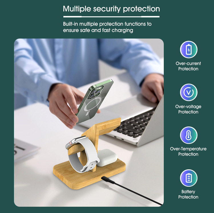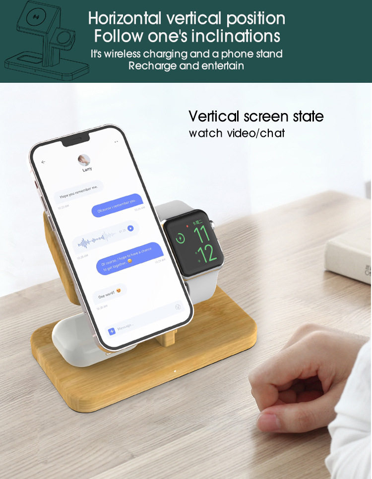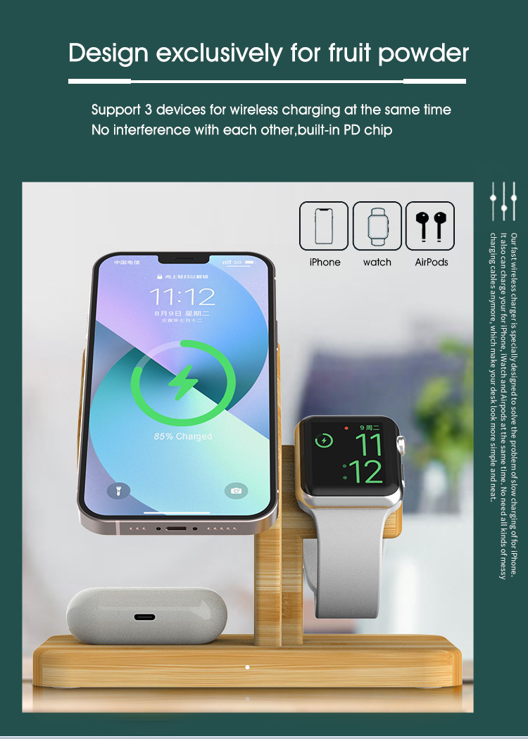 品名:竹子三合一多功能桌面支架磁吸无线充