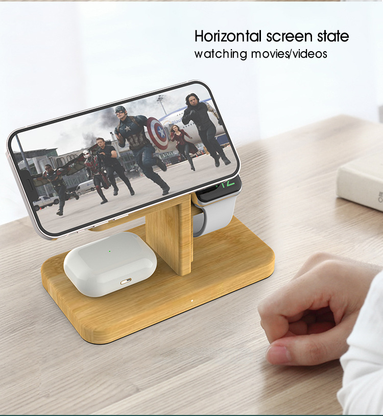 竹スリーインワンワイヤレス充電携帯電話ホルダー多機能磁気ワイヤレス充電器 Apple Watch 充電に適しています