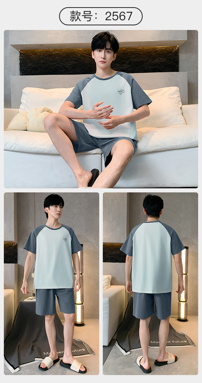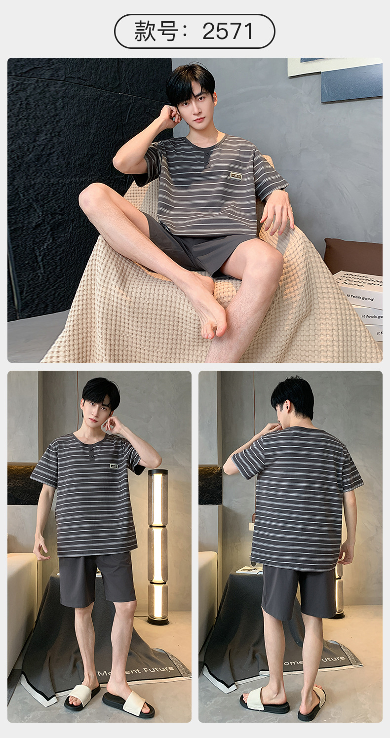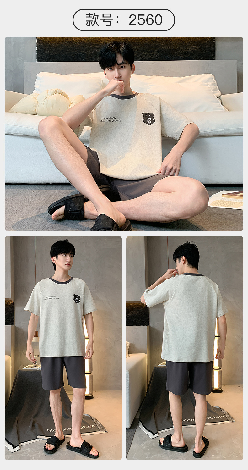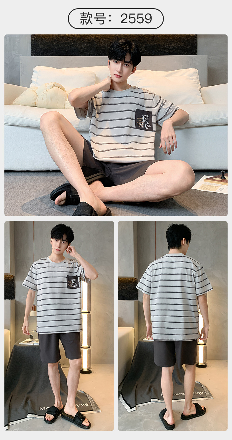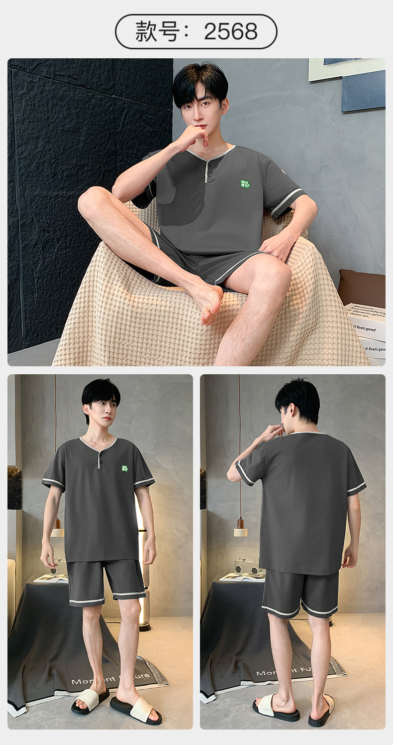 100% 純綿パジャマ男性半袖夏の薄いタイプの青少年カジュアルでゆったりした綿100% の家庭服セット