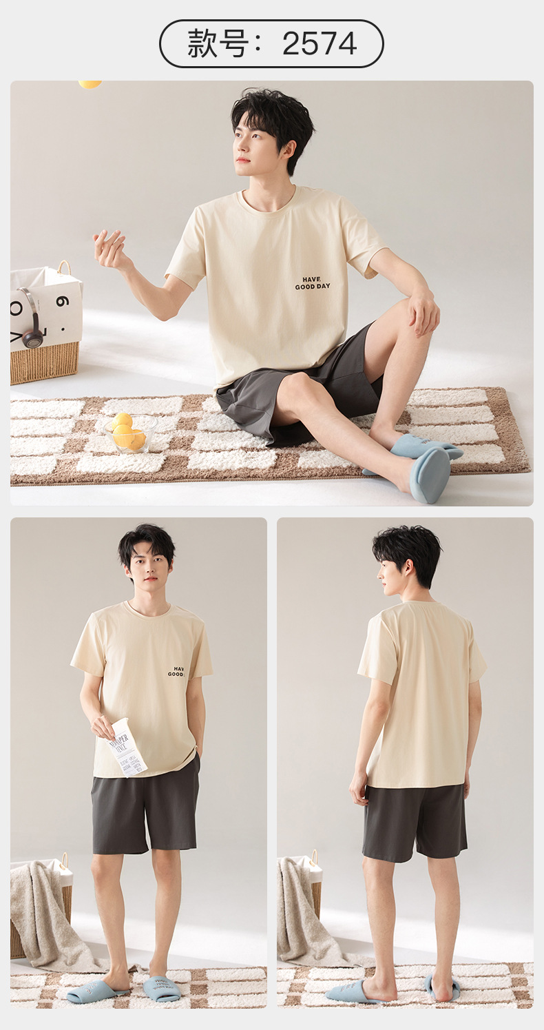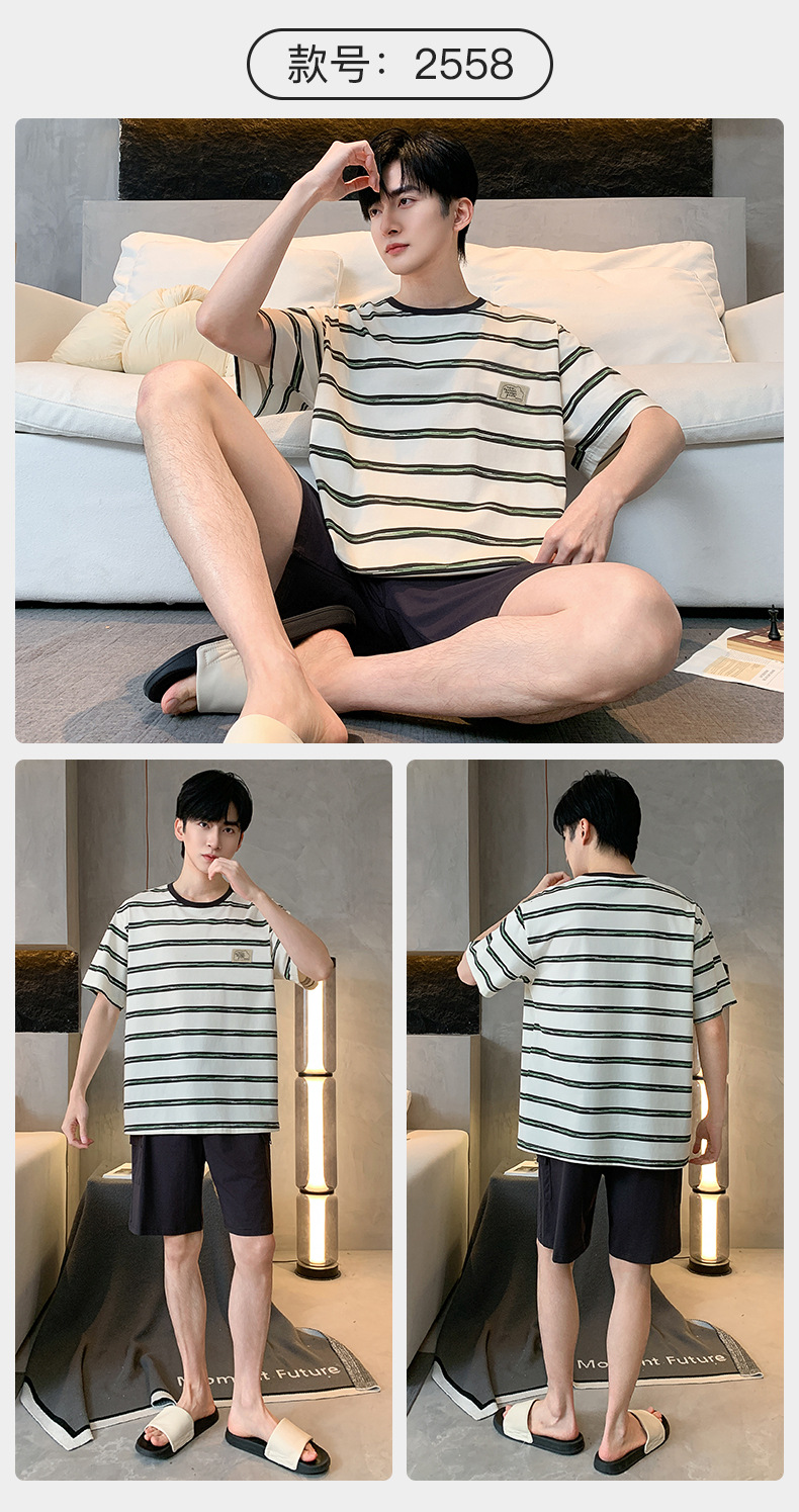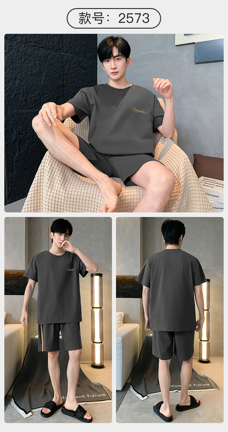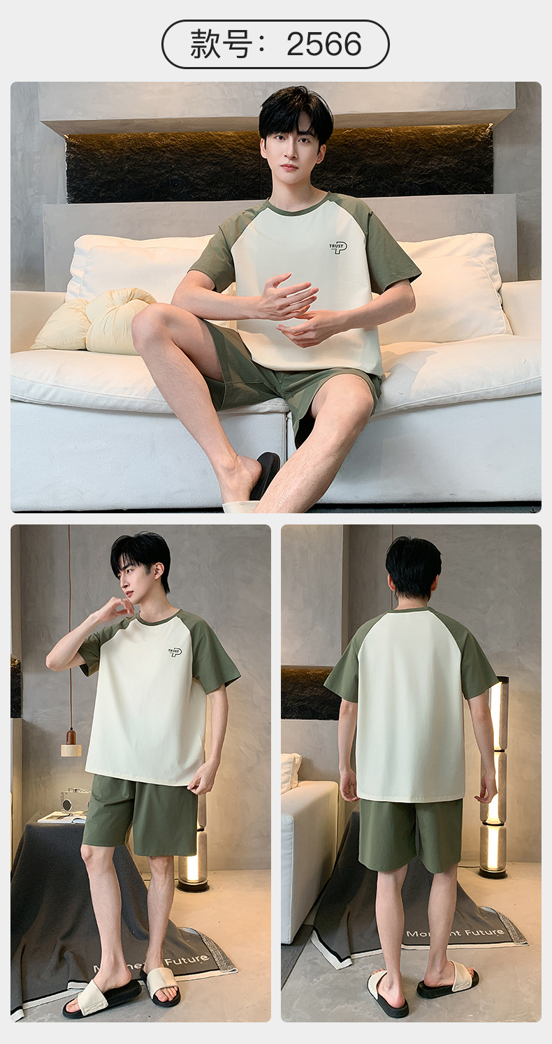 100% 純綿パジャマ男性半袖夏の薄いタイプの青少年カジュアルでゆったりした綿100% の家庭服セット