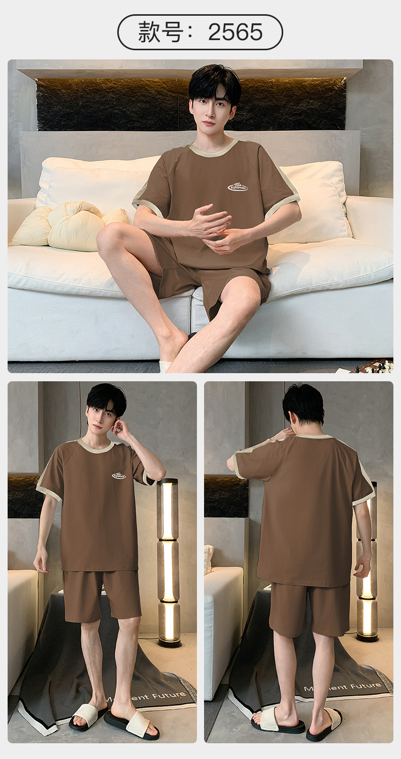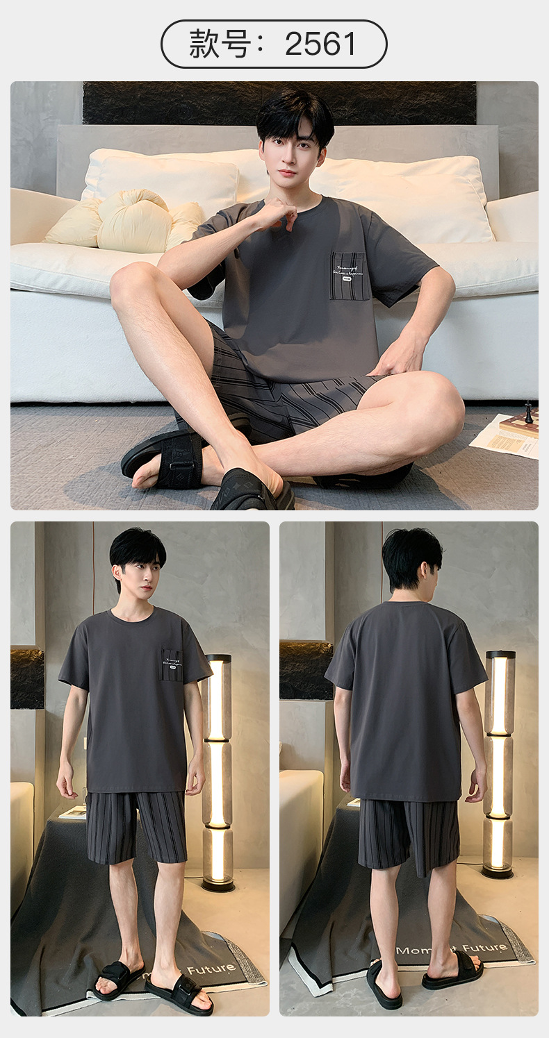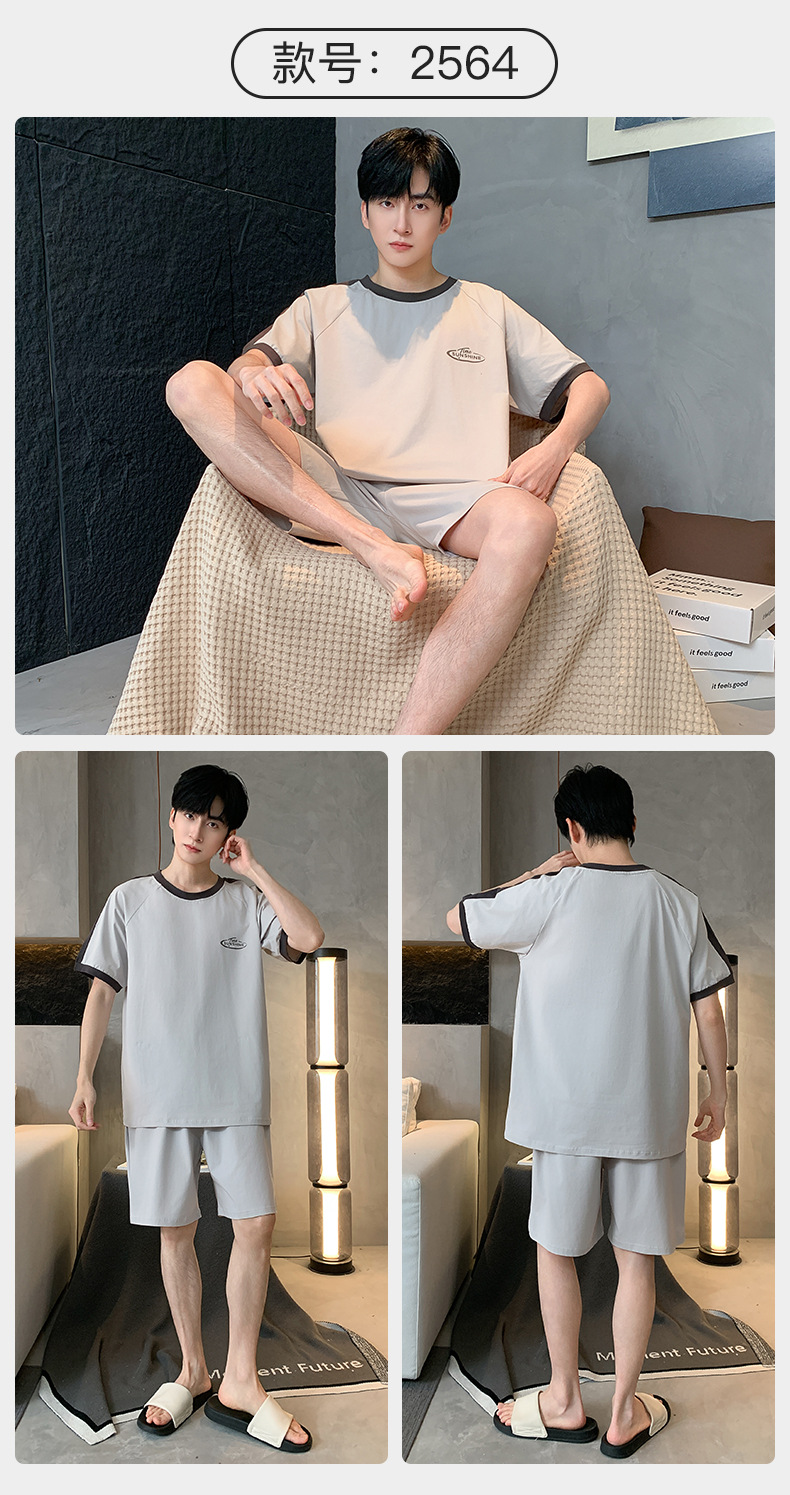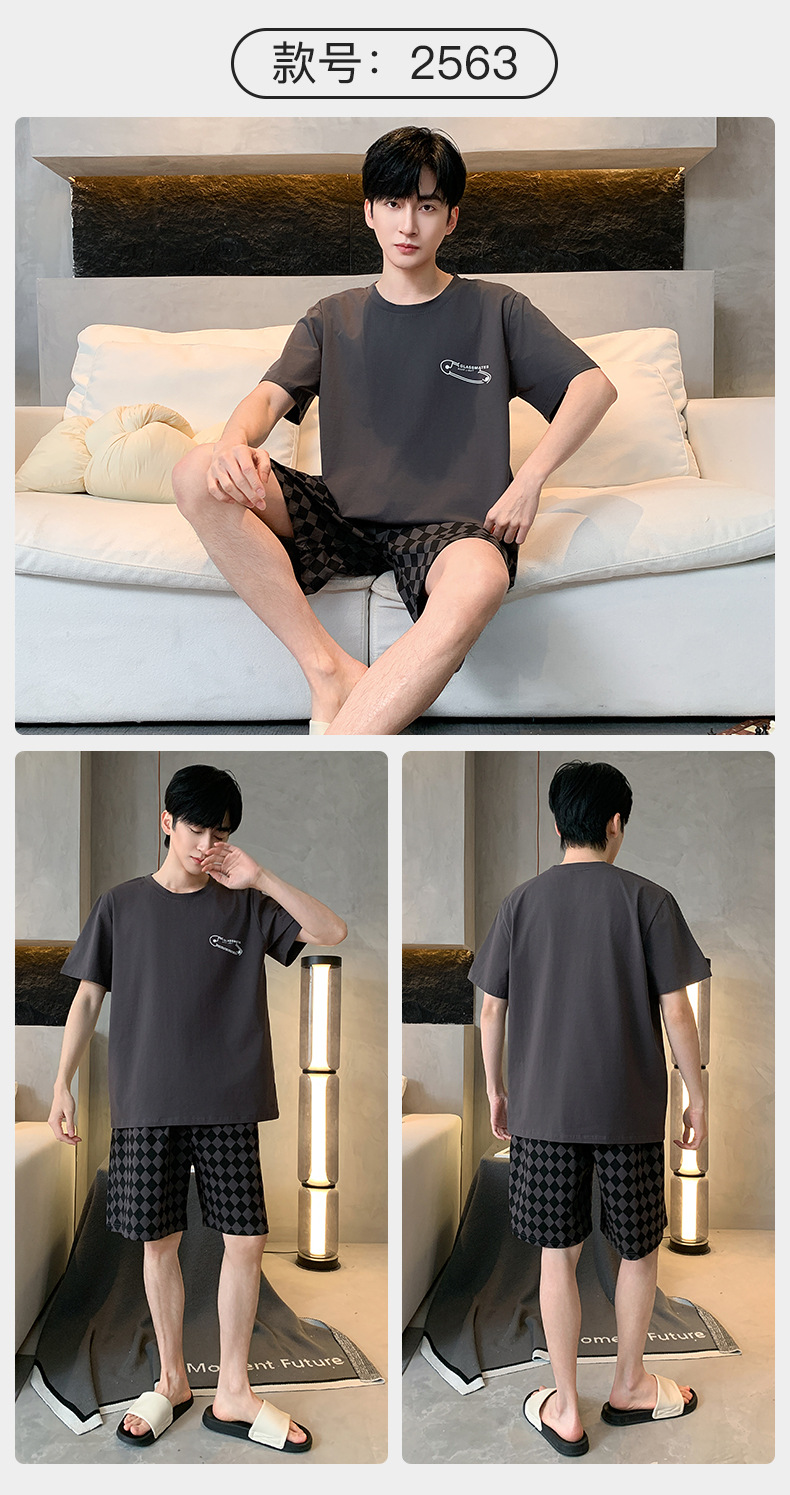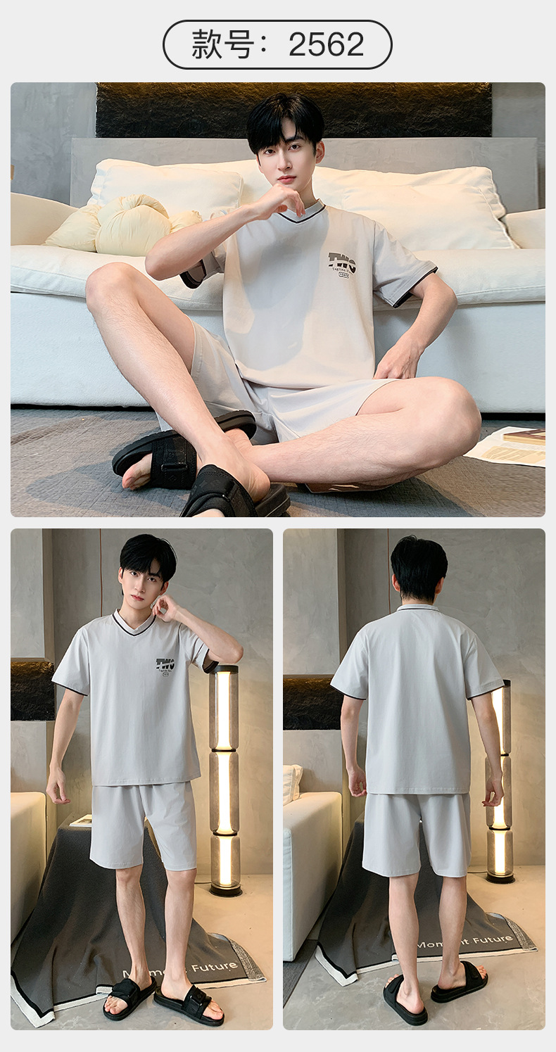 100% 純綿パジャマ男性半袖夏の薄いタイプの青少年カジュアルでゆったりした綿100% の家庭服セット
