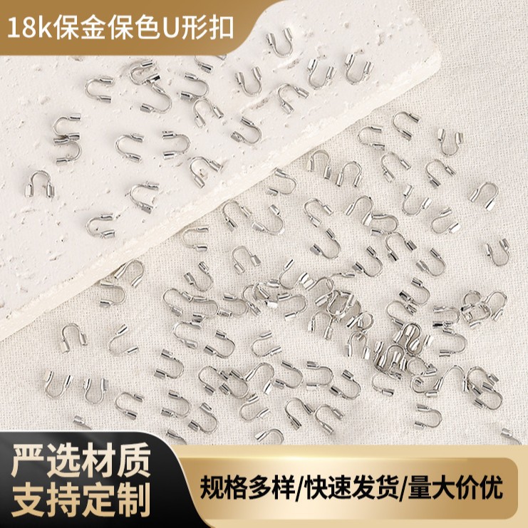 Diyネックレスブレスレット18k保金保色U字型ボタン締め銅メッキ真金馬蹄ボタンU字型保護器ビーズ