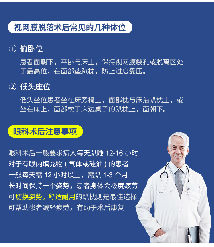 【メーカー直売】眼科専用の腹ばい枕の網膜術後の腹ばい枕のネットはガラスを切って腹臥位を切って寝ます。