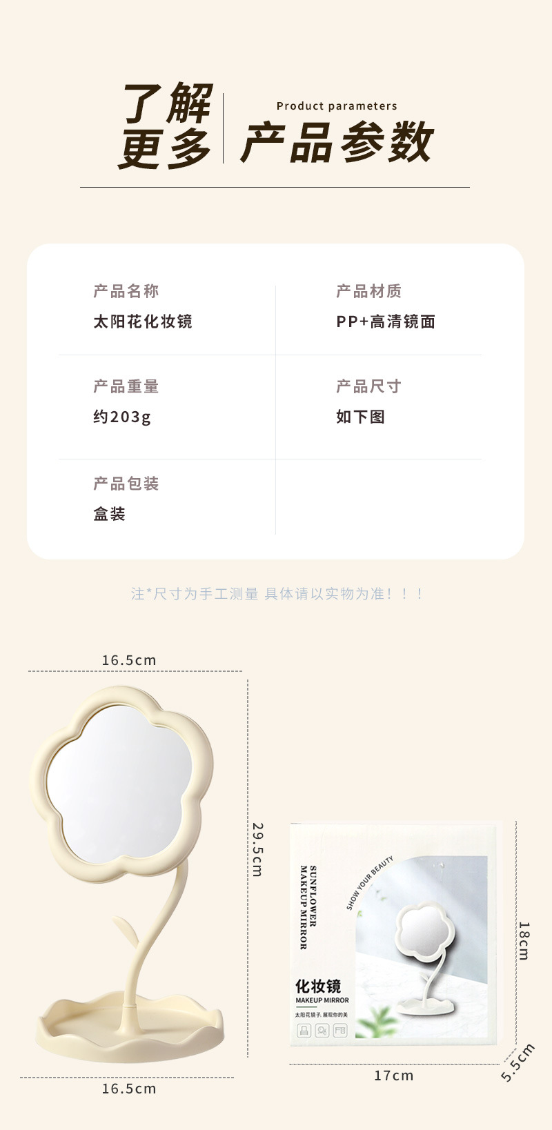 太陽の花のデスクトップの化粧鏡の寮の回転できる置物のデスクトップのプラスチックのかわいい化粧鏡の学生の高清の鏡