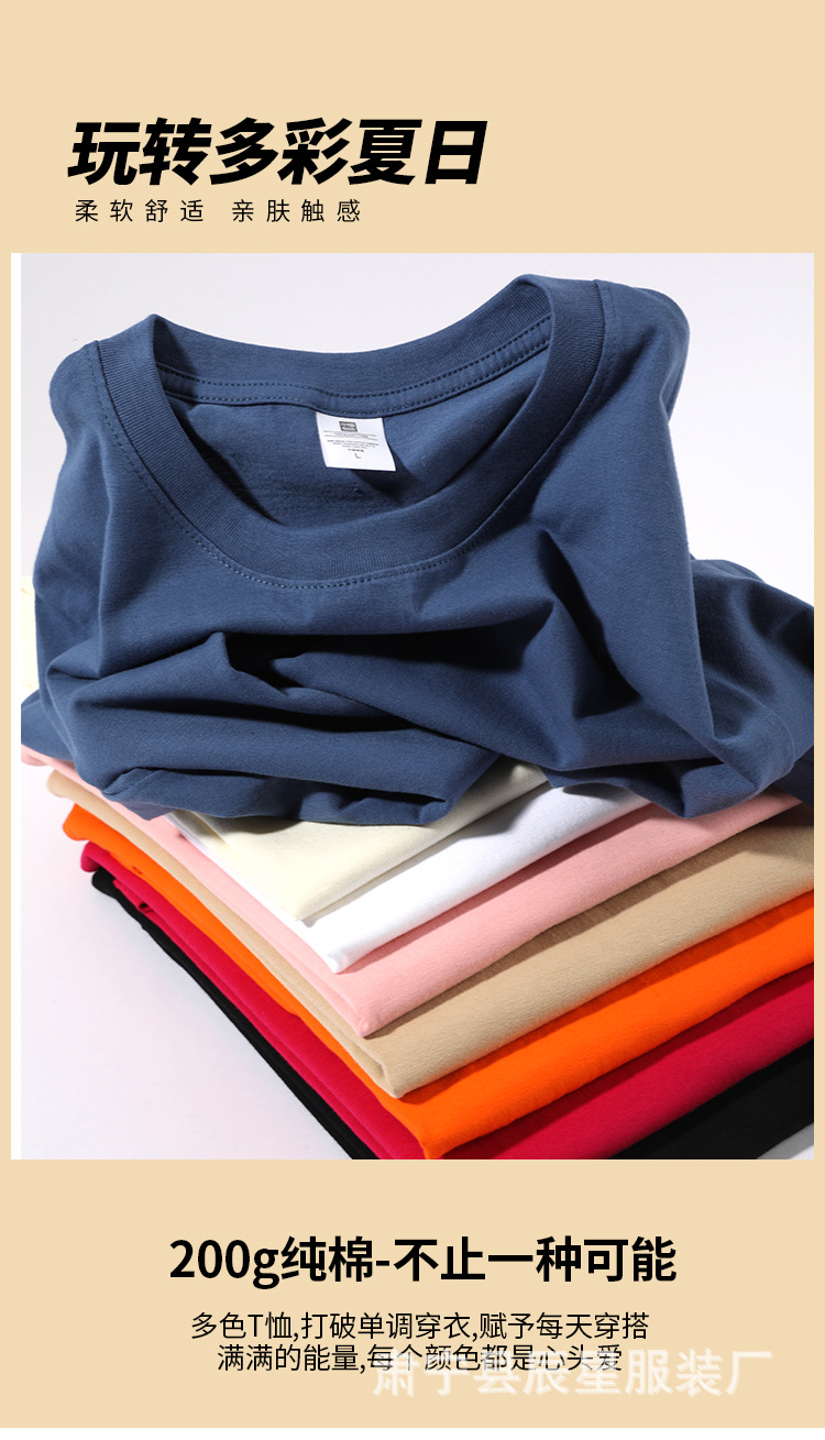 200グラム重ポンド精櫛綿半袖tシャツ百合純色底男女モデルカスタムロゴ文化シャツ卸売り