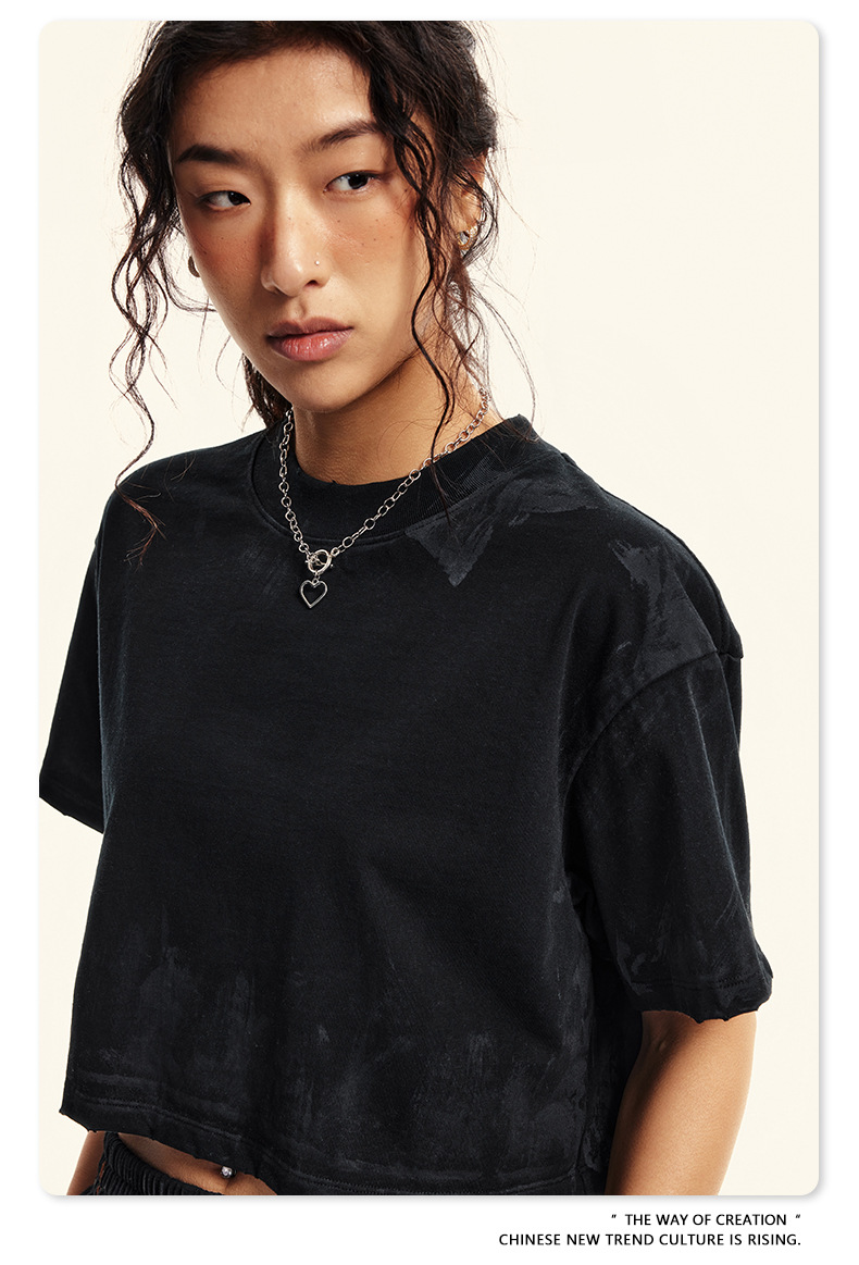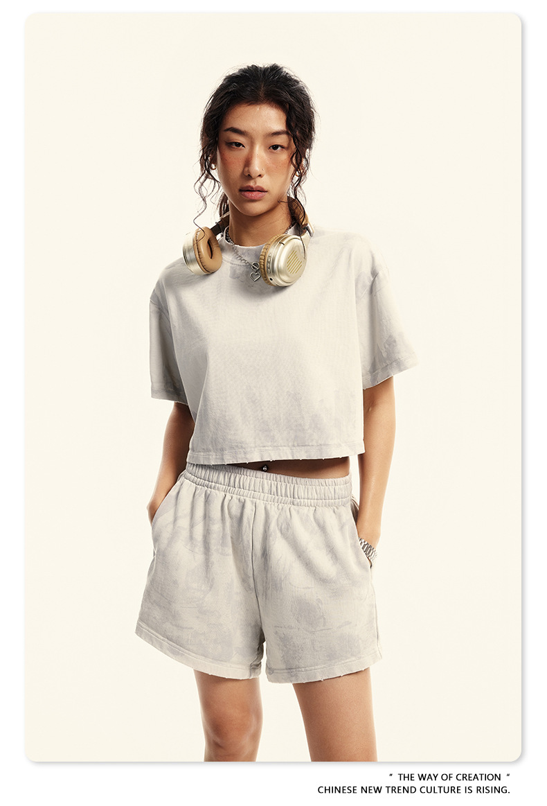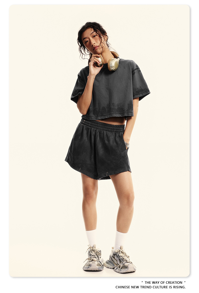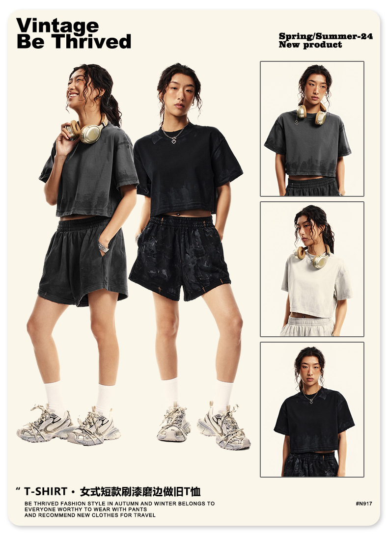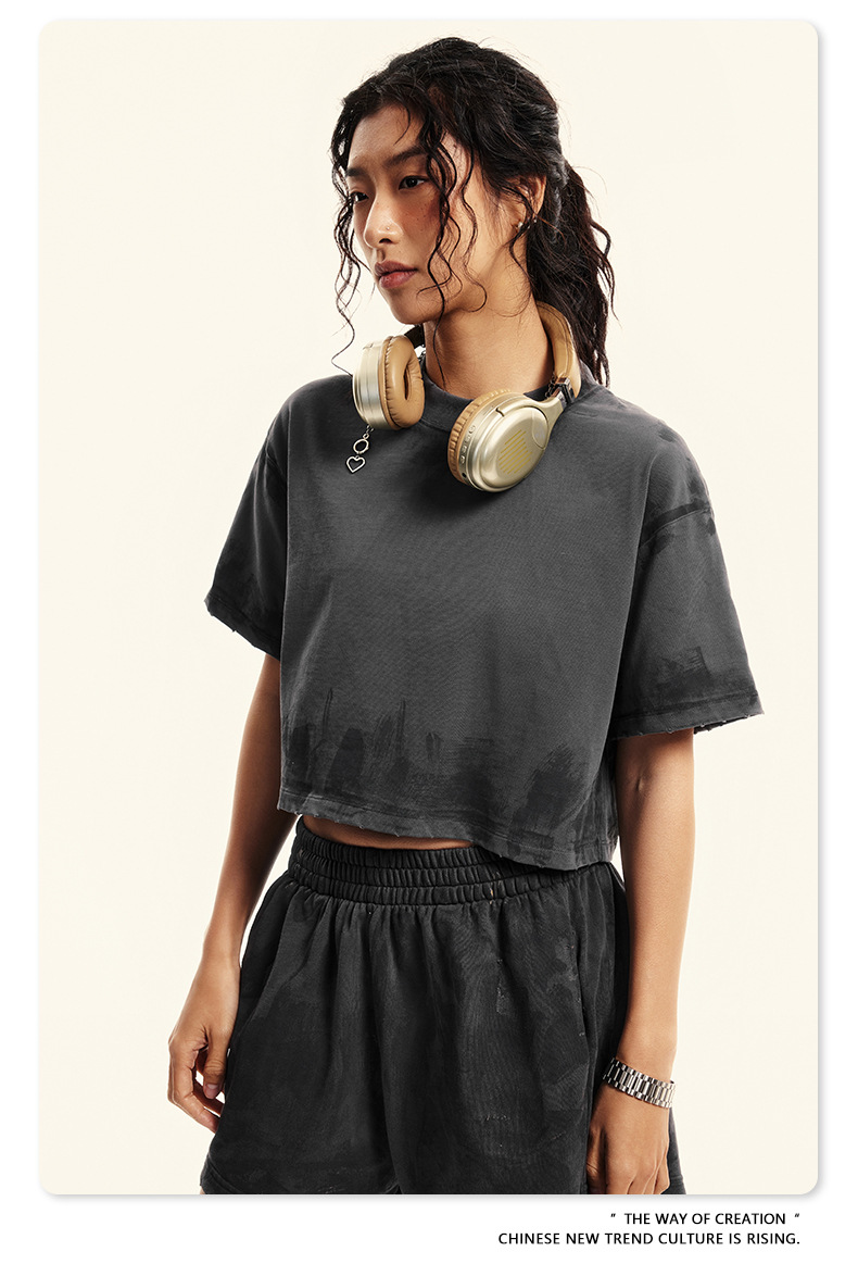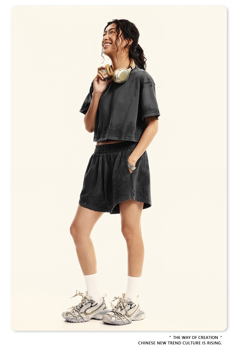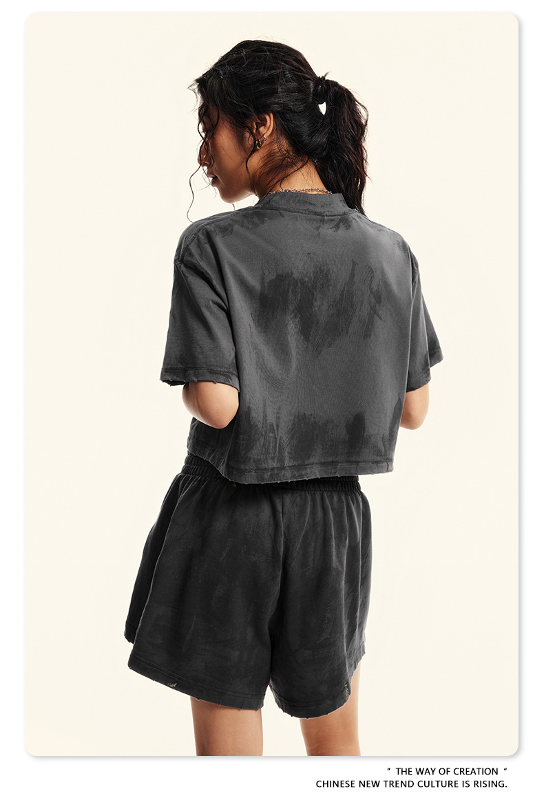 BE レディース 25 春夏パリ工場泥染めレディース Tシャツ 305G ヨーロッパとアメリカのトレンディなブランドフィットネスショートトップ女性用