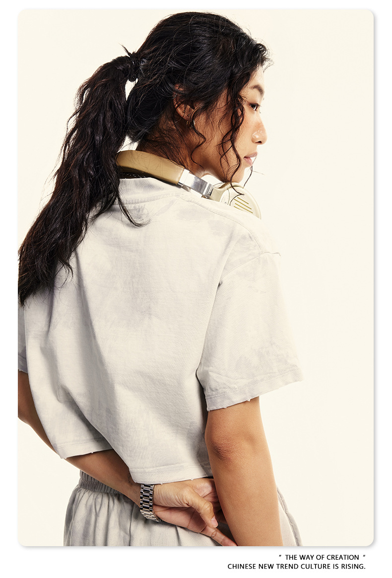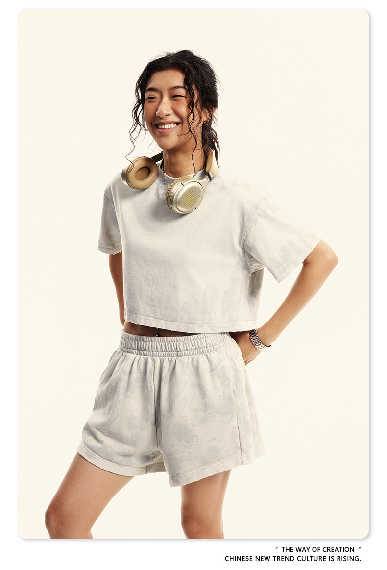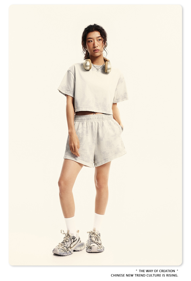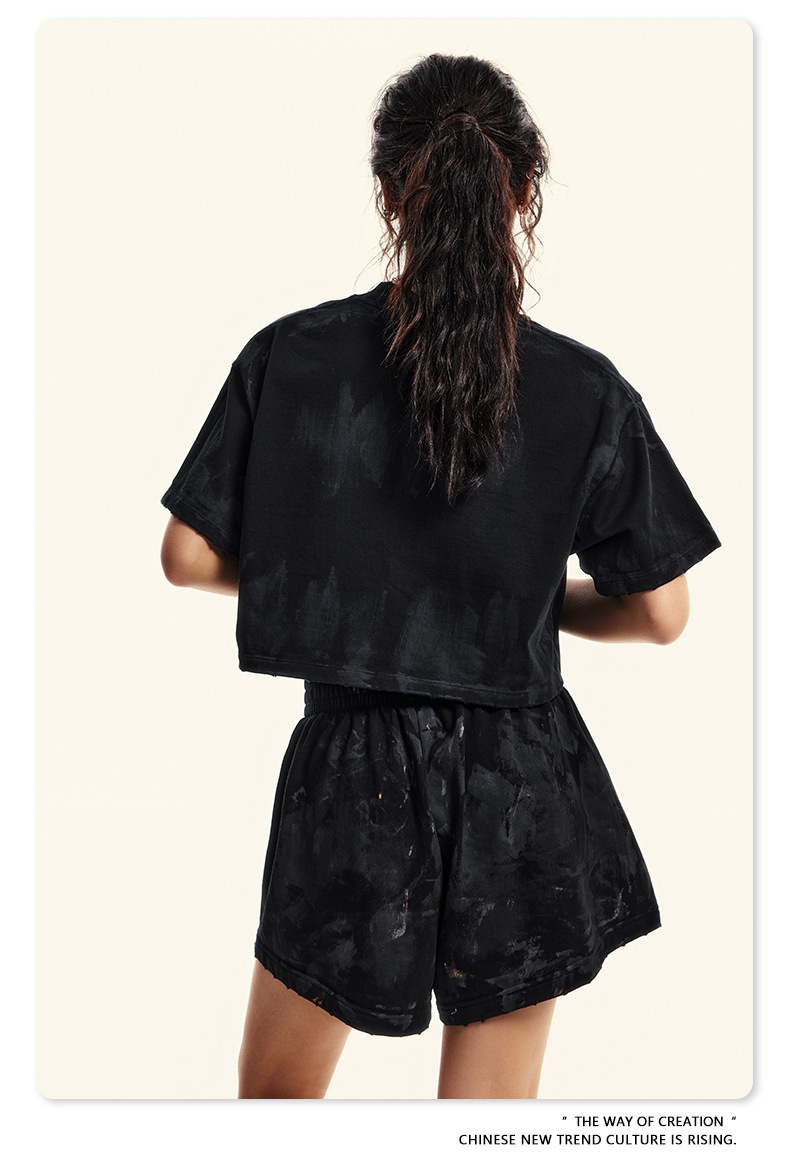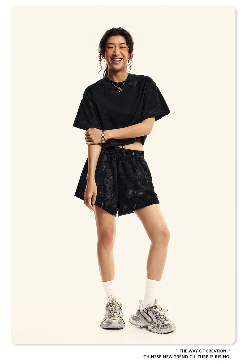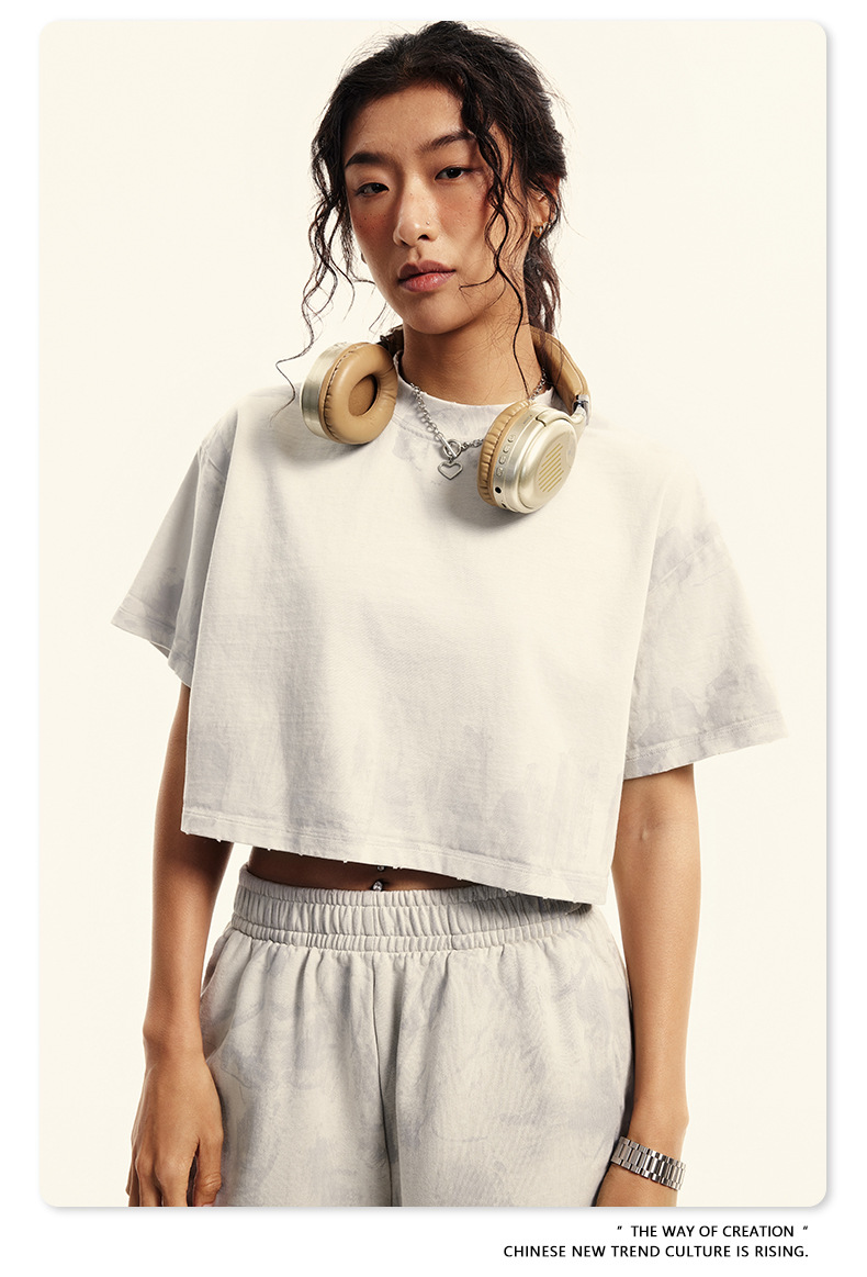 BE レディース 25 春夏パリ工場泥染めレディース Tシャツ 305G ヨーロッパとアメリカのトレンディなブランドフィットネスショートトップ女性用