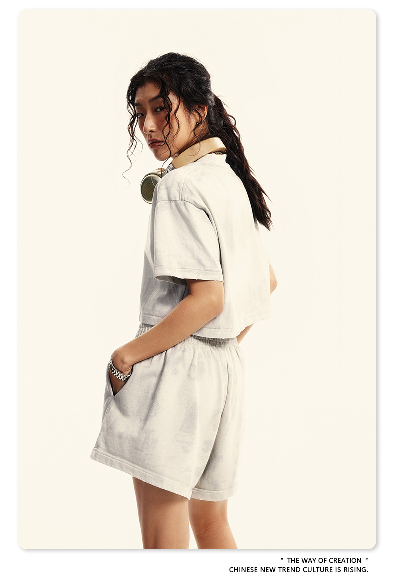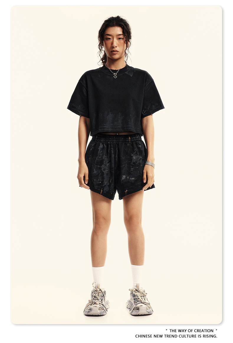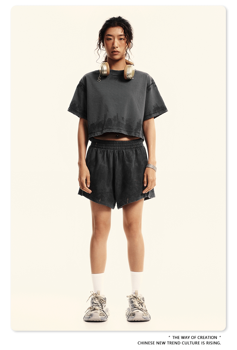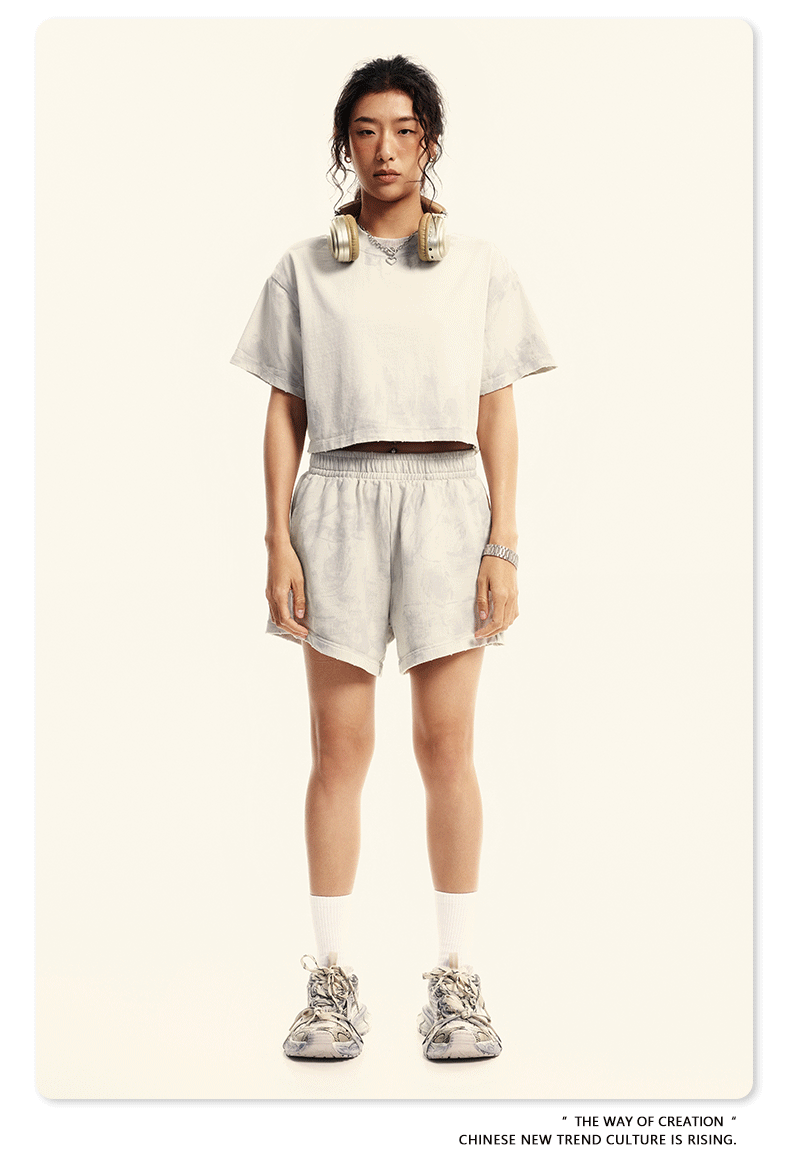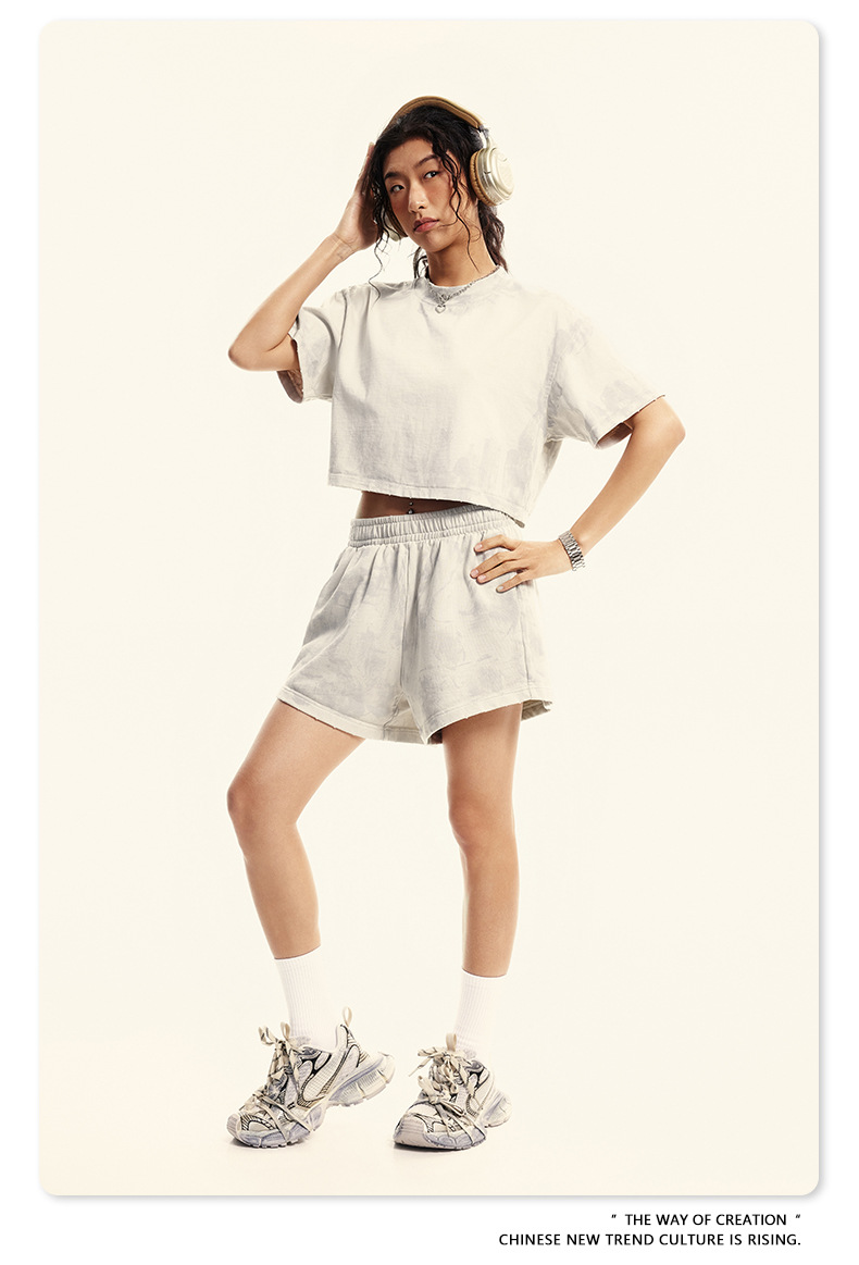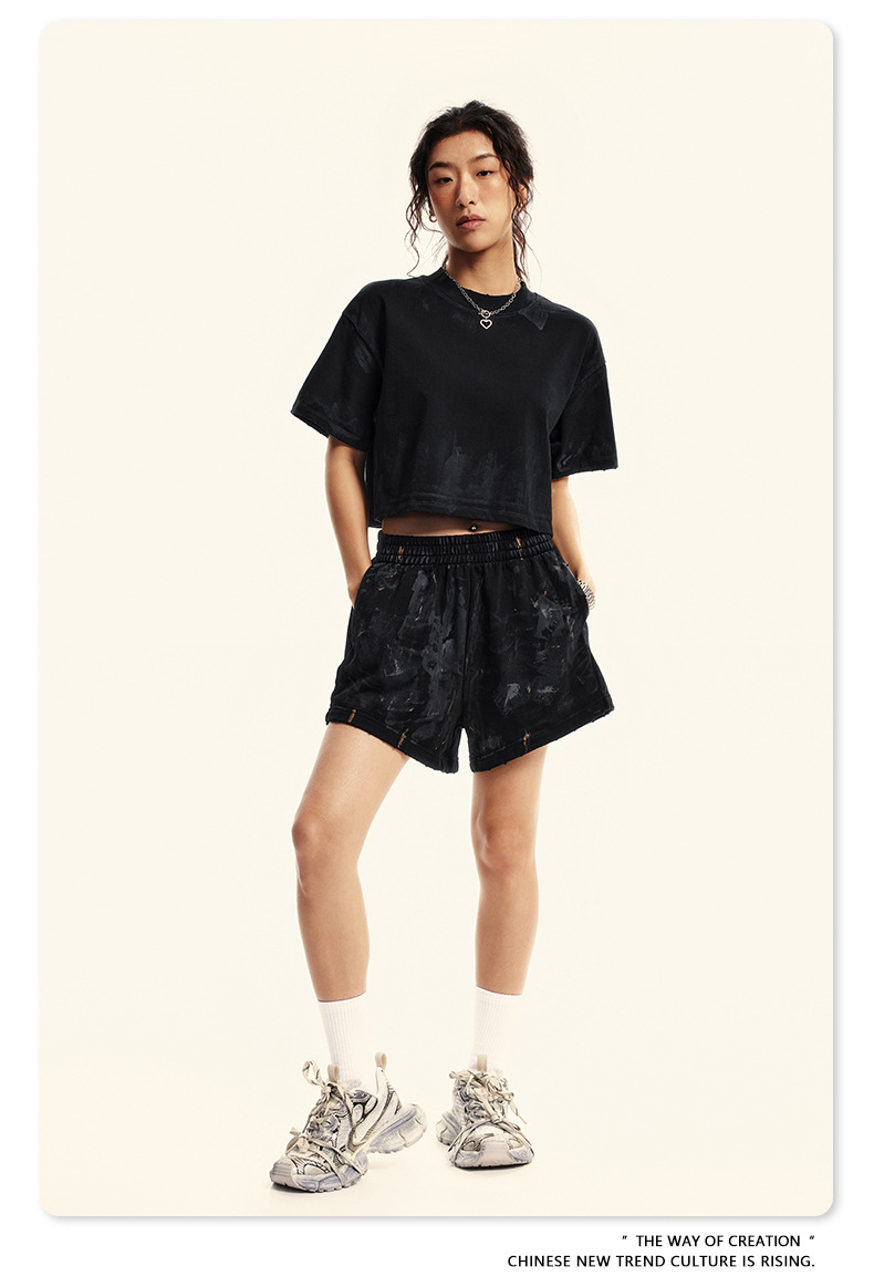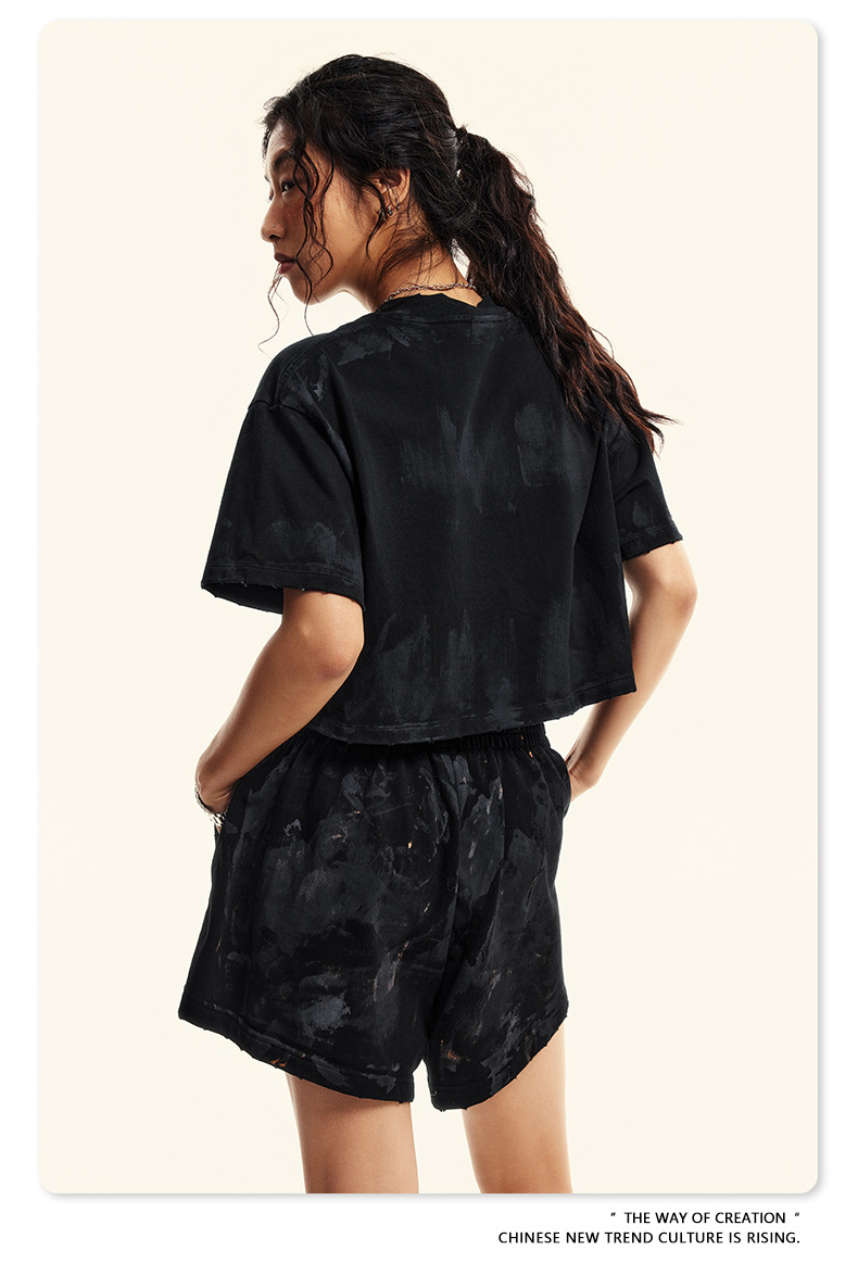 BE レディース 25 春夏パリ工場泥染めレディース Tシャツ 305G ヨーロッパとアメリカのトレンディなブランドフィットネスショートトップ女性用