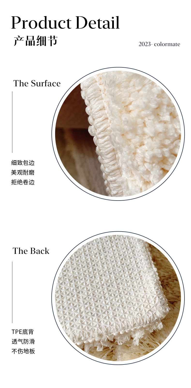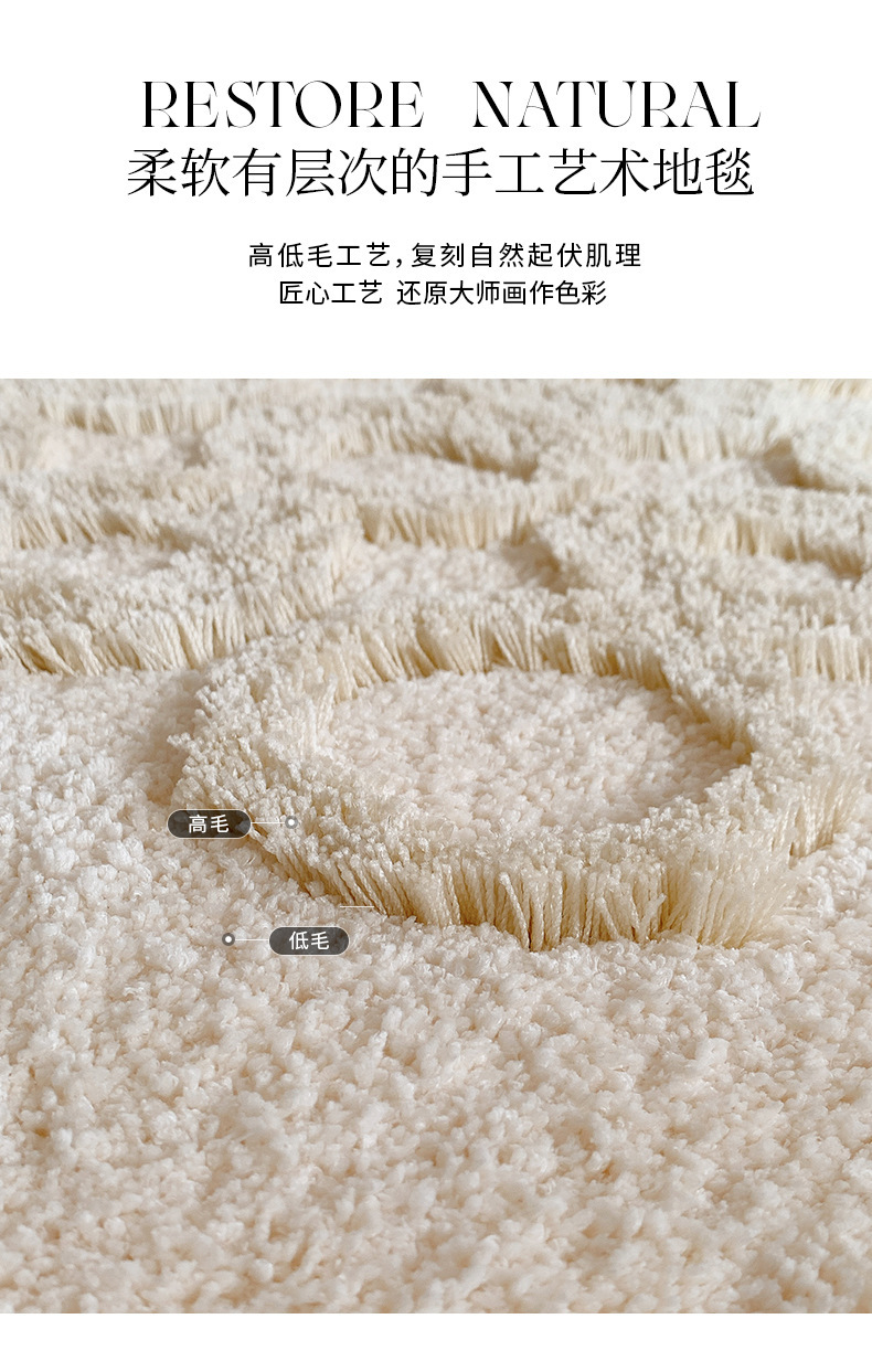 80乗130cm【上質植毛】,100乗160cm【滑り止めtprボトムバック】,120乗200cm【耐磨耗よく手入れ】
