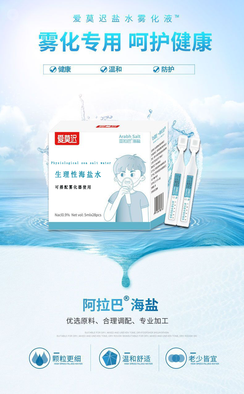 生理性海塩水霧化液霧化塩水5ml子供の鼻を洗って鼻を垂らします。