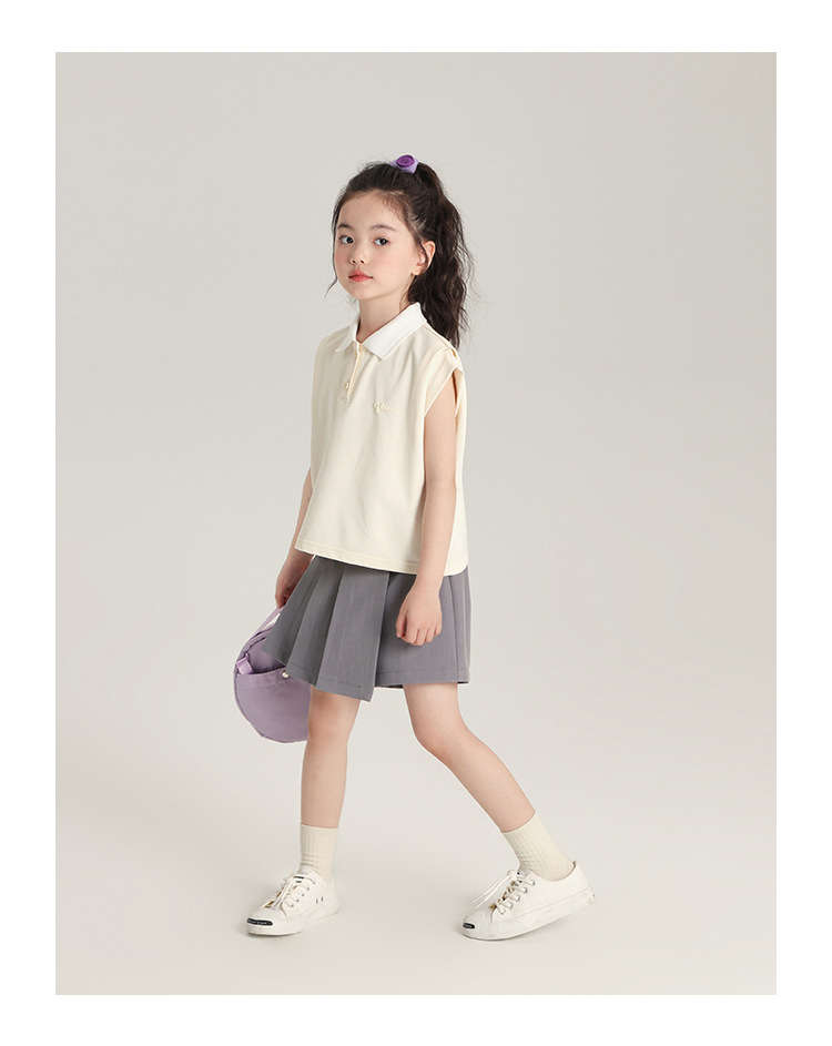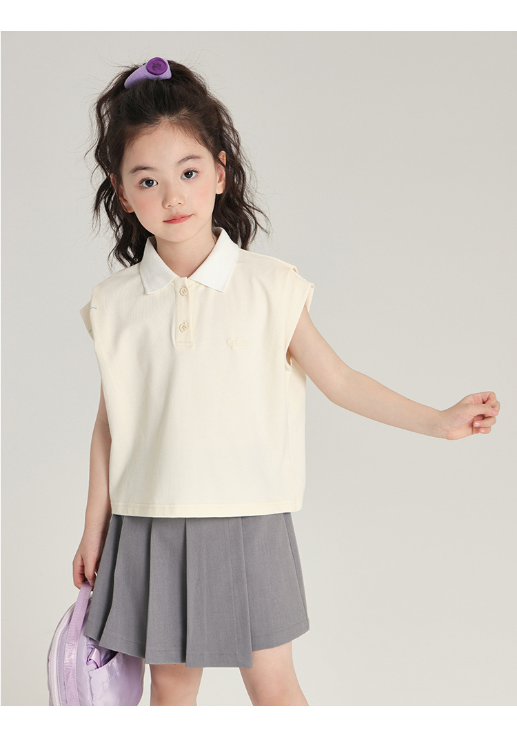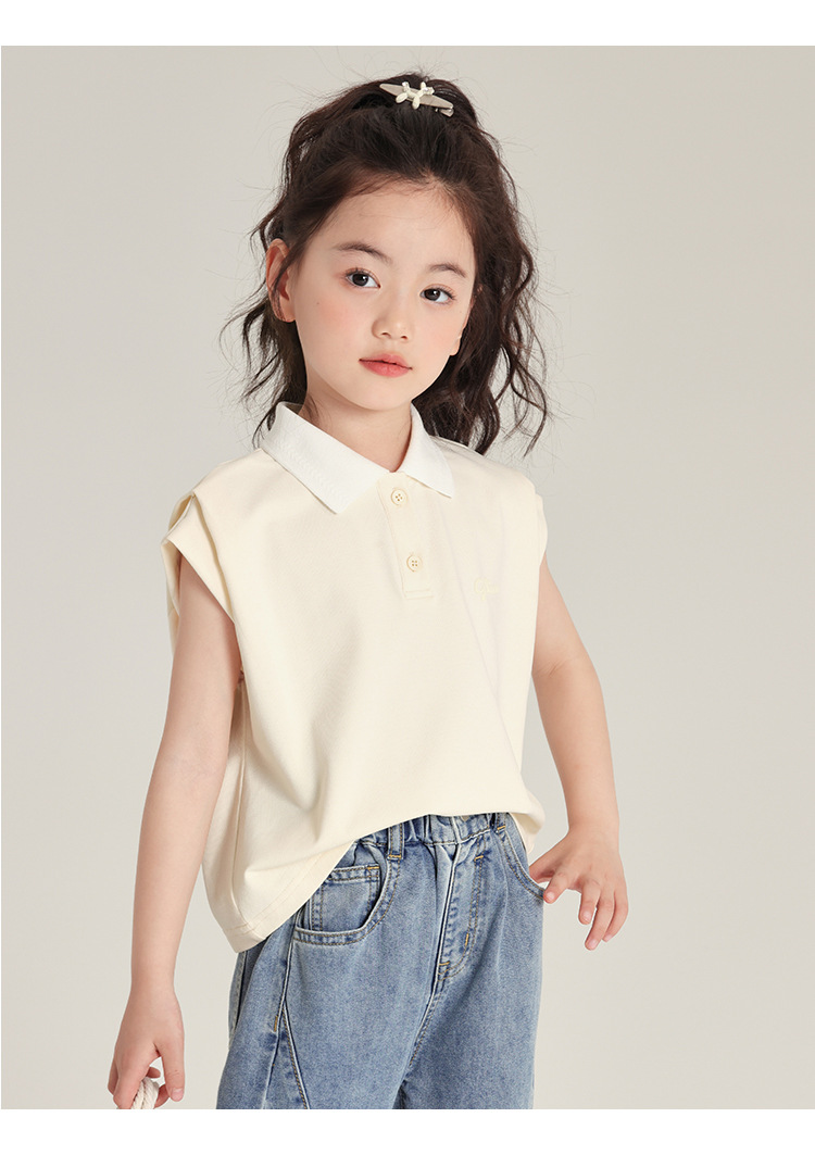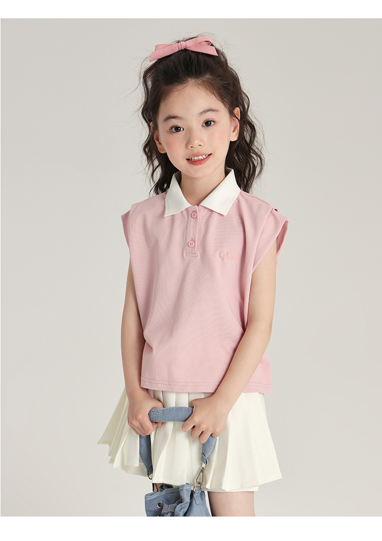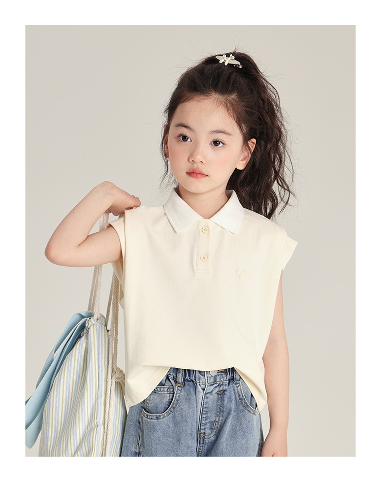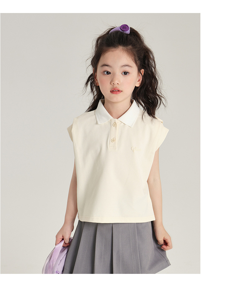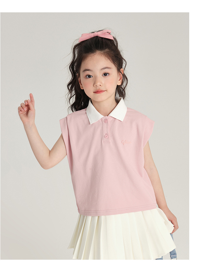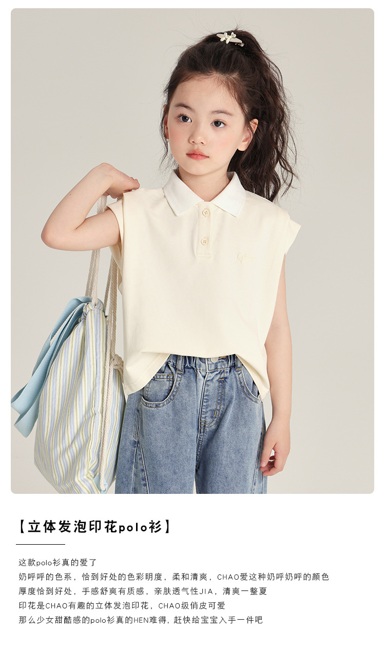 2025年新作 カジュアルでトレンディな女の子用半袖Tシャツ 可愛いポロシャツ 立体発泡プリント 子供用Tシャツ