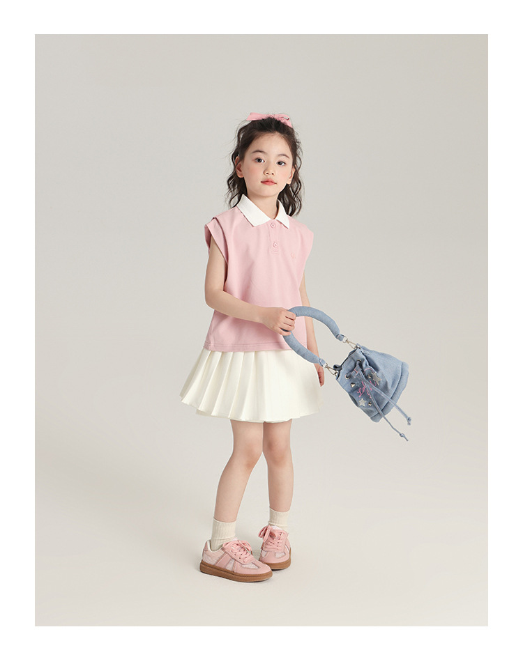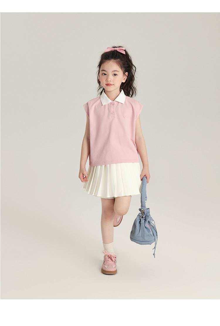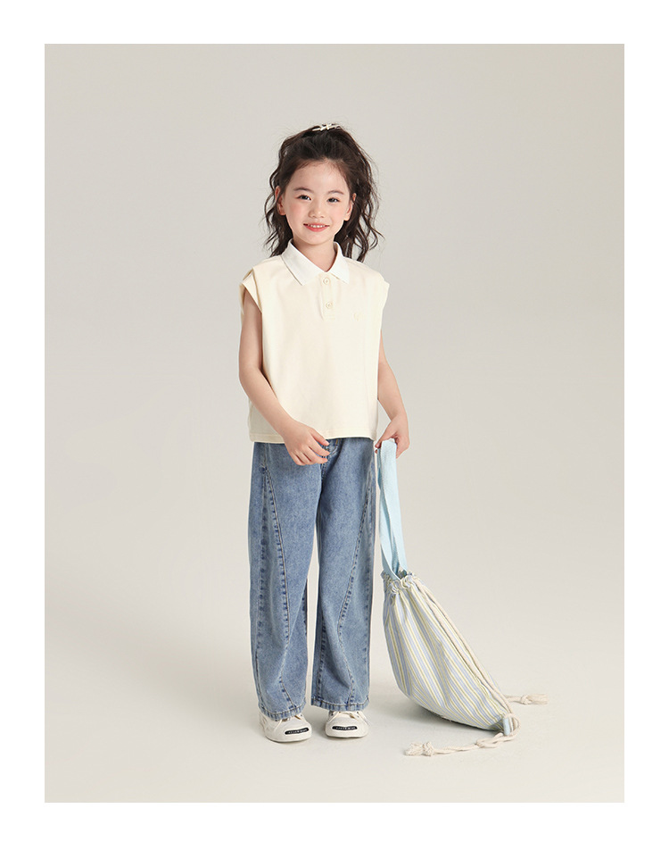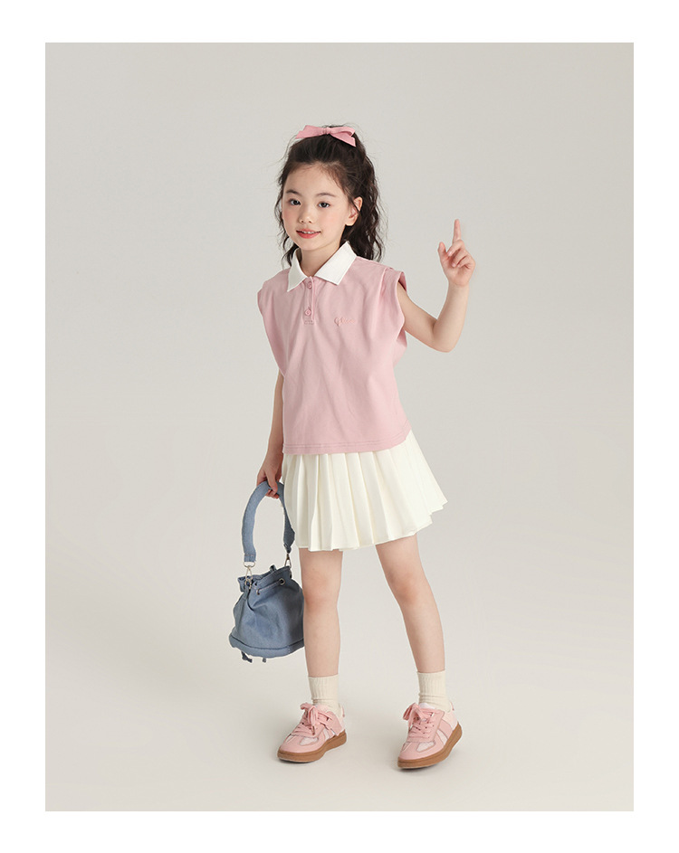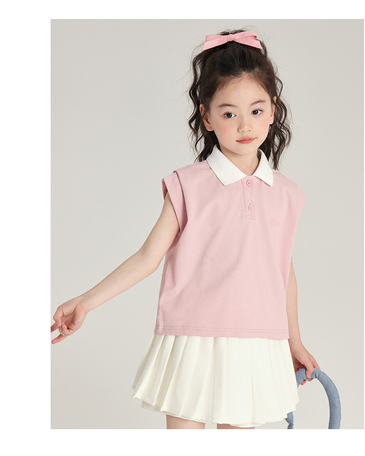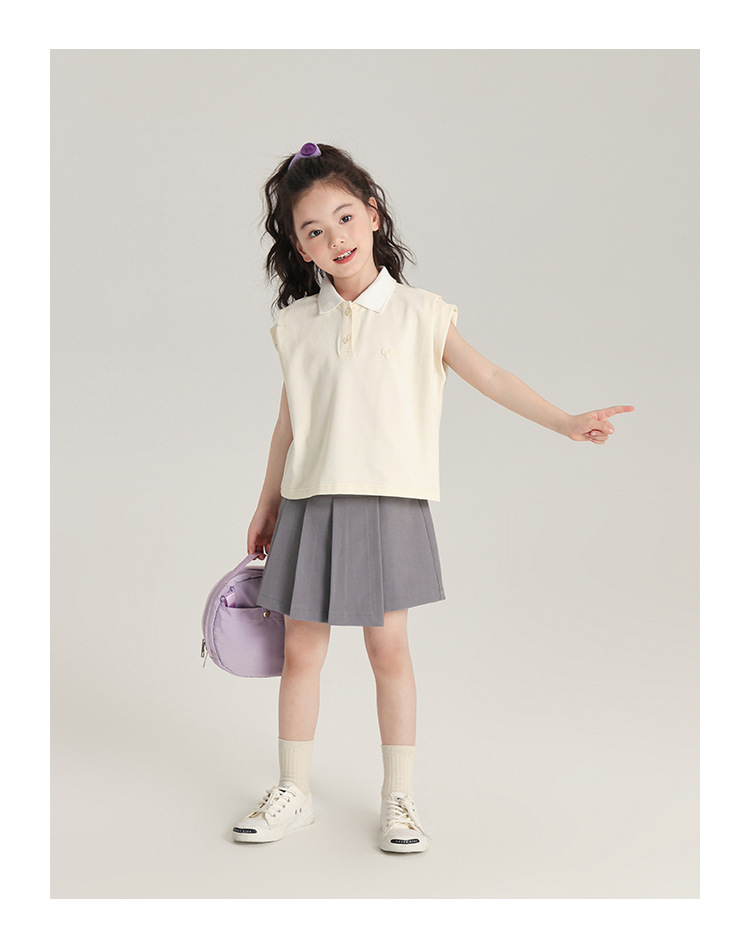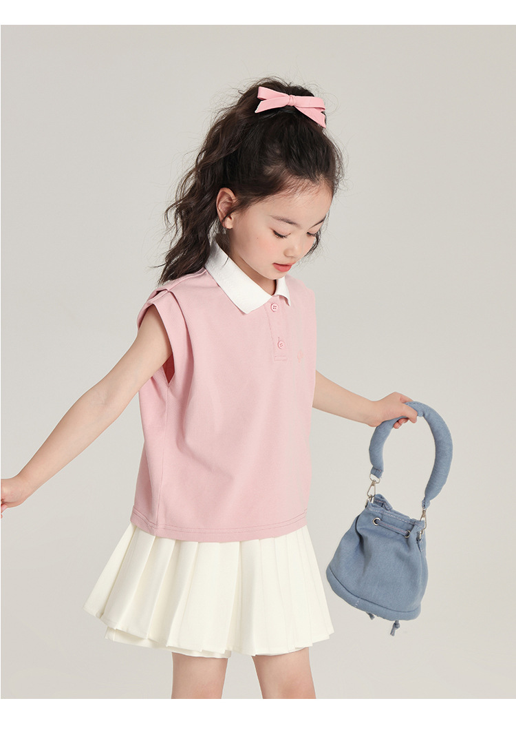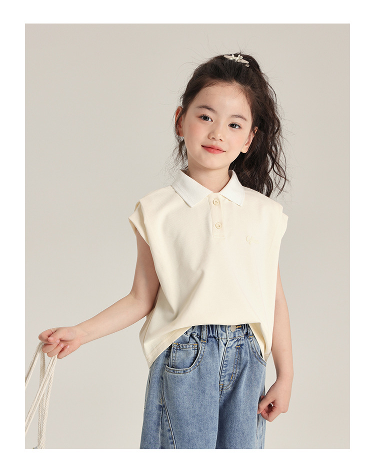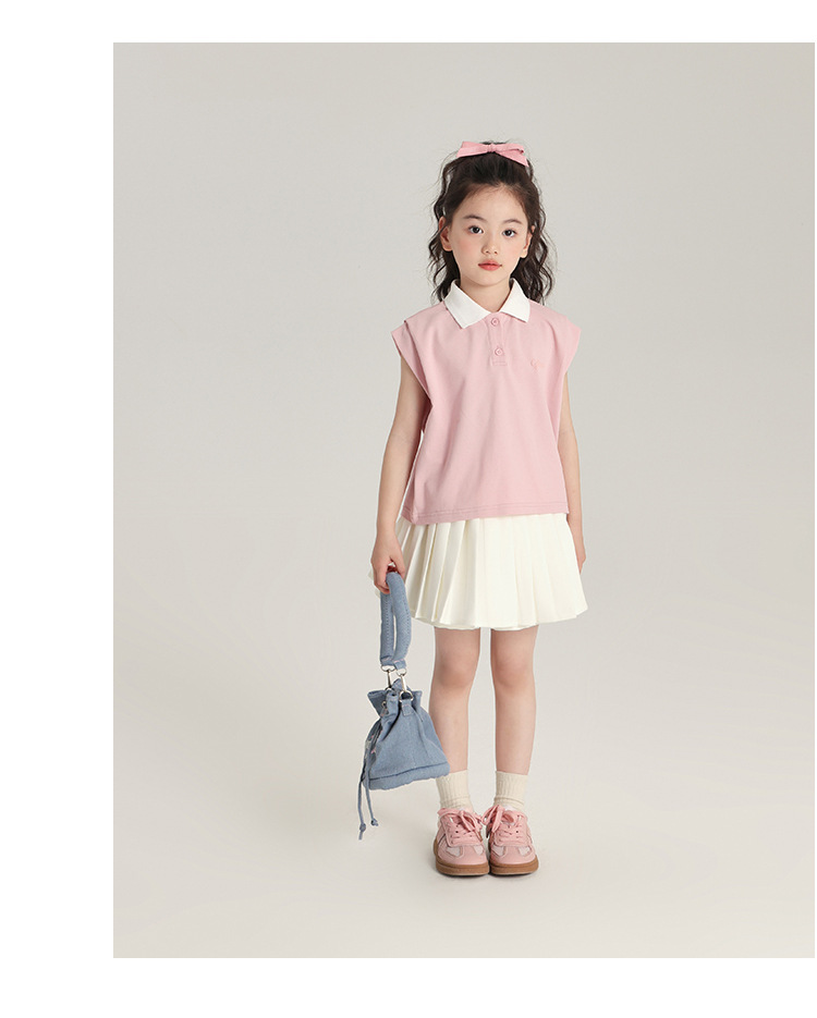 2025年新作 カジュアルでトレンディな女の子用半袖Tシャツ 可愛いポロシャツ 立体発泡プリント 子供用Tシャツ